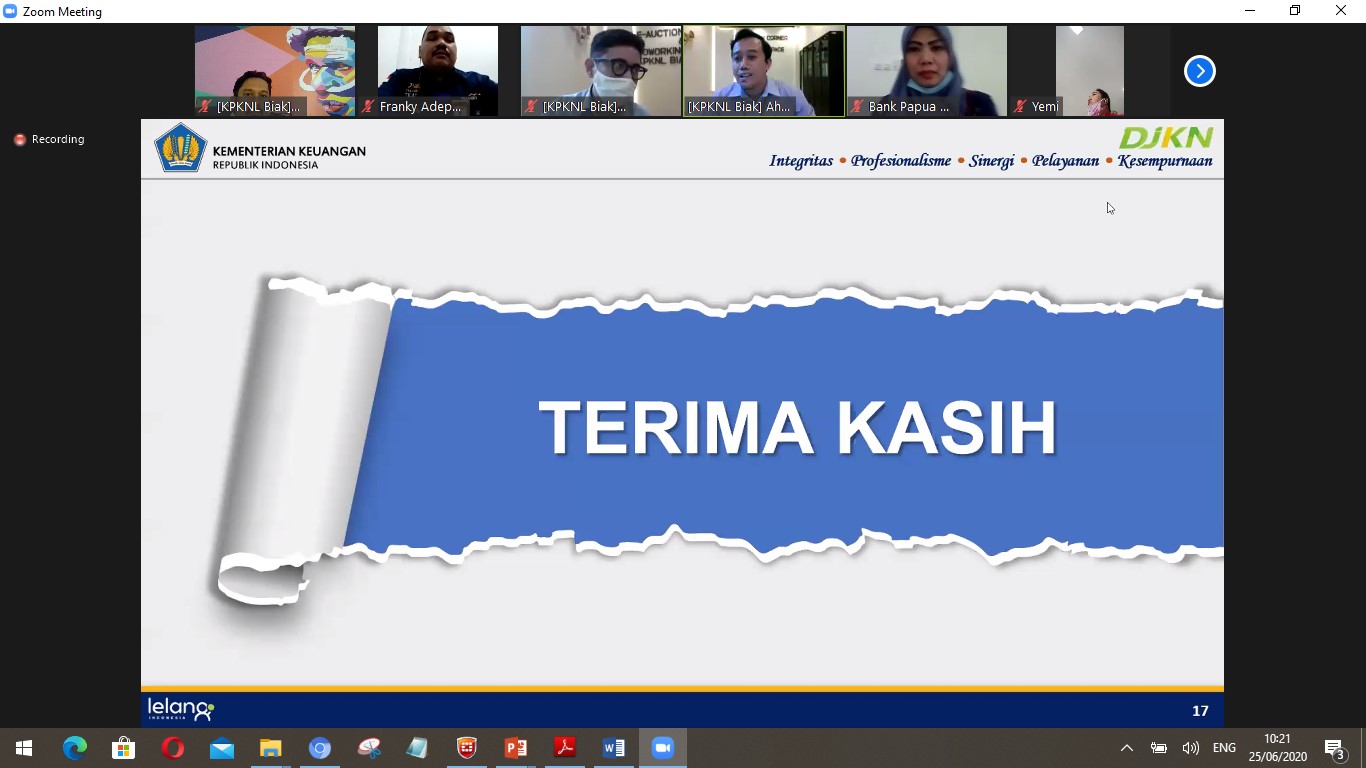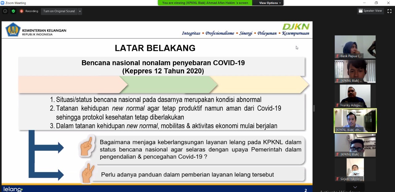 “Dengan diberlakukannya Perdirjen 5/KN/2020, maka Perdirjen 3/KN/2020 dinyatakan dicabut dan tidak berlaku. Harapan kami kedepannya, pelaksanaan lelang melalui internet akan meningkatkan frekuensi permohonan lelang dari stakeholders,” kata Afan menutup acara tersebut.