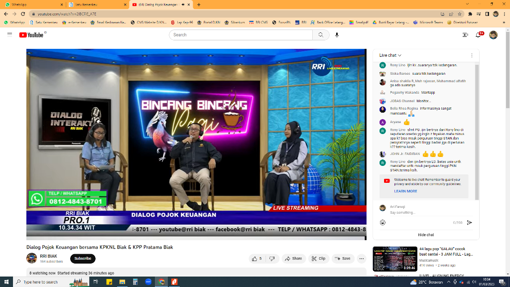 Selain melaksanakan sosialisasi dengan kunjungan langsung ke sekolah-sekolah, Kemenkeu Satu Biak juga melakukan sosialisasi melalui akun media sosial masing-masing unit. Selain itu, Kemenkeu Satu Biak yang diwakili oleh Awalludin Ikhwan, selaku Kepala KPKNL Biak sekaligus Kepala Subperwakilan Kementerian Keuangan Biak, dan Dwi Rahmawati Irdian, selaku Asisten Penyuluh Pajak Mahir KPP Pratama Biak, juga melakukan sosialisasi melalui Siaran Langsung Pojok Keuangan RRI Pro 1 Biak yang disiarkan langsung melalui siaran radio dan live streaming Youtube RRI Biak.