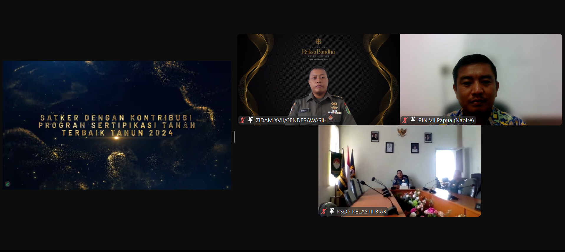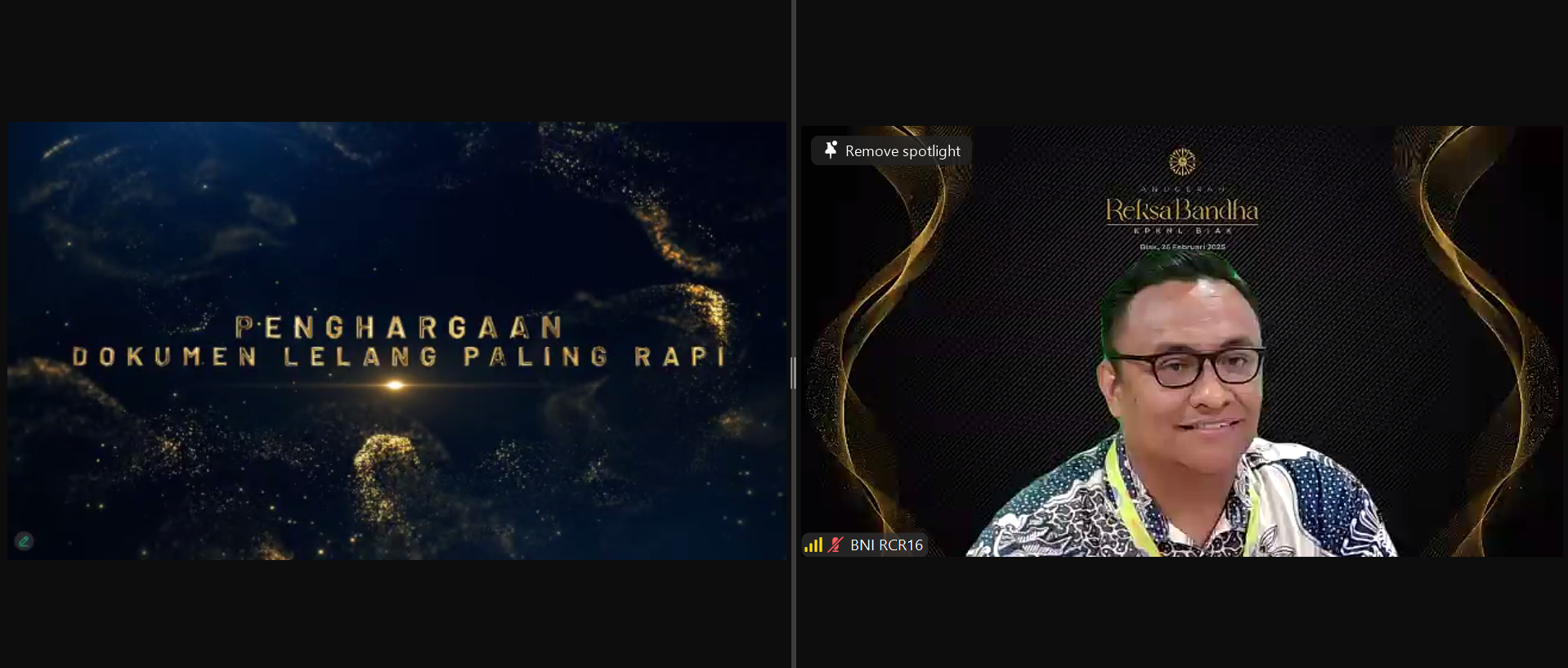 Biak (26/02) KPKNL Biak kembali menyelenggarakan penghargaan Anugerah Reksa Bandha KPKNL Biak yang kali ini dilaksanakan secara online. Pada tahun ini terdapat 46 penghargaan yang dibagikan kepada para Pengguna Layanan dan Mitra Kerja KPKNL Biak yang terbagi atas tiga kategori utama yaitu penghargaan di bidang pengelolaan kekayaan negara, penghargaan di bidang penilaian Barang Milik Daerah (BMD), dan penghargaan di bidang lelang.