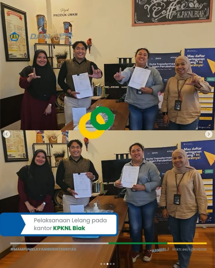 Biak, Juli 2025 — Kantor Pelayanan Kekayaan Negara dan Lelang (KPKNL) Biak kembali menunjukkan komitmennya dalam memberikan layanan lelang yang profesional, akuntabel, dan transparan. Salah satu peserta lelang yang turut merasakan langsung kualitas pelayanan tersebut adalah seorang pemain aktif dari Tim Sepak Bola Malut United dan Tim Nasional Sepak Bola Indonesia yaitu Yakob Sayuri.