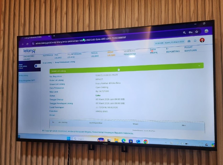 Bima, 5 Maret 2026 – Pelaksanaan lelang Barang Milik Negara