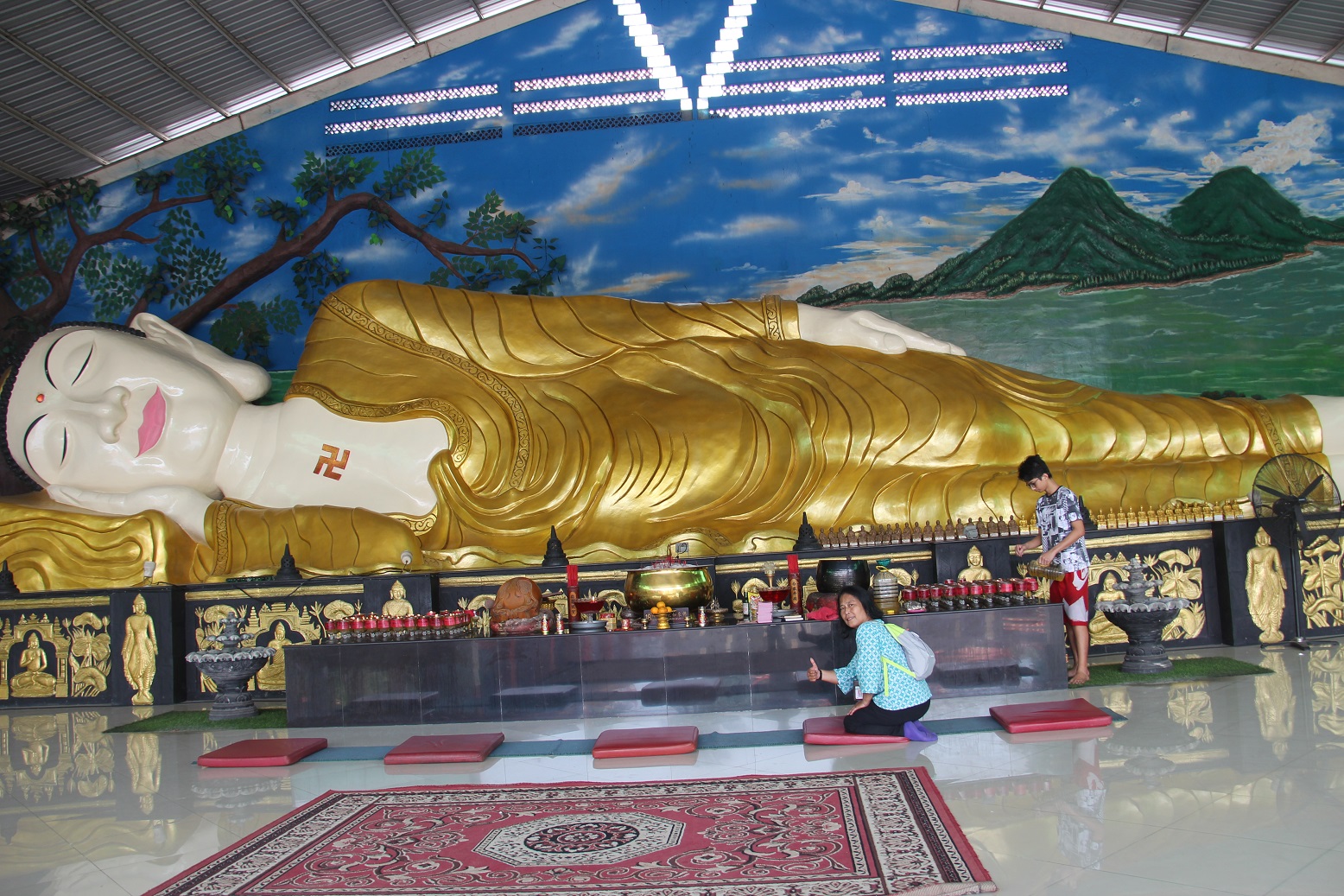 gerbang utama Vihara ini. Patung Buddha tidur (Sleeping Budhha) inilah