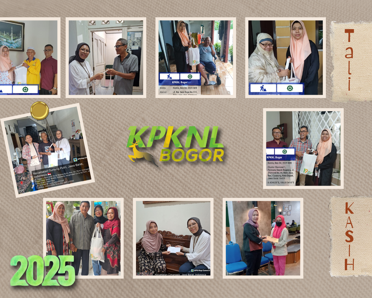 Berdasarkan data realisasi, Tali Kasih KPKNL Bogor telah disalurkan kepada 74 orang penerima, yang terdiri dari 37 orang di Kota Depok, 12 orang di Kota Bogor, dan 25 orang di Kabupaten Bogor. Penyaluran ini merupakan wujud kepedulian serta penghargaan atas dedikasi dan pengabdian para pensiunan yang telah berkontribusi dalam pengelolaan kekayaan negara selama masa tugasnya.