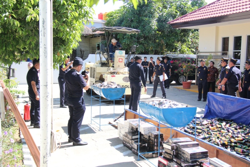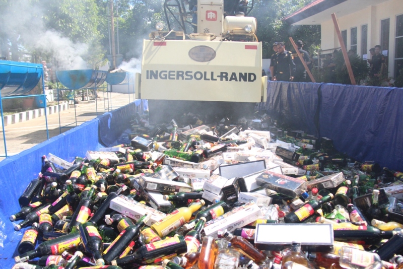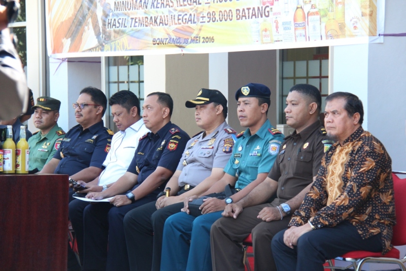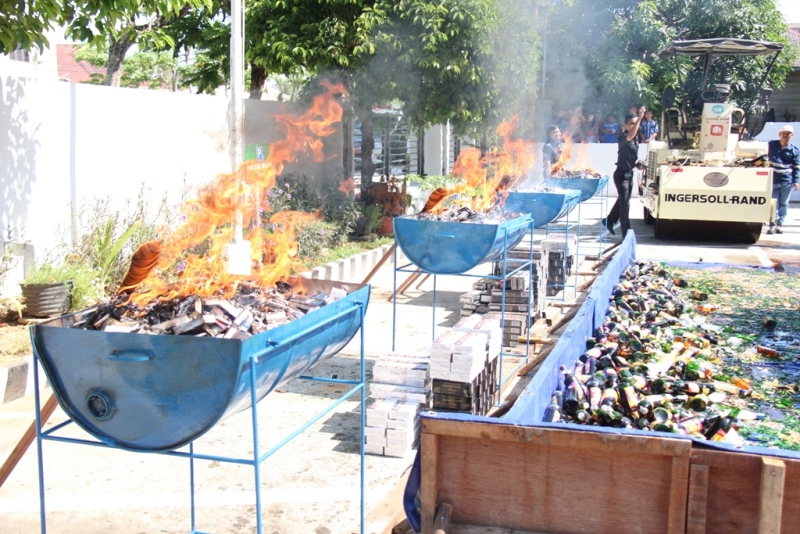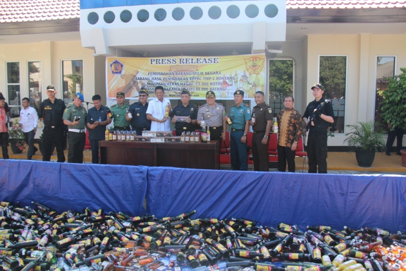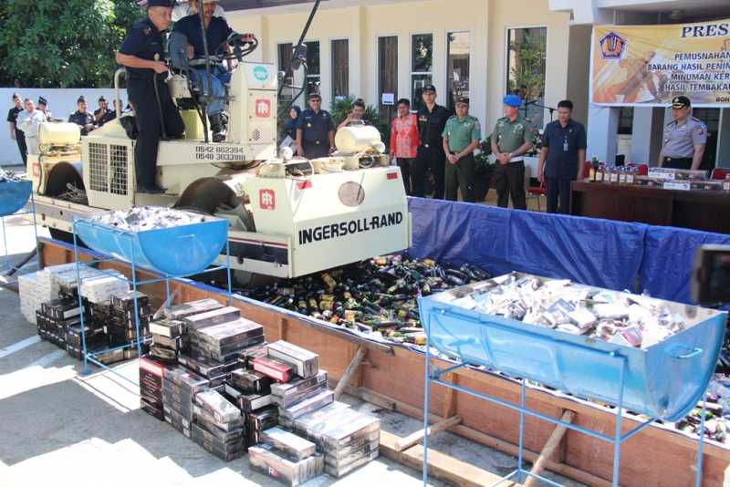 Selanjutnya acara diteruskan dengan pemusnahan terhadap barang hasil tindakan tersebut dengan cara digilas menggunakan bantuan alat berat dan dibakar. Para tamu undangan yang hadir ikut bersama-sama melaksanakan dan menyaksikan pemusnahan barang-barang berbahaya yang membawa dampak buruk bagi kesehatan manusia tersebut. Disampaikan Kepala KPPBC TMP C Bontang Iwan Setyaboedhi bahwa tujuan dari kegiatan ini untuk memberantas semakin maraknya peredaran minuman keras dan rokok ilegal. Juga diutarakan bahwa kegiatan penindakan dan pemusnahan akan terus dilaksanakan sampai kota Bontang bebas dari minuman keras dan rokok illegal karena akan membawa dampak dapat mencegah terjadinya tindakan kriminal di lingkungan masyarakat Kota Bontang.