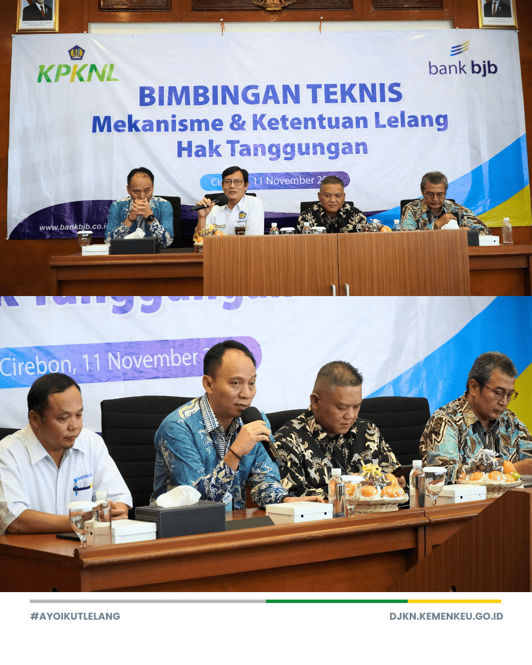 Senin (11/11) KPKNL Cirebon bersama Bank BJB menyelenggarakan Bimbingan Teknis Mekanisme dan Ketentuan Lelang Hak Tanggungan yang diselenggarakan di Aula Bank BJB Kantor Cabang Cirebon.