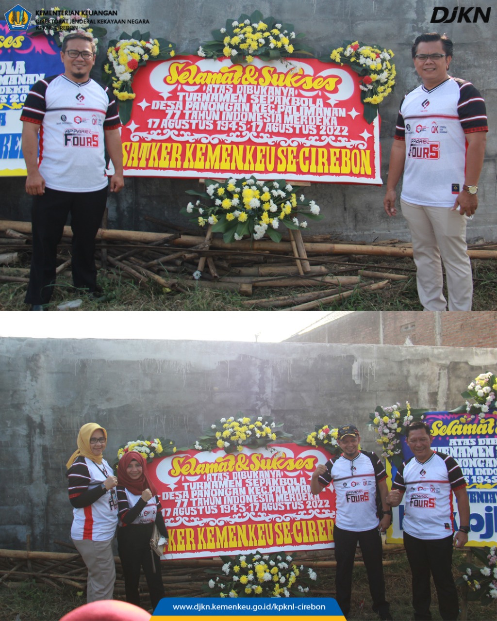 Selasa (19/7), Kemenkeu Satu Se-Cirebon menghadiri undangan DPR-RI, H. SATORI, S.Pd.I., M.M. dalam rangka memperingati HUT ke- 77 Kemerdekaan Republik Indonesia, dengan melaksanakan kegiatan Turnamen Sepakbola Panongan Part II se- Jawa Barat. Kepala KPKNL Cirebon yang diwakili oleh Sunadi Kepala Subbagian Umum didampingi oleh Susilo Prajoko Kepala Seksi Hukum dan Informasi KPKNL Cirebon menghadiri undangan tersebut. Kegiatan ini dilaksanakan di Sport Center Putra Srikandi, Desa Panongan Kec. Palimanan, Kabupaten Cirebon.