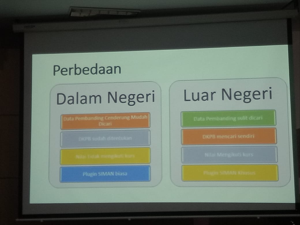 Elvina mengatakan revaluasi di Indonesia itu data pembandingnya mudah dicari. Bisa dari website, dan data lain. Kalau di luar negeri data pembanding sangat susah dicari. "Sampai kami akhirnya dibantu oleh tim satker,” ia menambahkansambil menunjukkan tabel perbedaan. Dari masing- masing negara, Elvina berbagi pengalaman menarik tentang keunikan di tiap daerah. Saat melakukan penilaian di Manila ia sempat diguyur hujan selama tiga dan ketika di Tokyo saat dirinya dan tim akan menilai lokasi tanah dan/atau bangunan terjadi kecelakaan lalu lintas.
