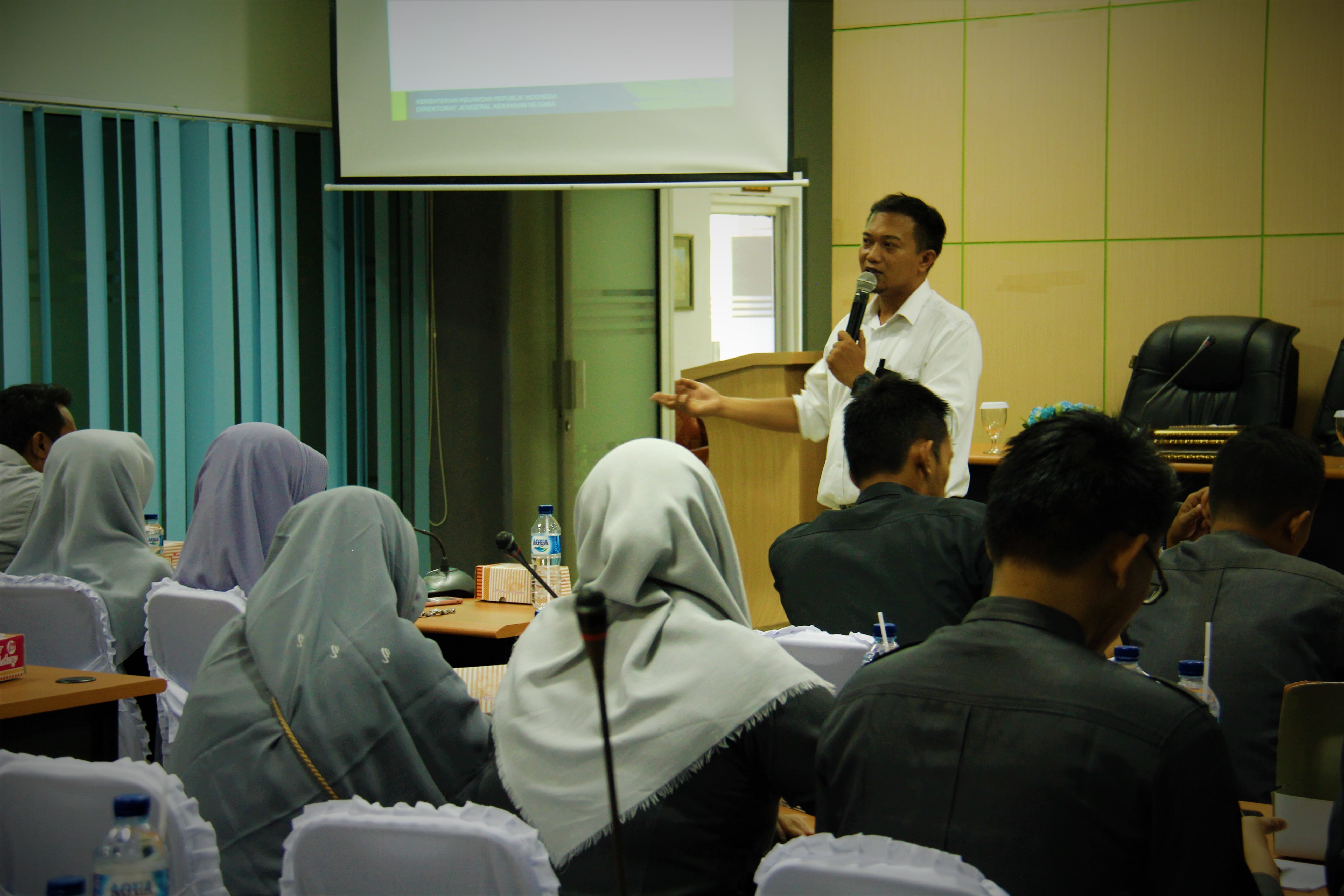 Materi Pengelolaan Barang Milik Negara disampaikan dalam 2 (dua) sesi. Sesi pertama penjelasan terkait tahapan pengelolaan BMN oleh petugas PKN dan dilanjutkan tanya jawab, sesi kedua yakni penjelasan terkait pemindahtanganan BMN dan dilanjutkan tanya jawab.
