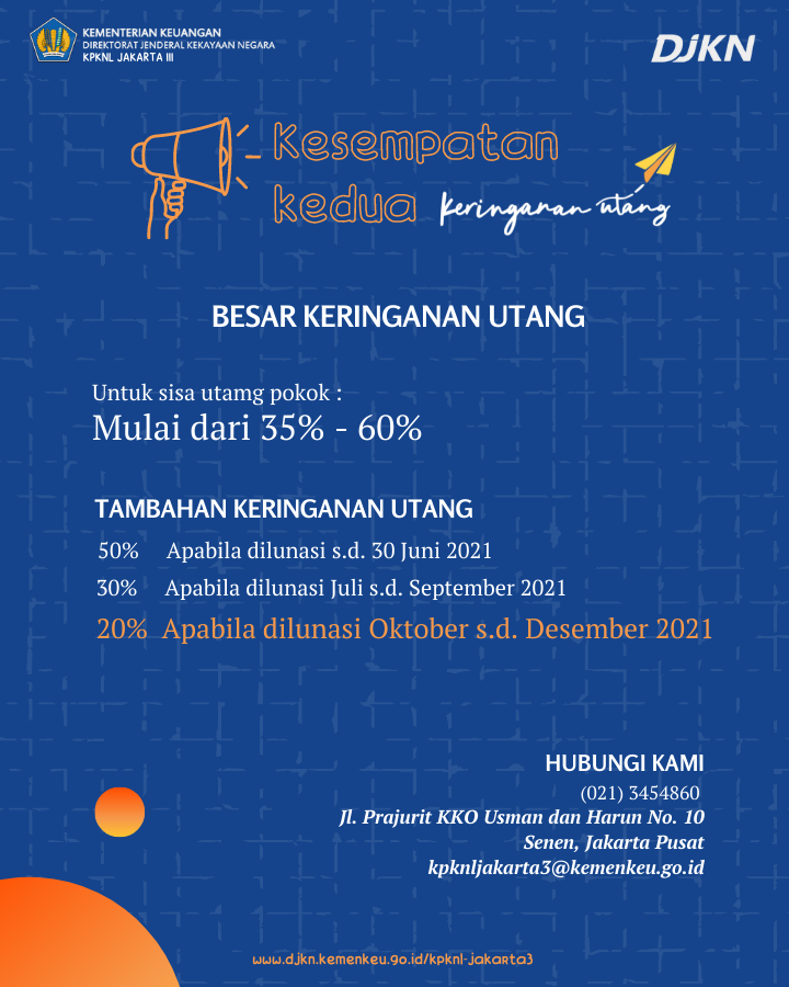 kesempatan mendapatkan tambahan keringanan utang pokok sebesar 20 persen dari sisa