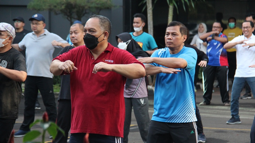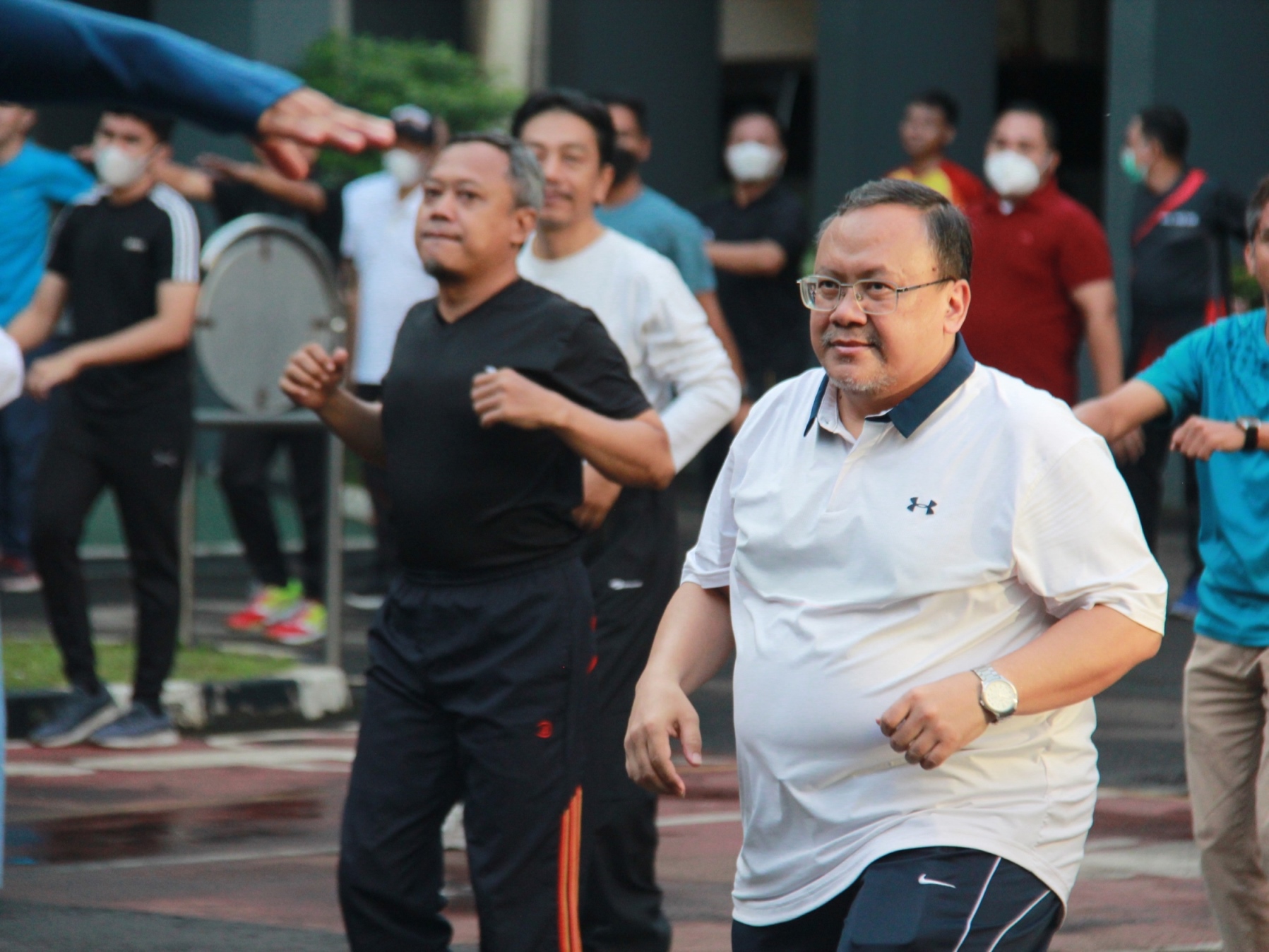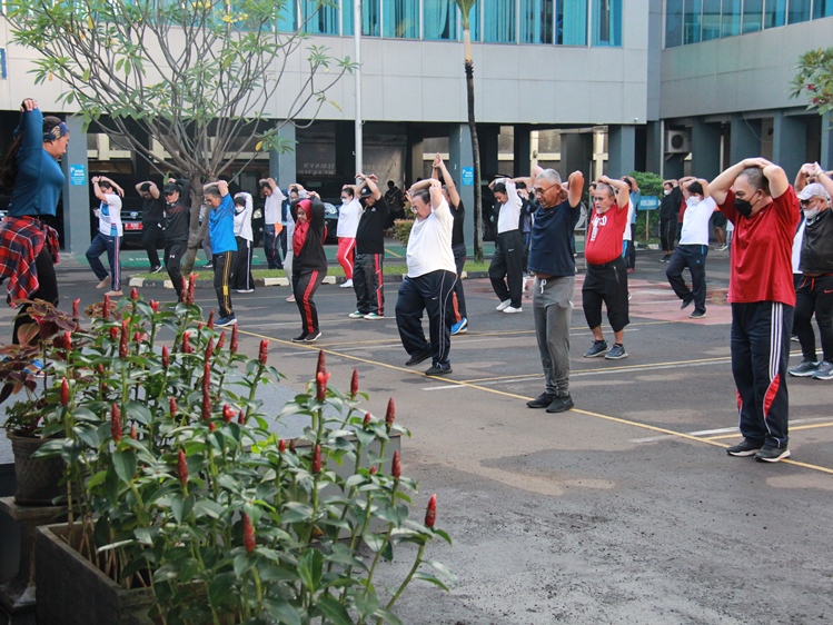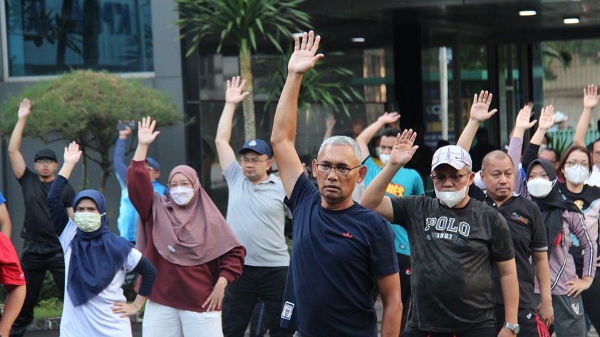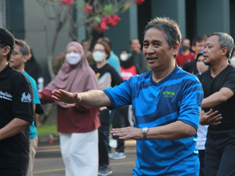 Jenderal Kekayaan Negara beserta jajaran melaksanakan senam pagi bersama di area lapangan parkir Kanwil DJKN DKI Jakarta. Sebagai orang nomor satu di lingkungan