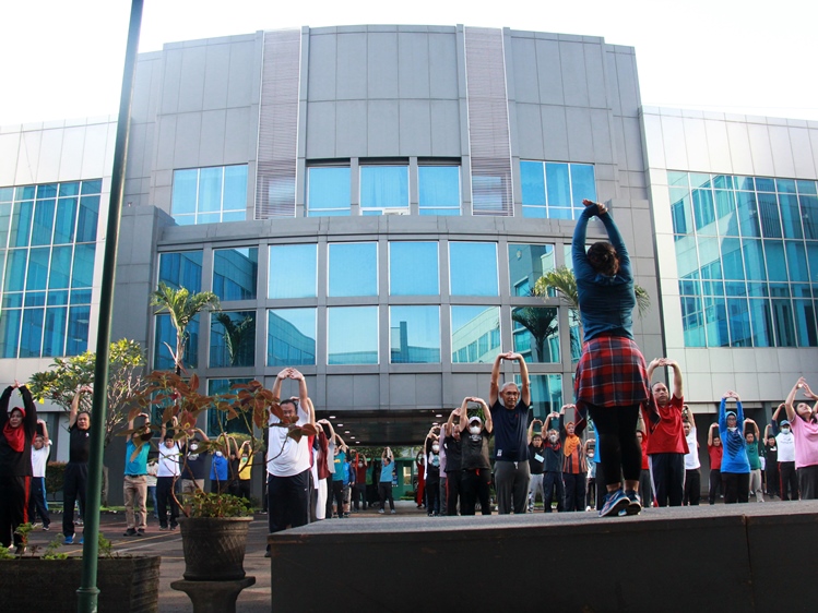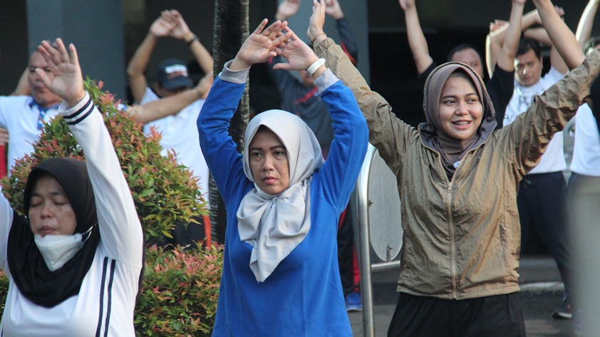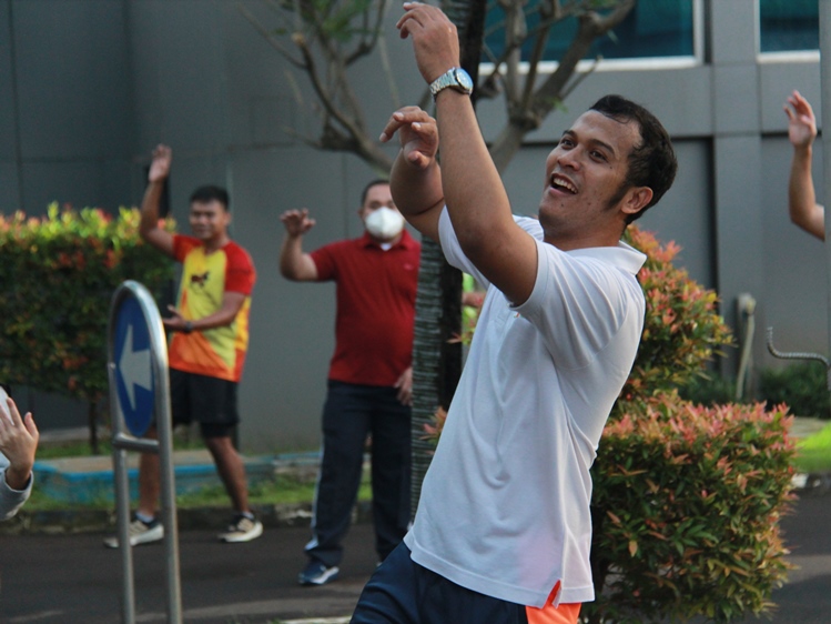 seluruh pegawai yang mengikuti senam terlihat sangat bersemangat mengikuti