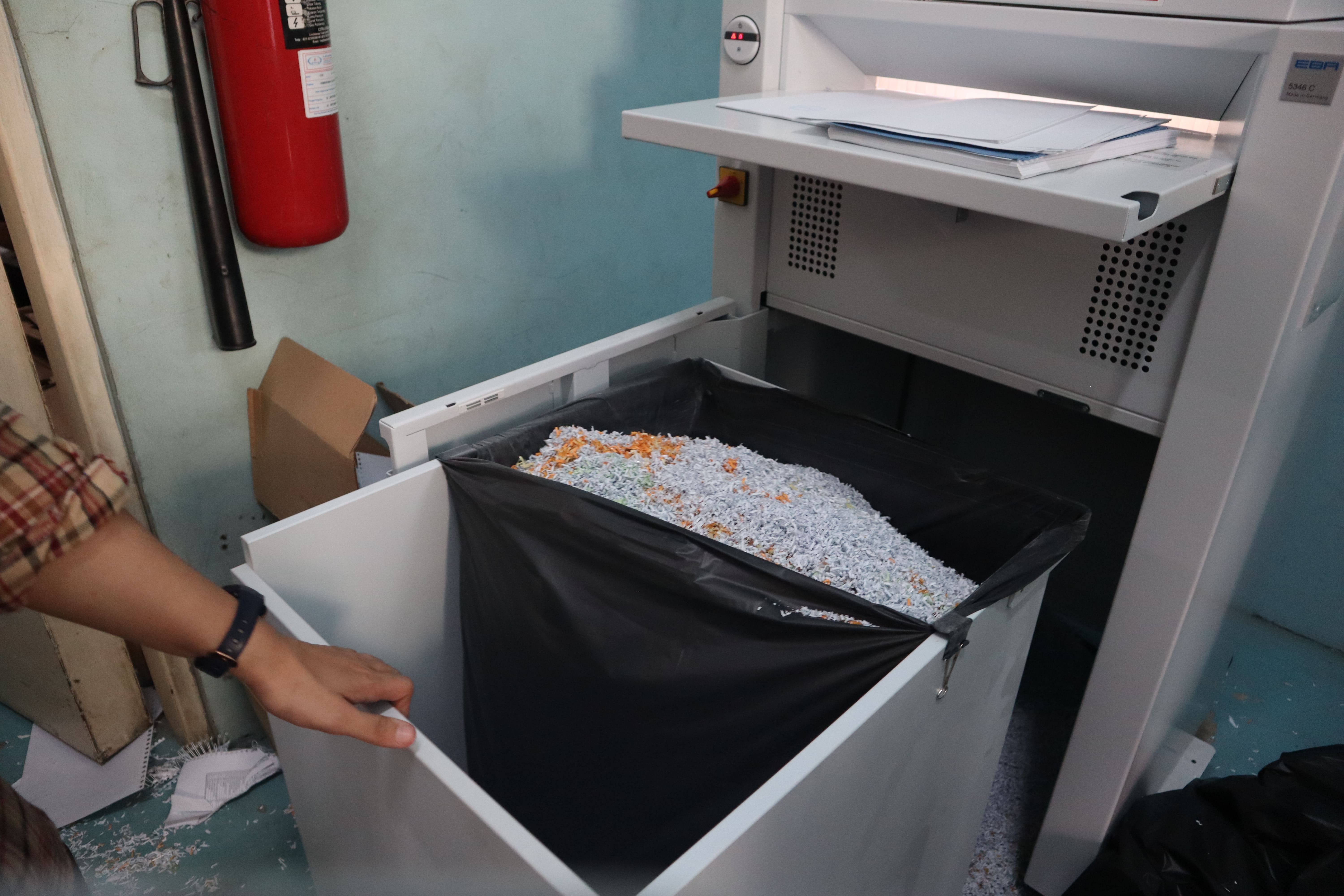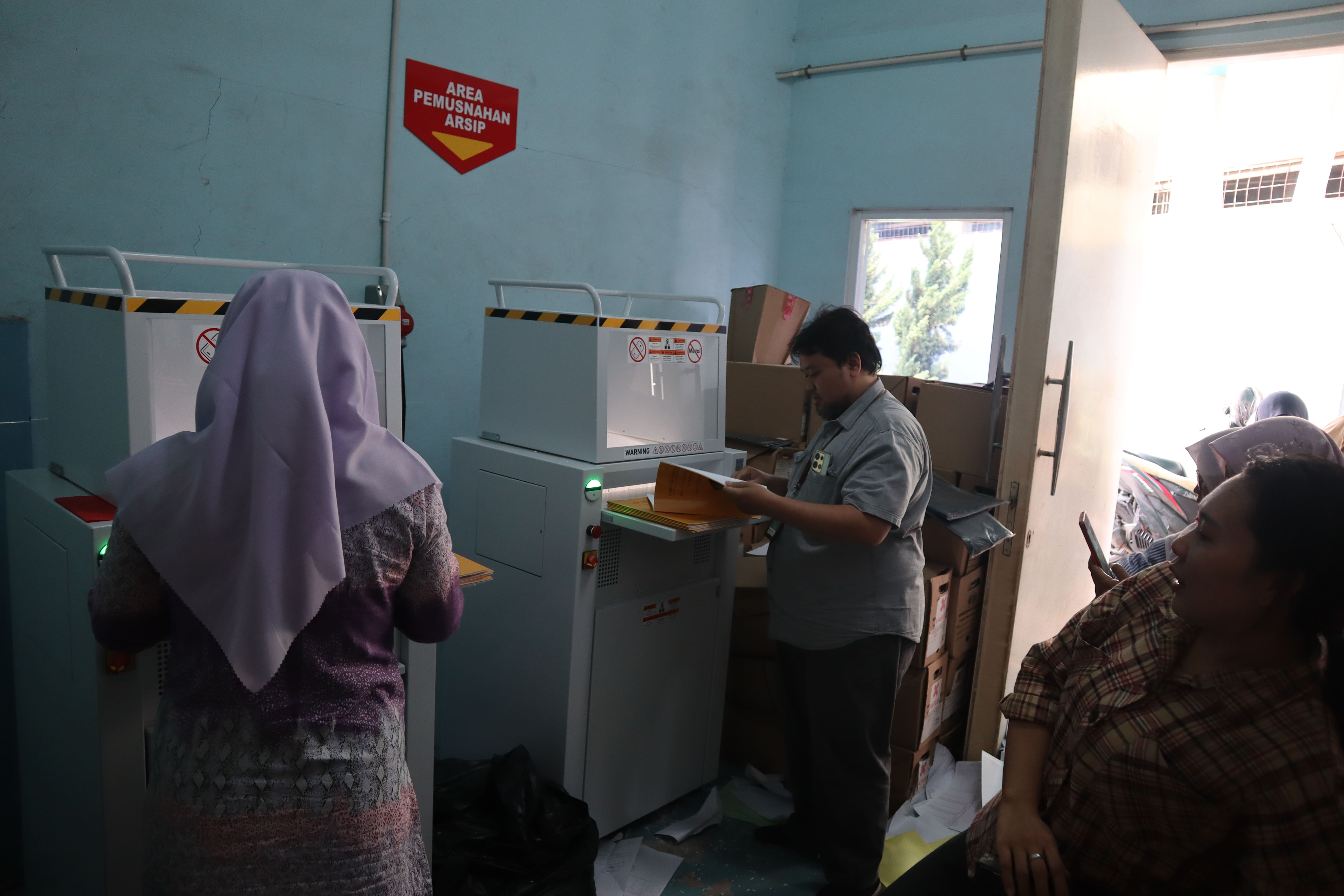 dengan menggunakan mesin pencacah yang berada di Gedung Arsip Kantor Pusat DJKN