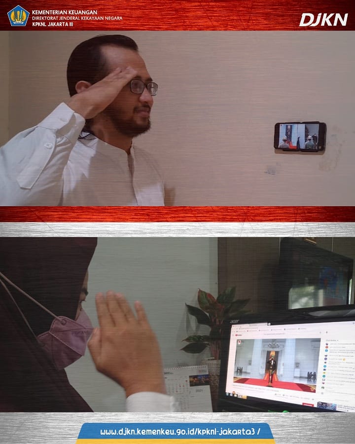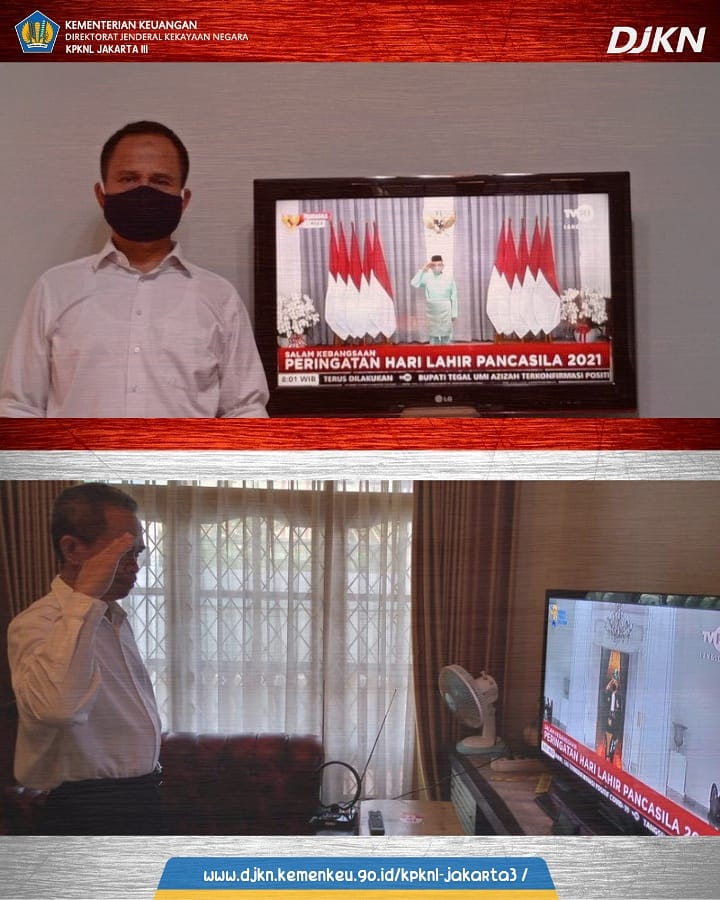 Selasa, 1 Juni 2021, segenap pegawai KPKNL Jakarta III serentak turut hadir secara virtual dalam mengikuti Upacara Peringatan Hari Lahir Pancasila mengingat hingga saat ini kita masih berada dalam kindisi pandemi covid-19. Hal ini sebagaimana arahan pemerintah melalui Badan Pembinaan Ideologi Pancasila (BPIP) dalam surat edarannya.