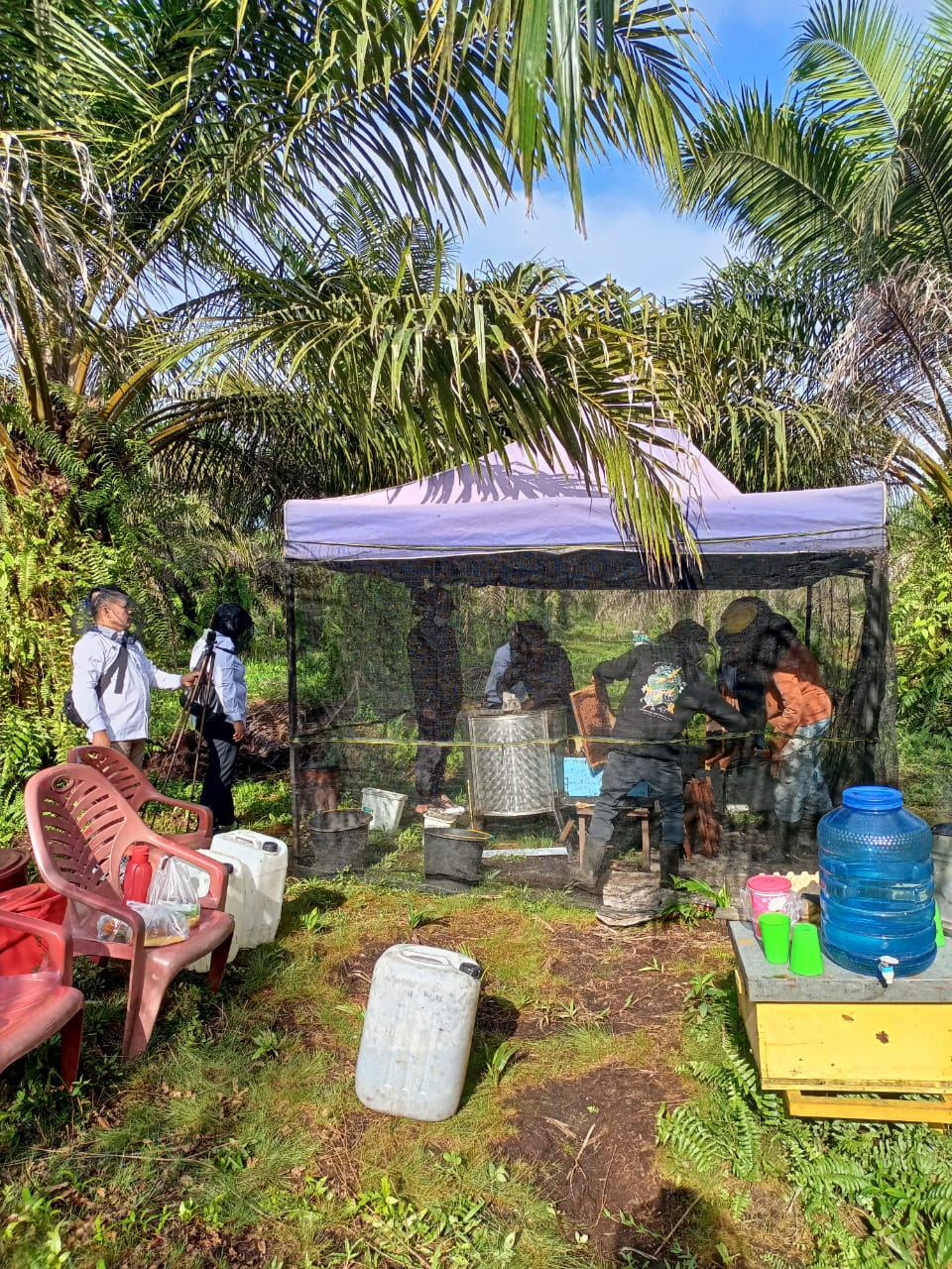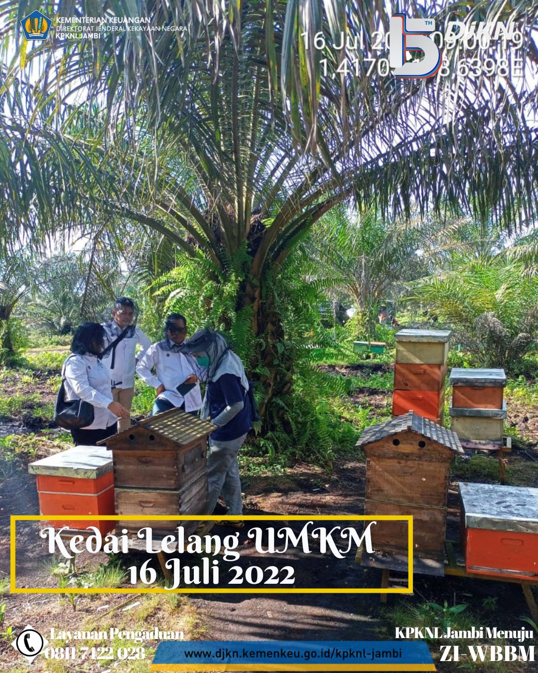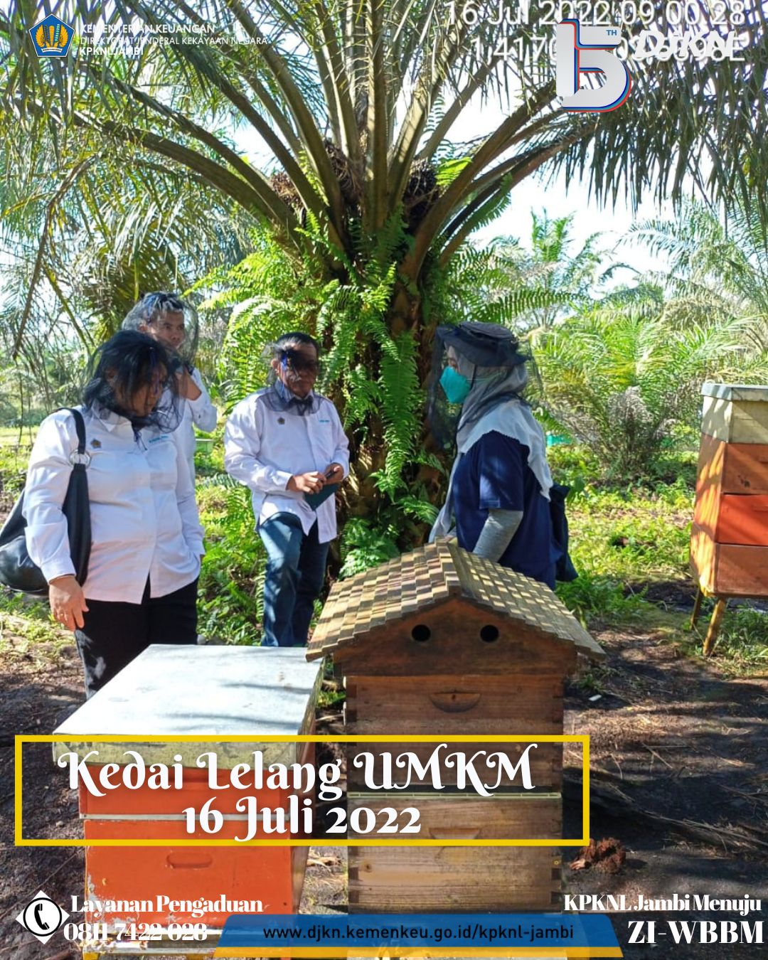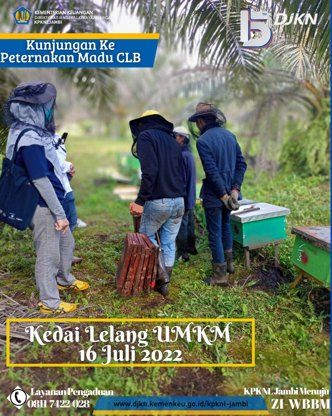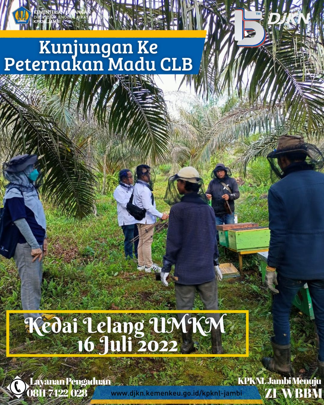 Sebelumnya Tim Kedai Lelang UMKM KPKNL Jambi berkunjung ke lokasi kantor Madu Cipta Lebah Berkah (CLB) Jambi sebagai tempat pengemasan sekaligus pemasaran atas madu CLB Jambi, kali ini Tim Kedai Lelang UMKM KPKNL Jambi melakukan kunjungan ke peternakan madu CLB Jambi di daerah Muaro Jambi. Dalam kunjungan kali ini Tim Kedai Lelang KPKNL Jambi juga didampingi oleh Ibu Candra selaku pemilik Madu CLB Jambi. Dalam kunjungan ke peternakan ini Tim Kedai Lelang melihat langsung peternakan lebah yang menghasilkan madu CLB Jambi sekaligus menyaksikan proses panen madu dilokasi peternakan tersebut. Banyak ilmu yang diperoleh Tim Kedai Lelang UMKM KPKNL Jambi dalam kunjungan kali ini.