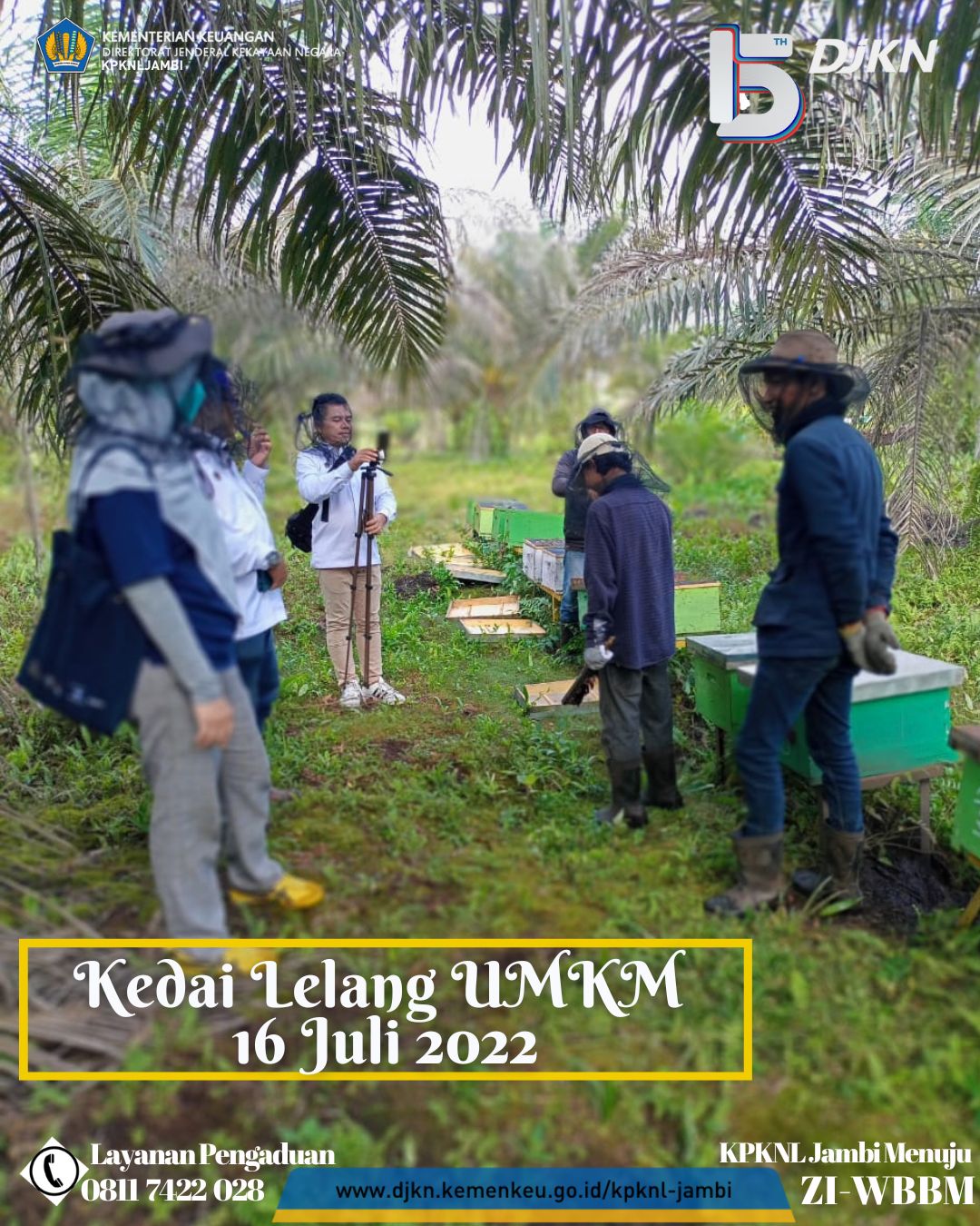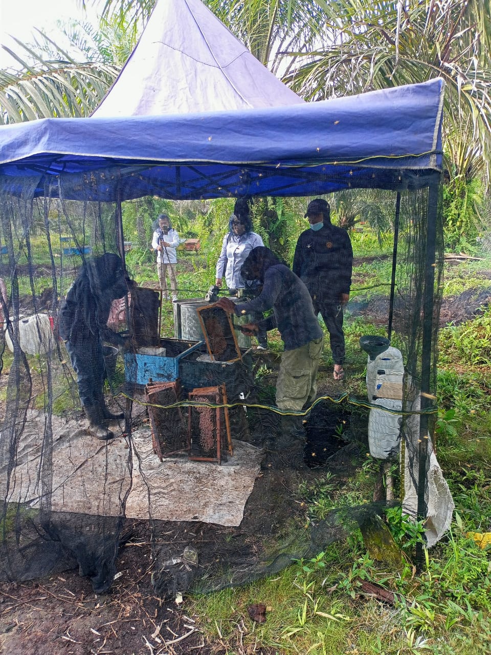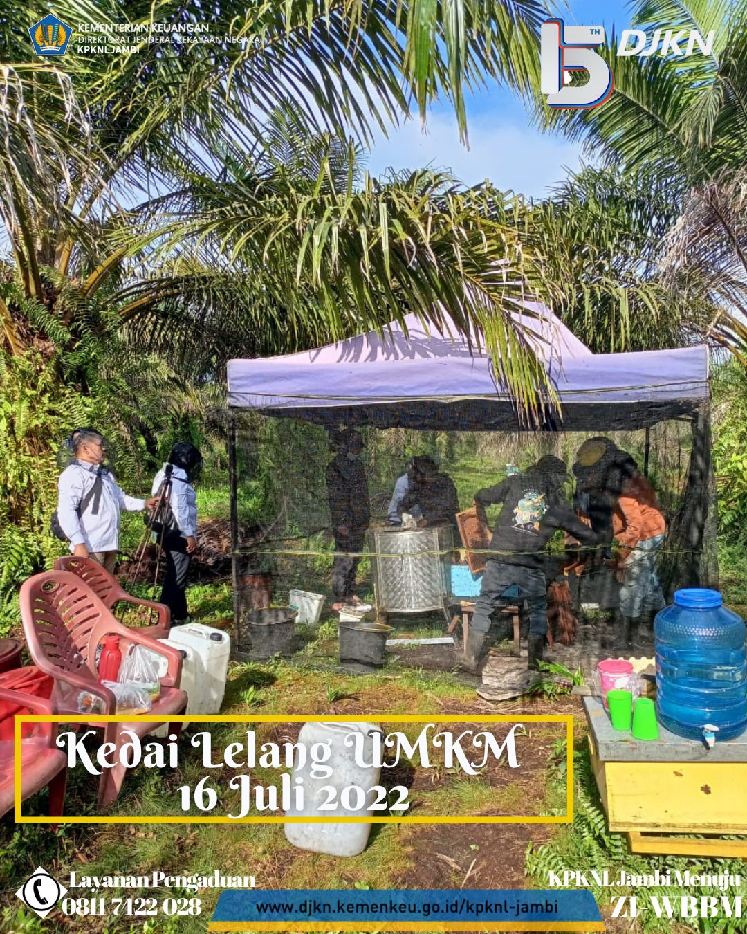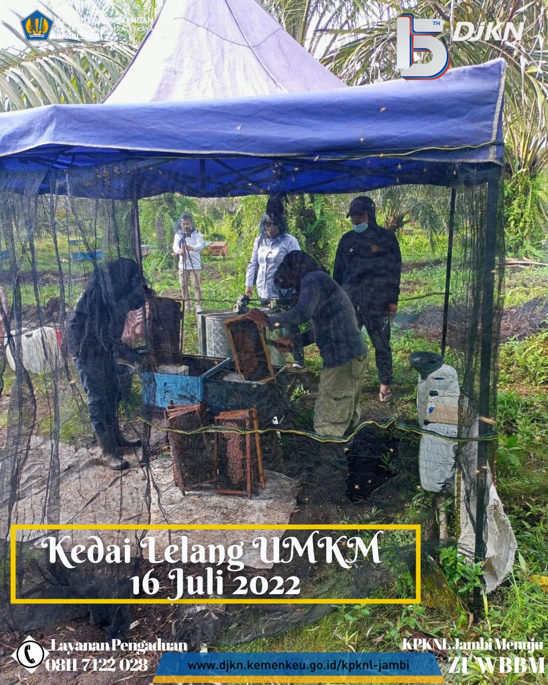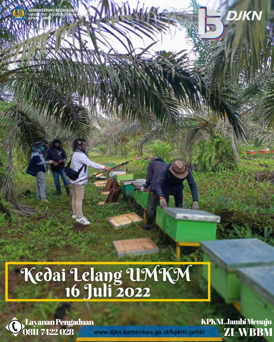 Sebelumnya Tim Kedai Lelang UMKM KPKNL Jambi berkunjung ke lokasi kantor Madu Cipta Lebah Berkah (CLB) Jambi sebagai tempat pengemasan sekaligus pemasaran atas madu CLB Jambi, kali ini Tim Kedai Lelang UMKM KPKNL Jambi melakukan kunjungan ke peternakan madu CLB Jambi di daerah Muaro Jambi. Dalam kunjungan kali ini Tim Kedai Lelang KPKNL Jambi juga didampingi oleh Ibu Candra selaku pemilik Madu CLB Jambi. Dalam kunjungan ke peternakan ini Tim Kedai Lelang melihat langsung peternakan lebah yang menghasilkan madu CLB Jambi sekaligus menyaksikan proses panen madu dilokasi peternakan tersebut. Banyak ilmu yang diperoleh Tim Kedai Lelang UMKM KPKNL Jambi dalam kunjungan kali ini.