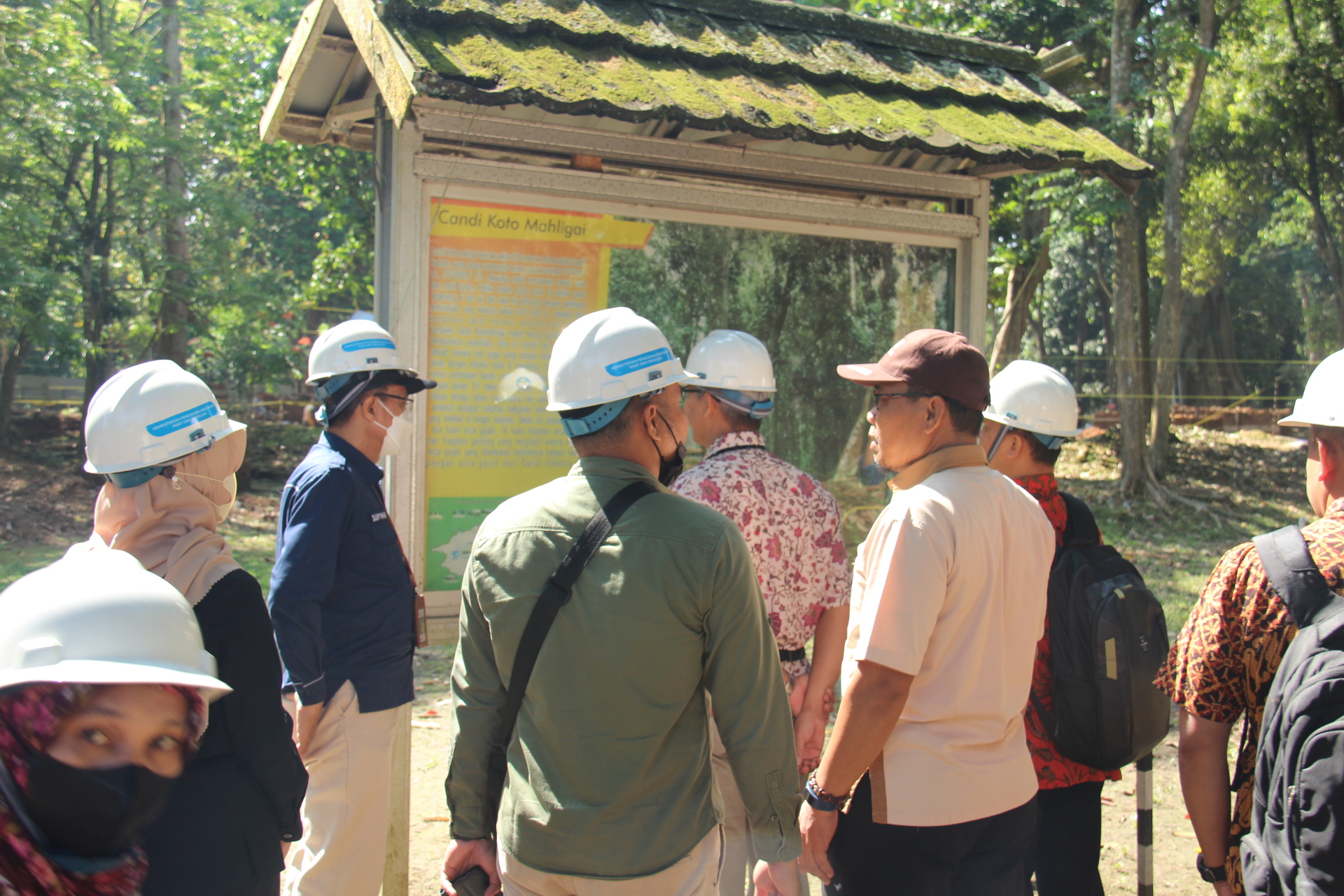 Candi Koto Mahligai untuk menyaksikan kegiatan pemugaran candi yang sedang