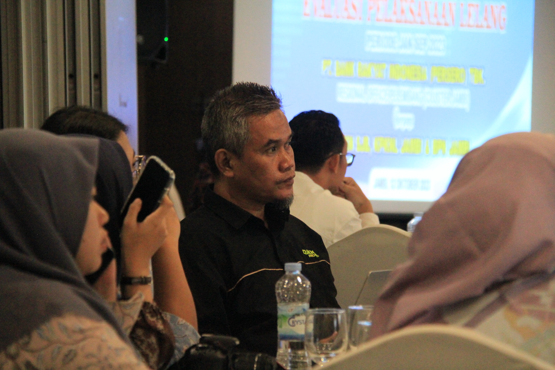 Kegiatan ini dilaksanakan guna melakukan evaluasi terkait capaian lelang sampai dengan Triwulan III 2023 serta pembahasan prognosa dan upaya optimalisasi pelaksanaan lelang Triwulan IV 2023. Dalam kesempatan pemaparan atas kinerja lelang terkait pelaksanaan lelang dari permohoan PT BRI di KPKNL Jambi, Kepala KPKNL Jambi, Darnadi memberikan gambaran capaian atas lelang dari permohonan dari PT BRI KC Jambi, adapun permohonan lelang selama tahun 2023 sampai dengan Triwulan III terbanyak berasal dari Bank BRI dengan frekuensi lelang sebanyak 288 frekuensi yang berasal dari 171 pemohon dengan pokok lelang sebesar Rp12,4 miliar, yang secara keseluruhan telah memenuhi harapan bersama. Walau demikian masih ada beberapa kendala di lapangan yang harus didiskusikan bersama pemecahannya, diantaranya adalah terkait permohonan SKPT secara online. Hadir juga dalam kegiatan ini Kepala Penetapan Hak dan Pendaftaran Tanah, BPN Jambi, Sontang Coin Manurung terkait persoalan di Kantor Pertanahan.