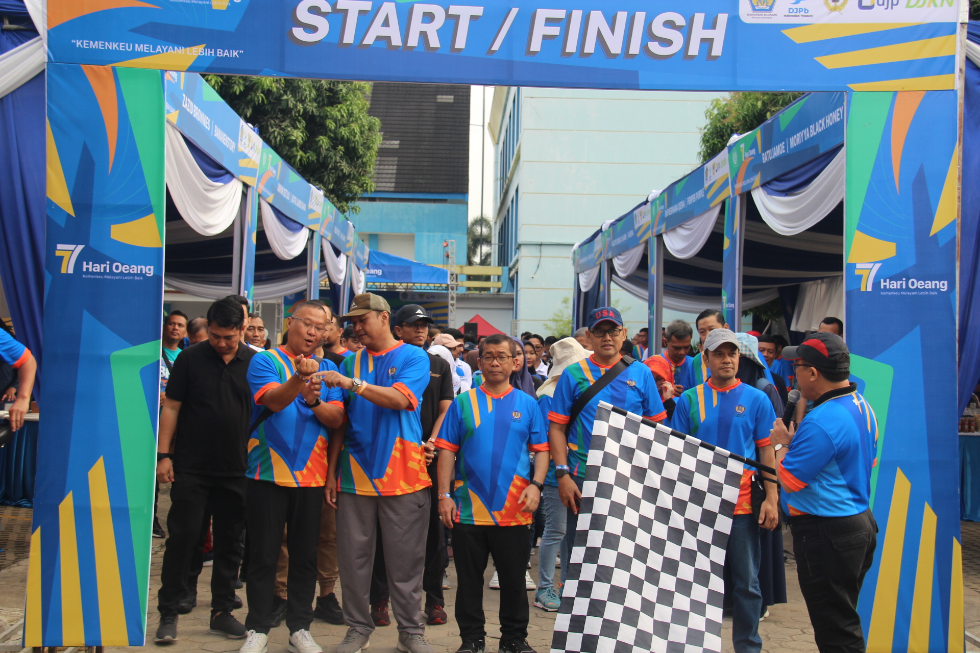 Jambi- Minggu (29/10) bertempat di Kantor Pajak Jambi Telanaipura, pegawai KPKNL Jambi beserta segenap pegawai Kemenkeu Satu Jambi secara antusias mengikuti kegiatan Jalan Santai sebagai acara pembuka Hari Puncak HORI ke-77. Puncak Acara Hari Oeang Republik Indonesia Kemenkeu Perwakilan Provinsi Jambi ini dimeriahkan dengan Bazar UMKM dan Simulasi lelang yang turut menjadi bagian dari rangkaian acara pada Minggu pagi tersebut. Dengan dipimpin langsung oleh Risman, Pelelang Ahli Muda KPKNL Jambi, kegiatan simulasi lelang sukarela ini berjalan dengan seru dan meriah. Satu unit sepeda dan satu unit kompor gas dua tungku menjadi objek lelang dalam kegiatan simulasi lelang, dengan hasil lelang mencapai Rp1.050.000,- dan seluruh hasil lelang tersebut akan didonasikan.