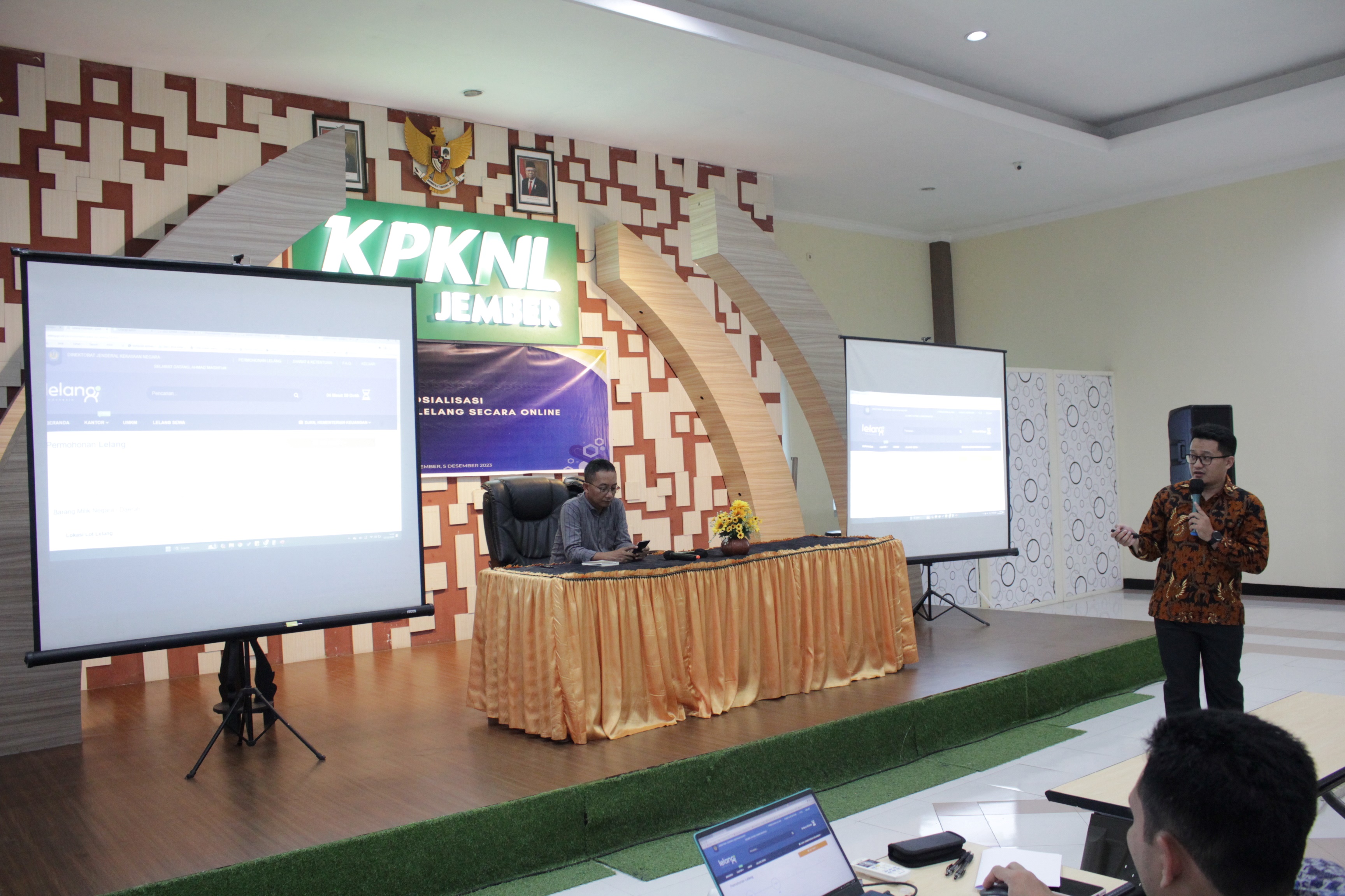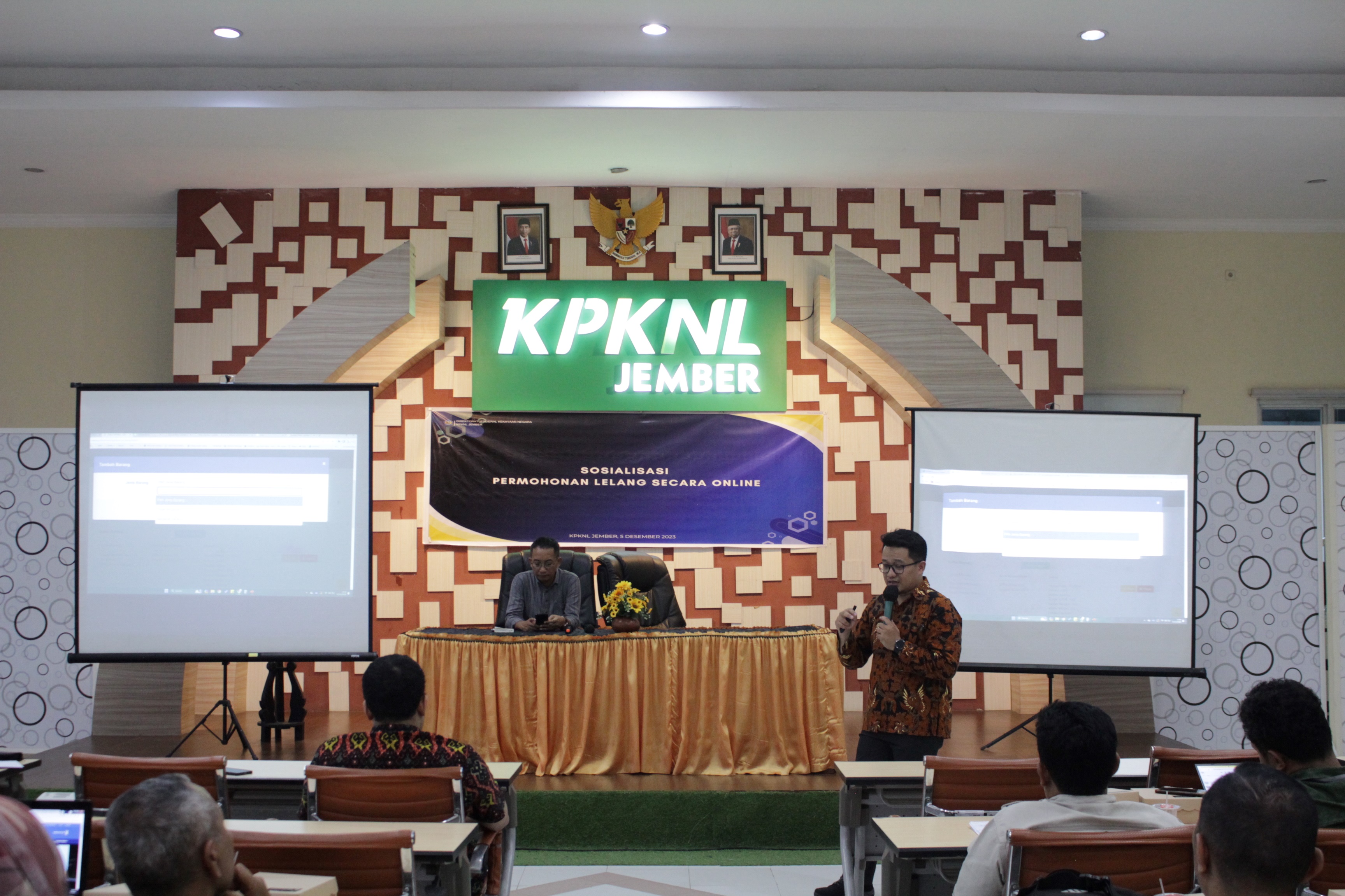 Jember, (05/12/2023), Kantor Pelayanan Kekayaan Negara dan Lelang (KPKNL) Jember menyelenggarakan Sosialisasi Permohonan Lelang Online, bertempat di Aula Lantai II KPKNL Jember yang dihadiri 15 Satuan Kerja (Satker) di wilayah kerja KPKNL Jember. Kegiatan ini bertujuan untuk memberikan pemahaman kepada para stakeholder mengenai tata cara dan syarat yang diperlukan untuk mengajukan permohonan lelang BMN secara online.