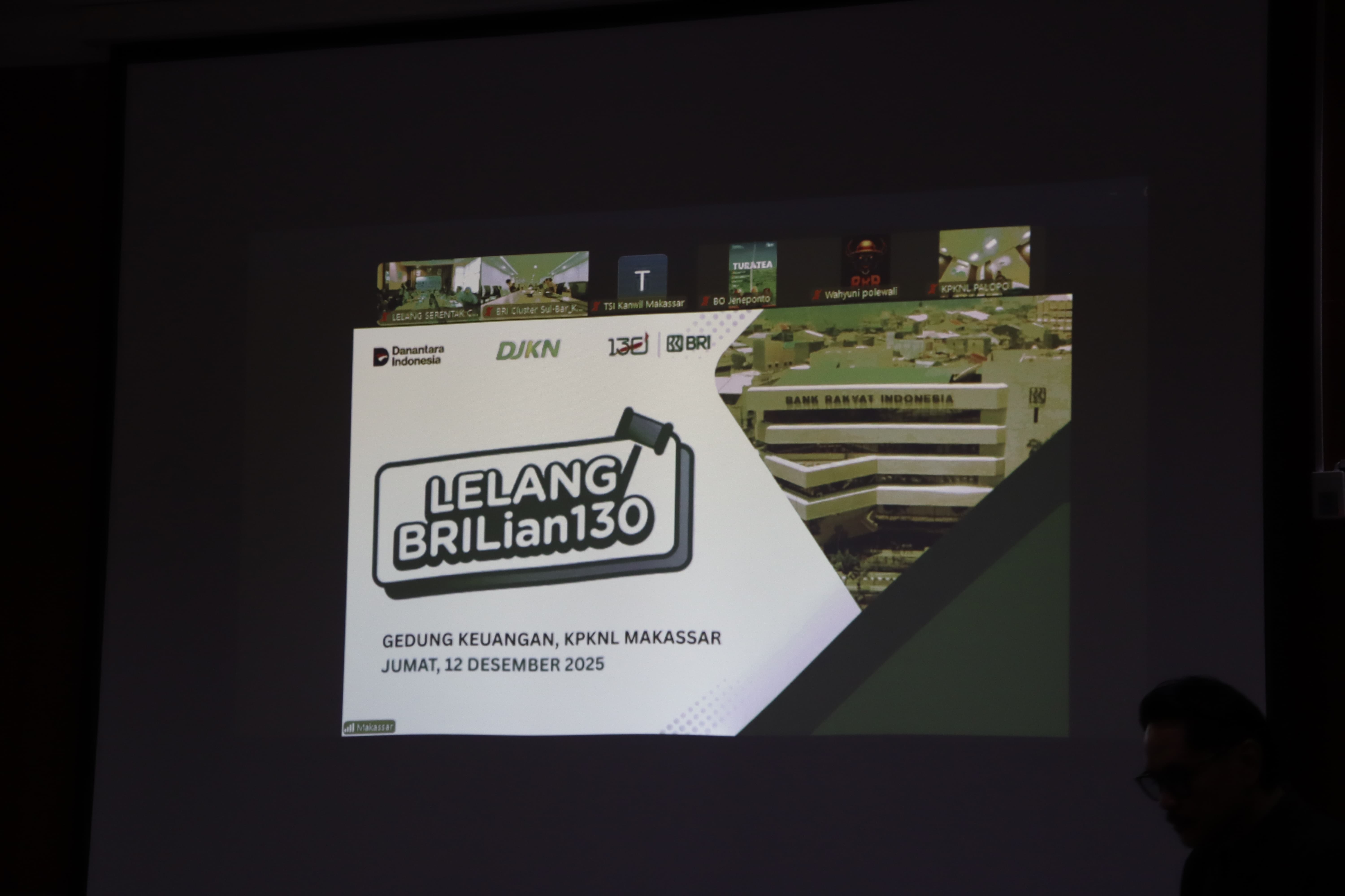 Kendari – Kegiatan Lelang Hak Tanggungan PT Bank Rakyat Indonesia (Persero) Tbk Region 15 Makassar dalam rangka menyambut HUT BRI ke-130 berlangsung sukses di KPKNL Kendari. Kegiatan lelang serentak hari ini terhubung melalui Zoom Meeting dengan jajaran KPKNL dan unit BRI yang berada di wilayah Sulawesi Selatan, Tenggara, dan Barat (Sulseltrabar) sebagai bagian dari koordinasi dan monitoring lelang serentak nasional BRI. Pelaksanaan lelang dipimpin oleh pejabat pelelang di KPKNL Kendari, yaitu Pelelang Ahli Muda dan Pelelang Ahli Pertama, yang memastikan proses berjalan tertib, transparan, dan sesuai ketentuan dari Direktorat Jenderal Kekayaan Negara (12/12).