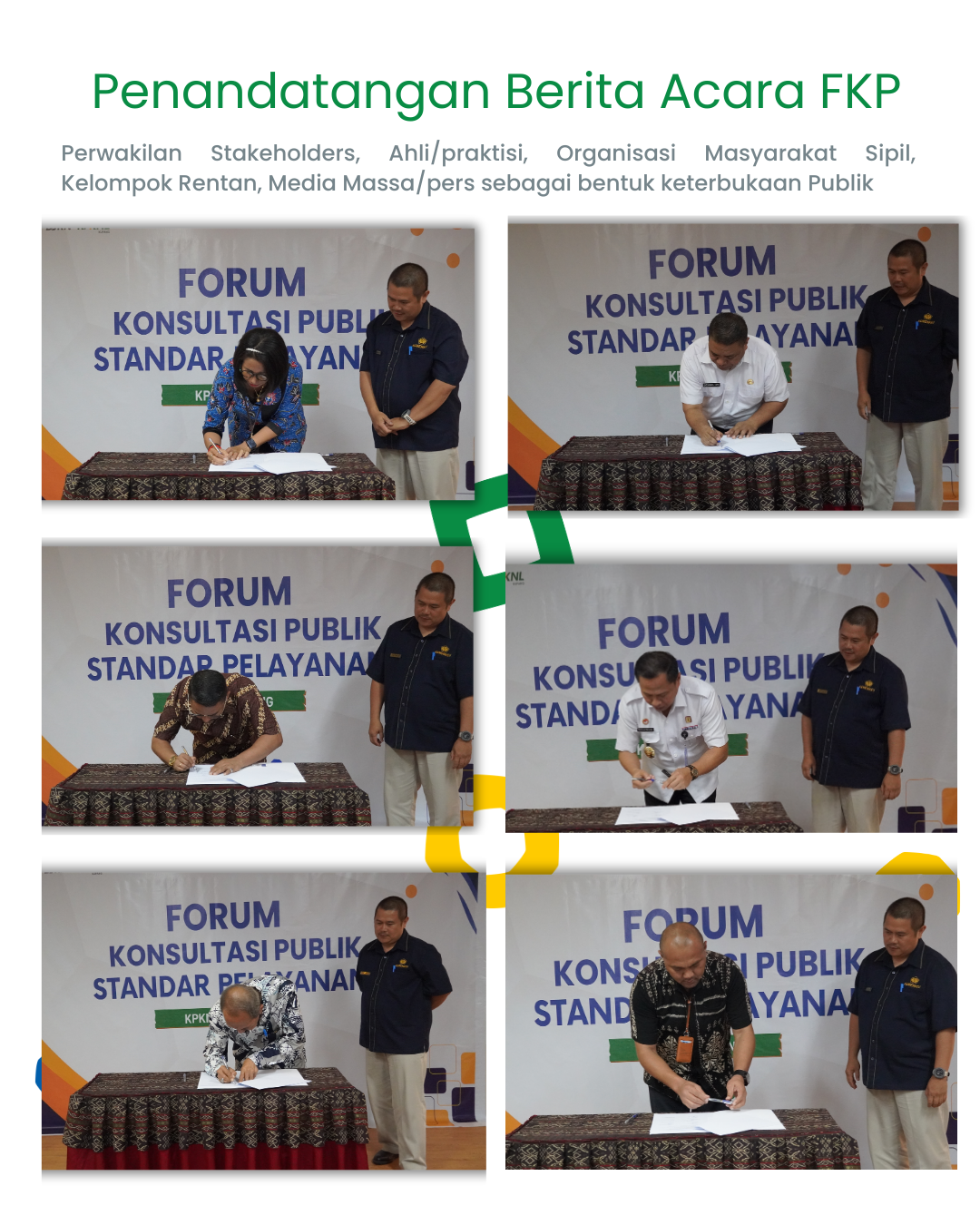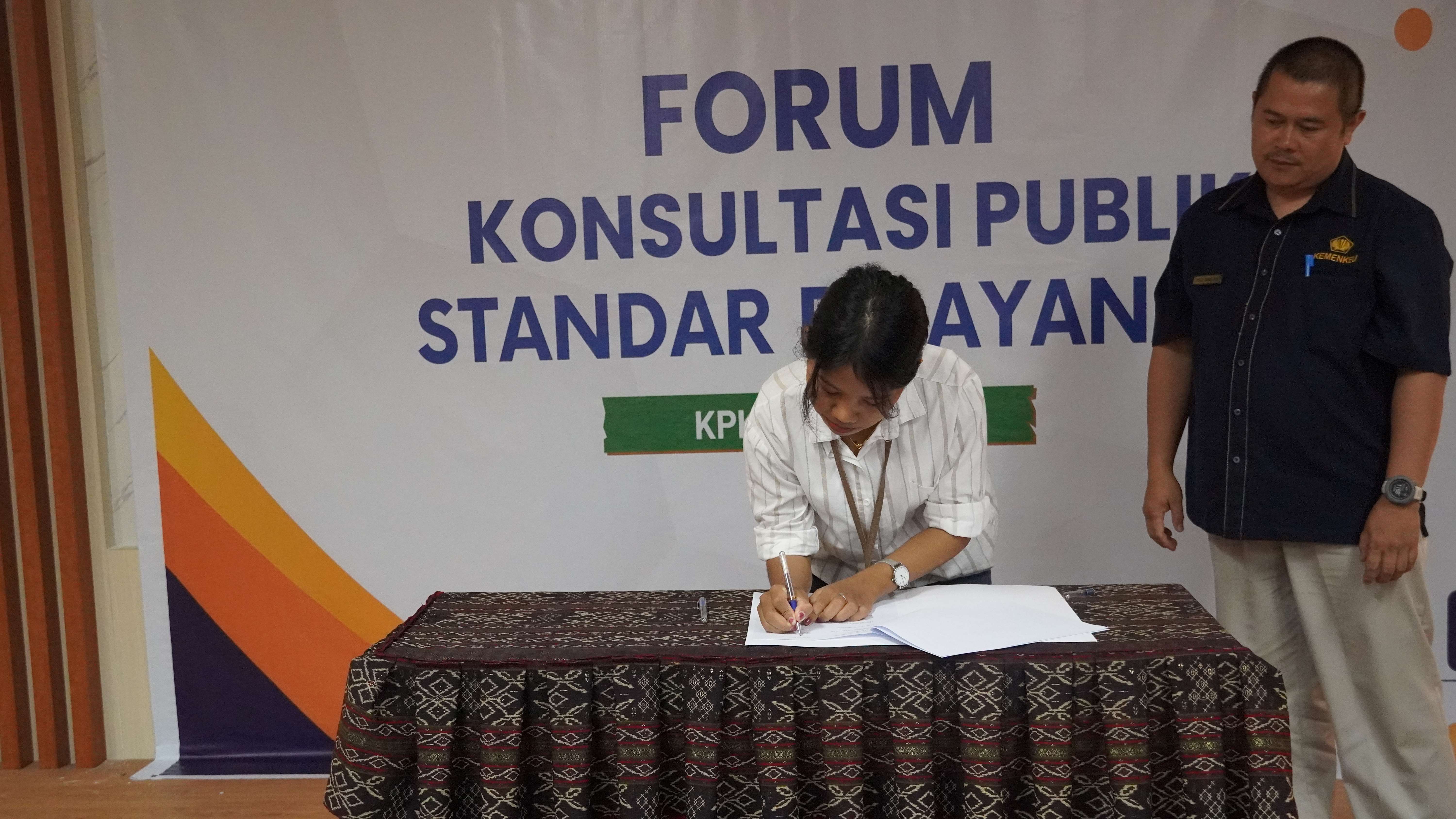Setelah diskusi, acara diakhiri dengan penandatanganan Berita Acara Forum Konsultasi Publik. Penandatanganan ini melibatkan berbagai perwakilan, termasuk Pengguna Layanan, Stakeholders Pelayanan Publik, Akademisi/Praktisi, Organisasi Masyarakat Sipil, Instansi Pemerintah, Perwakilan Kelompok Rentan, dan Media Massa, sebagai bentuk komitmen untuk terus memperbaiki standar pelayanan publik dengan fokus pada transparansi dan akuntabilitas.