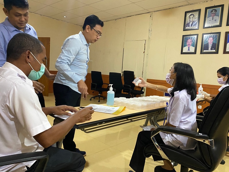 Kupang melaksanakan kegiatan tes urine di Kantor Pelayanan Kekayaan Negara dan Lelang