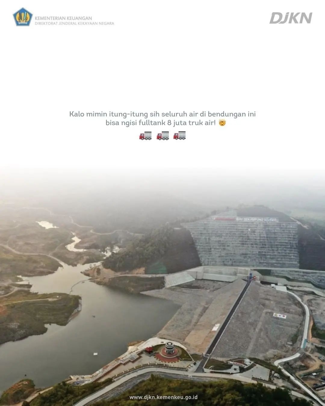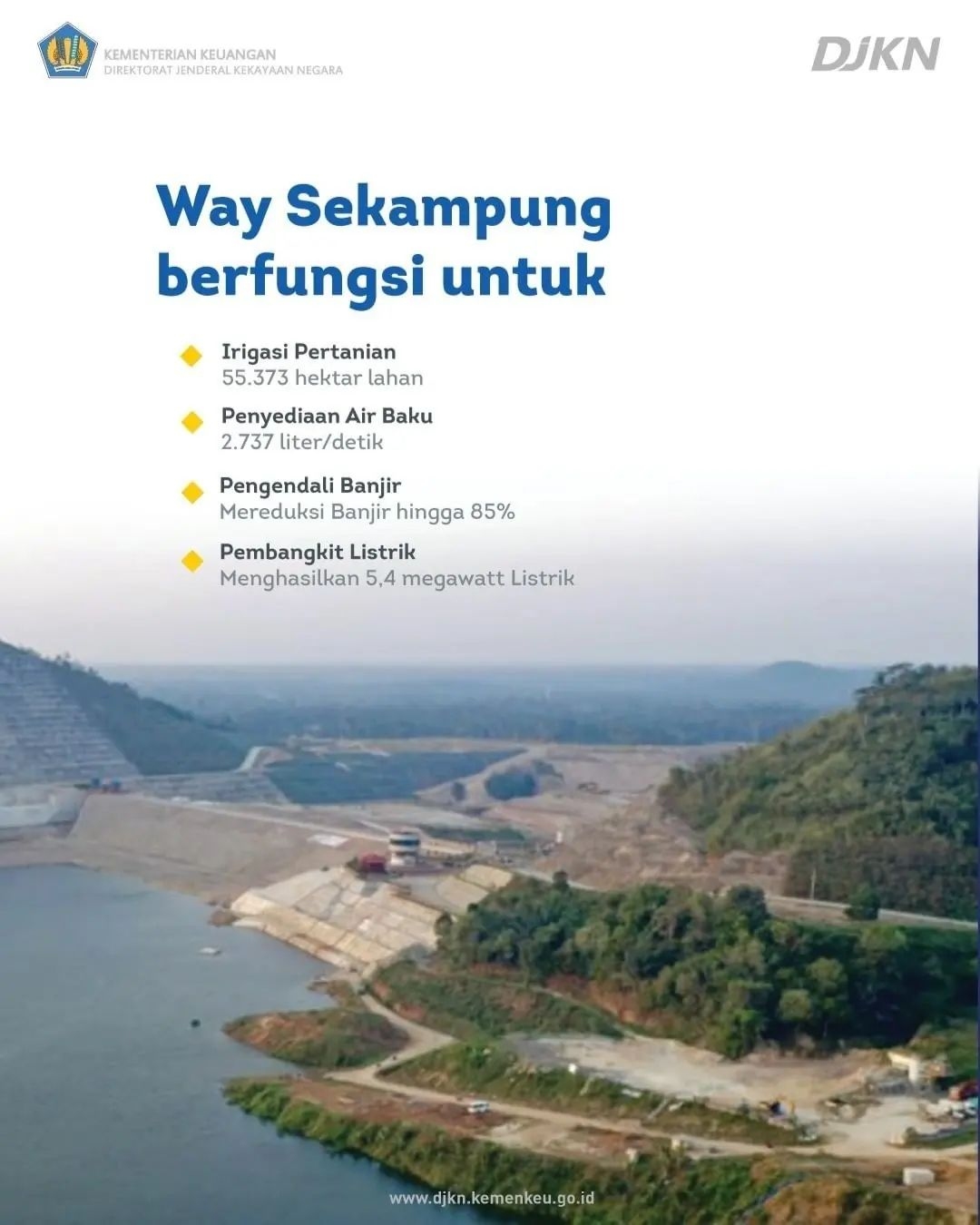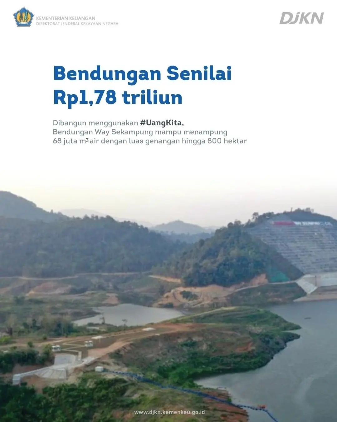 Bendungan Way Sekampung yang terletak di Kabupaten Pringsewu, Provinsi Lampung, ini dibangun dengan Anggaran Pendapatan dan Belanja Negara (APBN) sebesar Rp1,78 triliun. #IniPunyaKita.