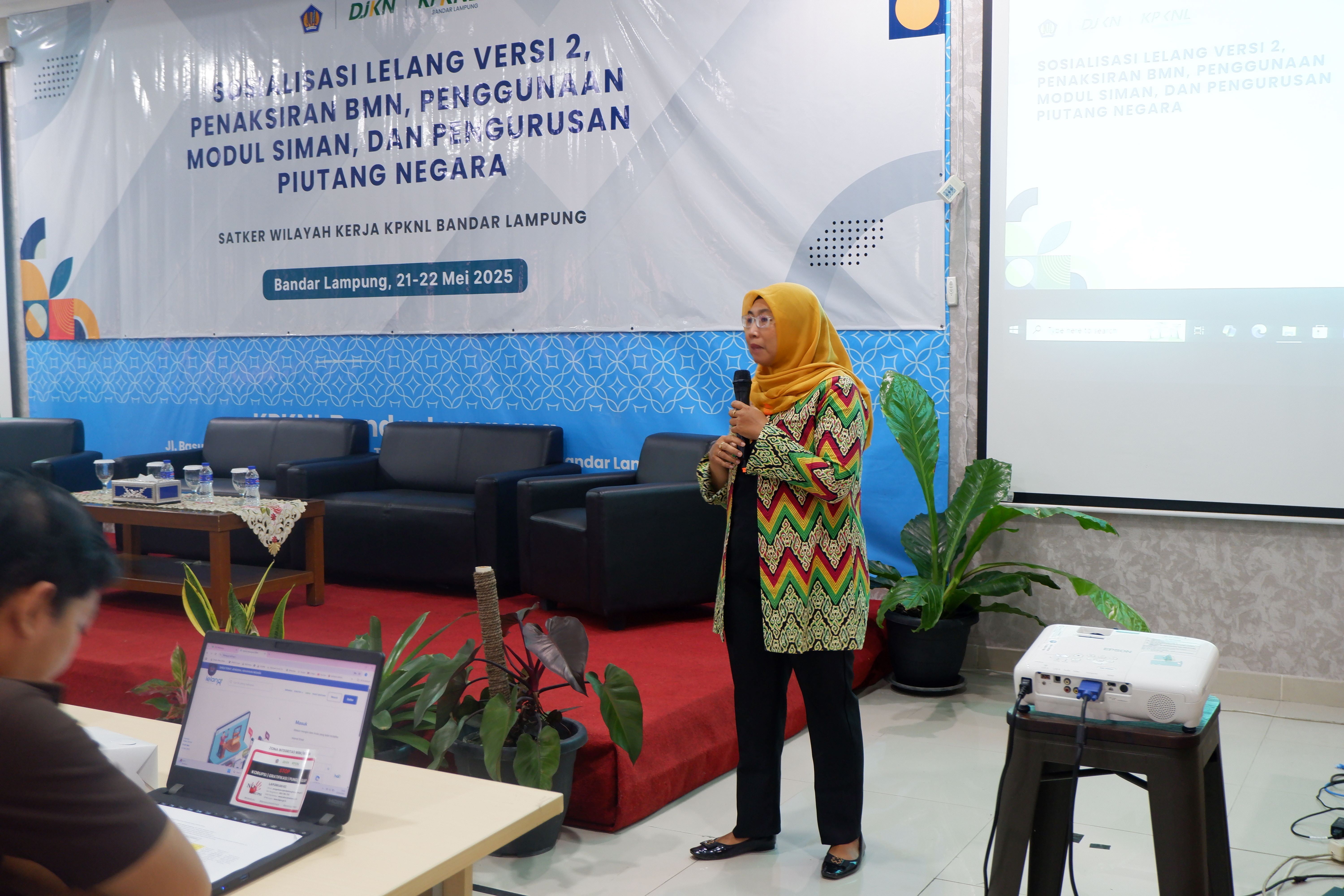 Bandar Lampung, 21–22 Mei 2025 — Kantor Pelayanan Kekayaan Negara dan Lelang (KPKNL) Bandar Lampung menyelenggarakan kegiatan Sosialisasi Layanan Kekayaan Negara di Aula KPKNL Bandar Lampung. Kegiatan ini diikuti secara hibrida oleh perwakilan seluruh satuan kerja kementerian/lembaga di wilayah kerja KPKNL Bandar Lampung.