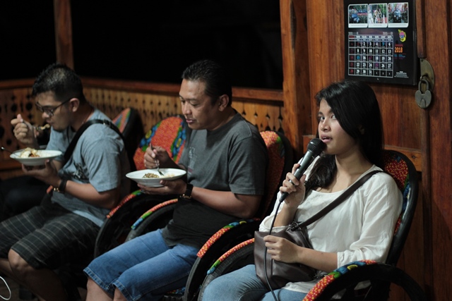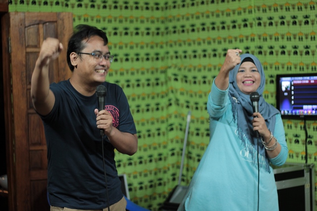 menyanyikan bersama lagu yang dimodifikasi sehingga terdengar lucu dan mengajak