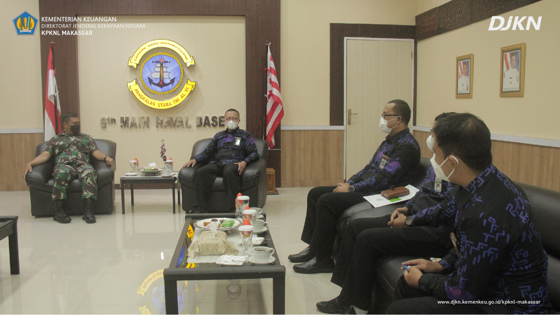 Makassar – Kepala Kantor Pelayanan Kekayaan Negara dan Lelang (KPKNL) Makassar, Harmaji, beserta jajaran pejabat eselon IV melakukan kunjungan ke Pangkalan Utama TNI Angkatan Laut (Lantamal) VI Makassar untuk koordinasi dalam meningkatkan sinergi antar kementerian/lembaga dalam hal hubungannya sebagai pengelola dan pengguna barang. Berlokasi di Mako Lantamal VI Makassar di Jalan Yos Sudarso No. 308, Kota Makassar, kegiatan tersebut disambut hangat oleh Komandan Lantamal VI Makassar, Laksamana Pertama TNI Dr. Benny Sukandari, S.E., M.M., CHRMP.