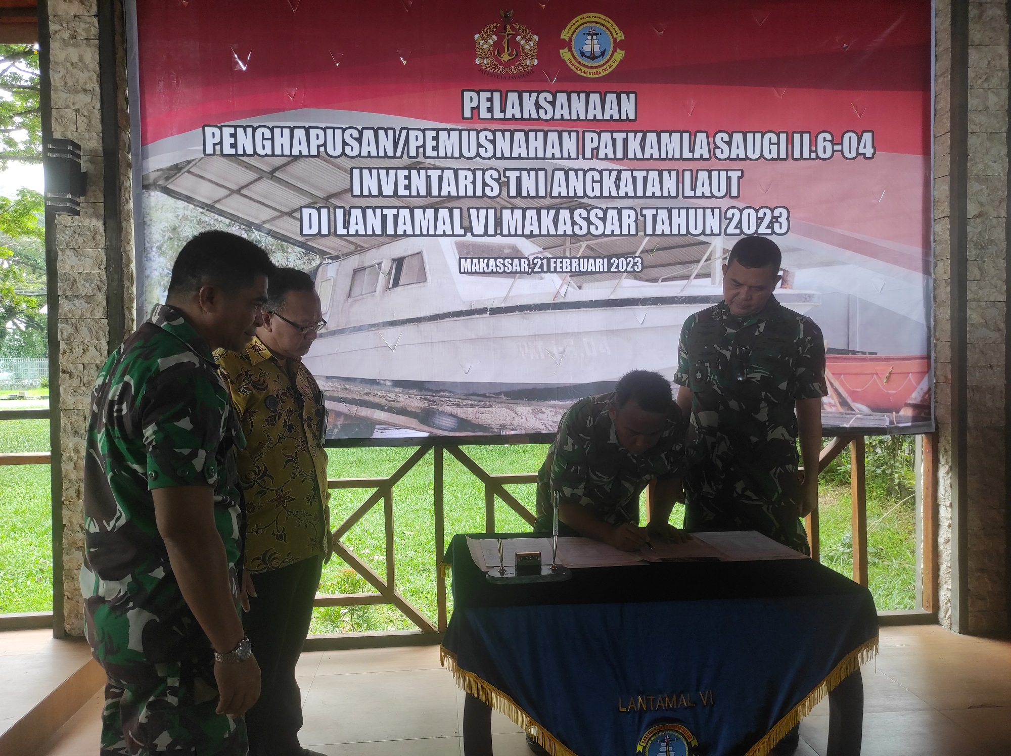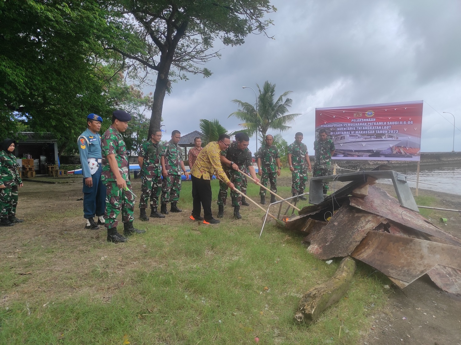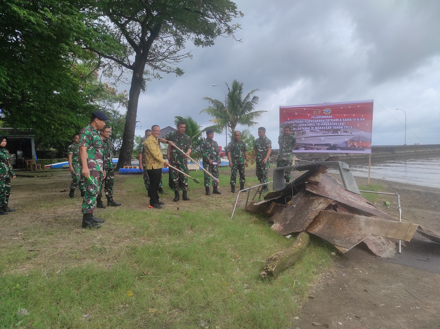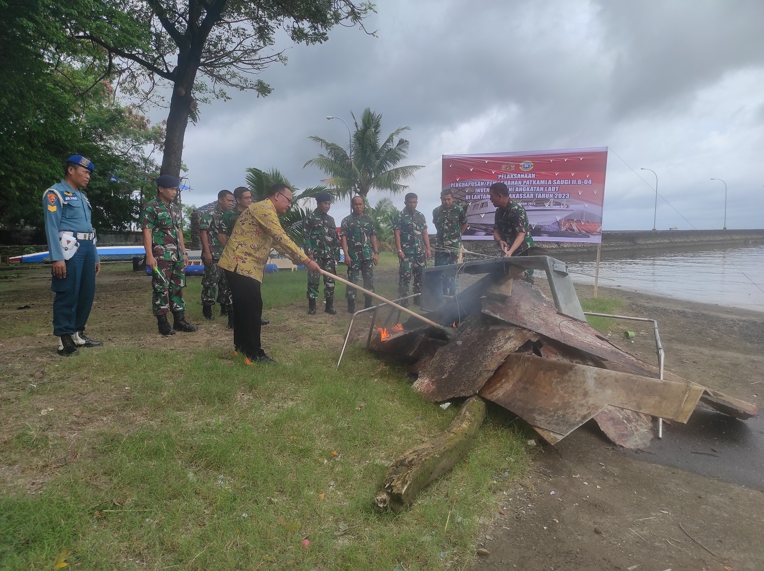 Pemusnahan Kapal Patkamla Saugi II.6-04 Inventaris Angkatan Laut di Lantamal VI Makassar
