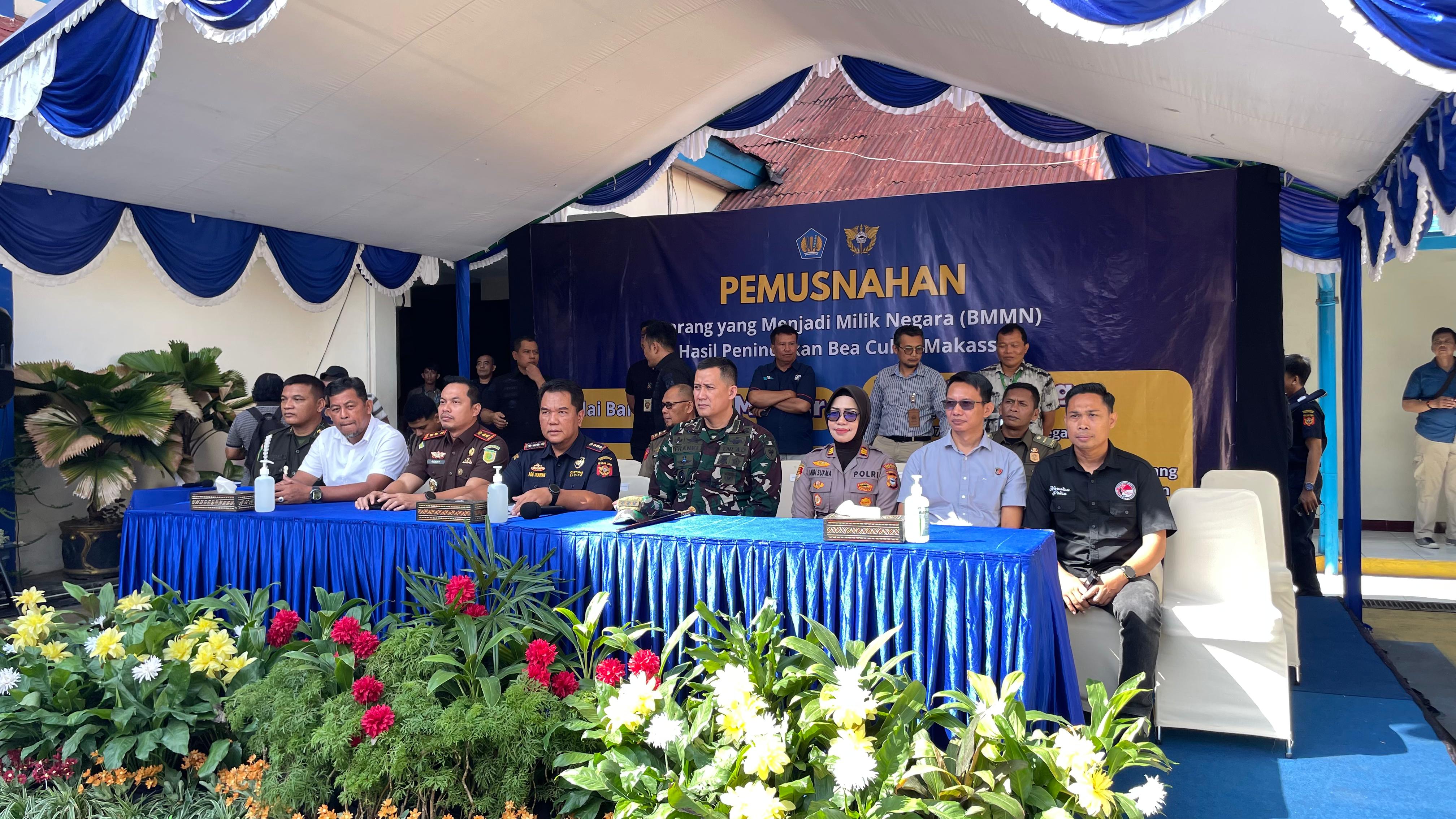 KPKNL Makassar Hadiri Pemusnahan BMN Hasil Penindakan Bea Cukai