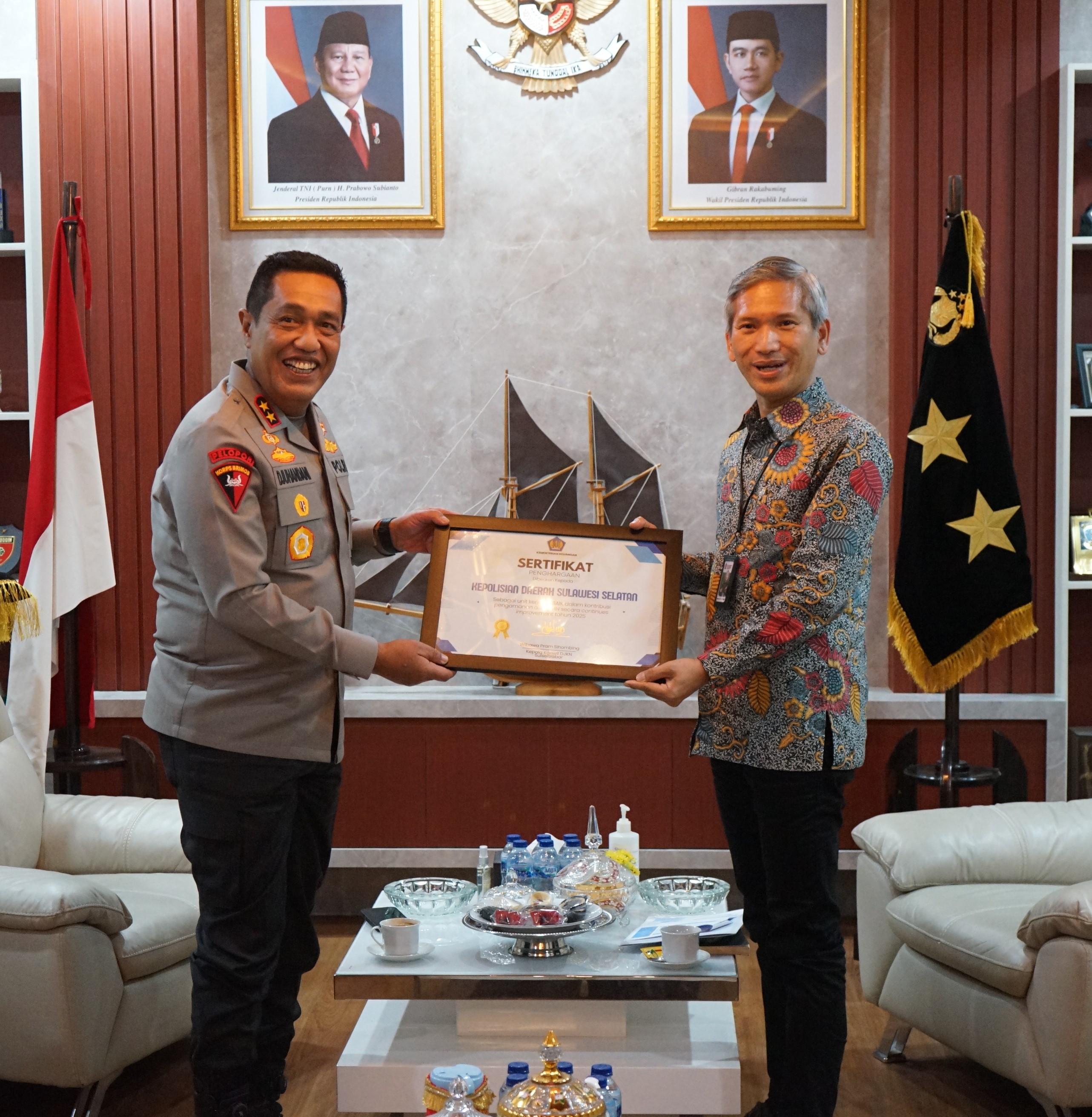 kepada Kapolda Sulsel dengan predikat Unit Kerja Terbaik dalam Kontribusi