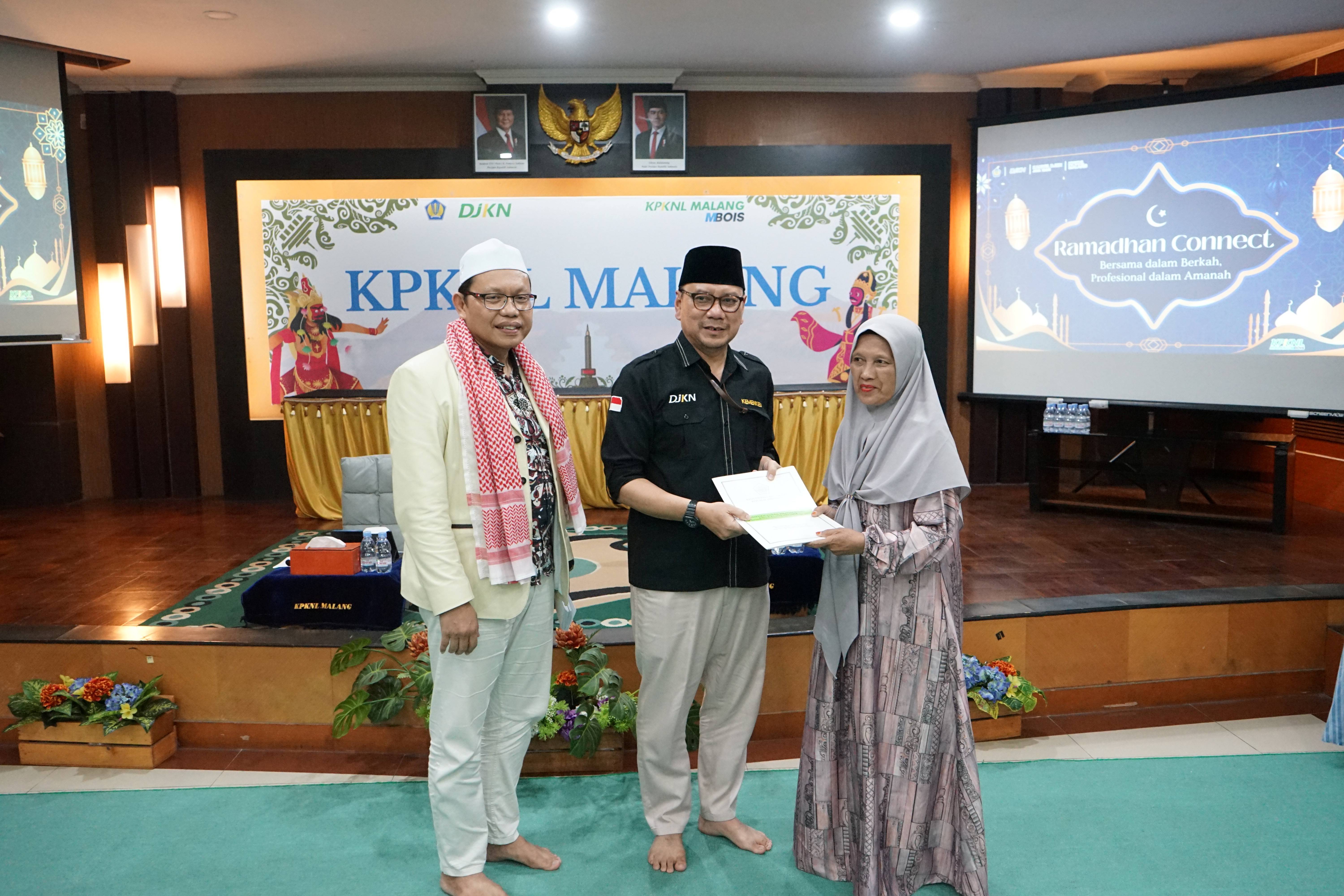 Bertempat di Aula 1 KPKNL Malang, telah dilaksanakan kegiatan pembinaan mental melalui ceramah agama dan buka puasa bersama pada Kamis, 5 Maret 2026 yang dihadiri Kepala Kantor Wilayah (Kanwil) DJKN Jawa Timur dan seluruh pegawai KPKNL Malang, serta anak-anak Panti Asuhan Yatim Al-Islah Kota Malang.