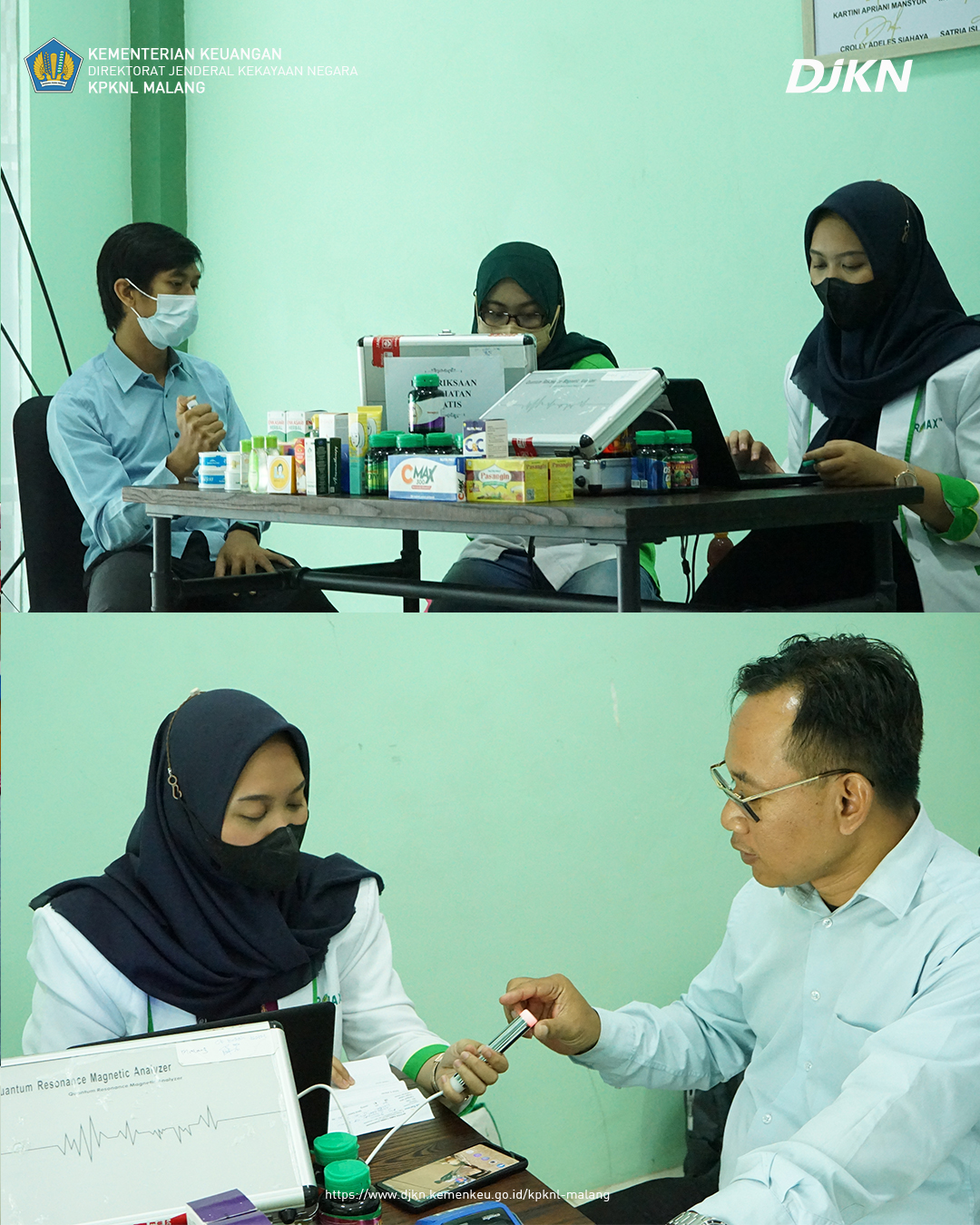 Sebagai upaya pencegahan serta deteksi dini terhadap penyakit tidak menular, KPKNL Malang menyelenggarakan kegiatan pemeriksaan kesehatan gratis pada Rabu 7 September 2022 yang bekerja sama dengan Kimia Farma Cabang Kebonsari. Kegiatan tersebut diperuntukkan bagi seluruh pegawai KPKNL Malang serta beberapa mahasiswa yang sedang melaksanakan magang. Terdapat beberapa jenis pemeriksaan yang dilakukan diantaranya pemeriksaan kolesterol total, pemeriksaan trigliserida, pemeriksaan gula darah pemeriksaan asam urat, dsb.