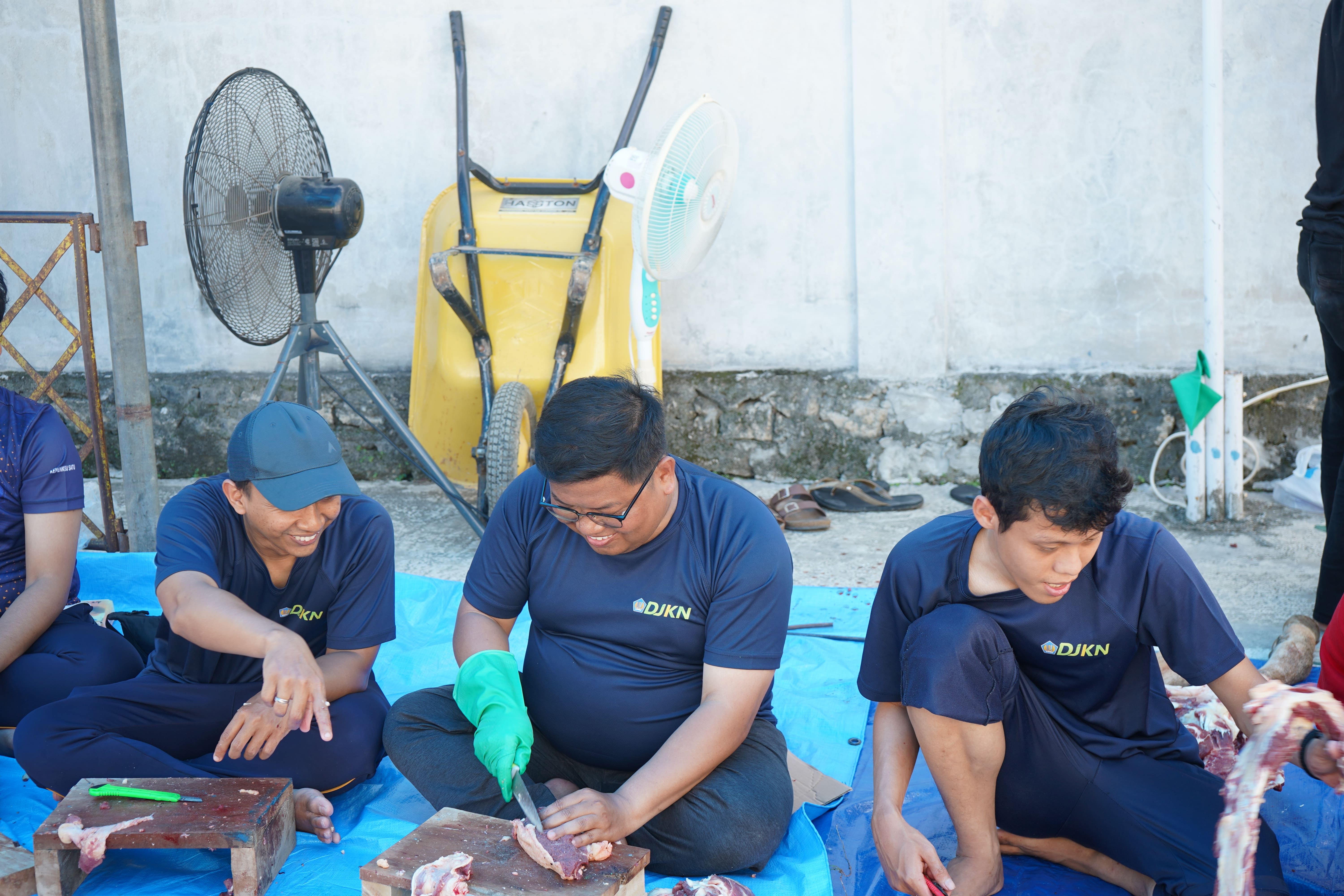 Suasana penuh kekeluargaan dan keceriaan dirasakan bersama sepanjang penyelenggaraan kegiatan yang bukan hanya dilaksanakan oleh pegawai/PPNPN muslim, tetapi juga dibantu oleh pegawai/PPNPN non muslim di lingkungan Kemenkeu Satu Sulawesi Barat. Baik laki-laki maupun perempuan, semuanya bahu-membahu menyukseskan jalannya kegiatan, mulai dari persiapan hingga distribusi daging kurban. Sebagian juga bertugas untuk menyiapkan konsumsi bagi seluruh panitia yang bertugas.