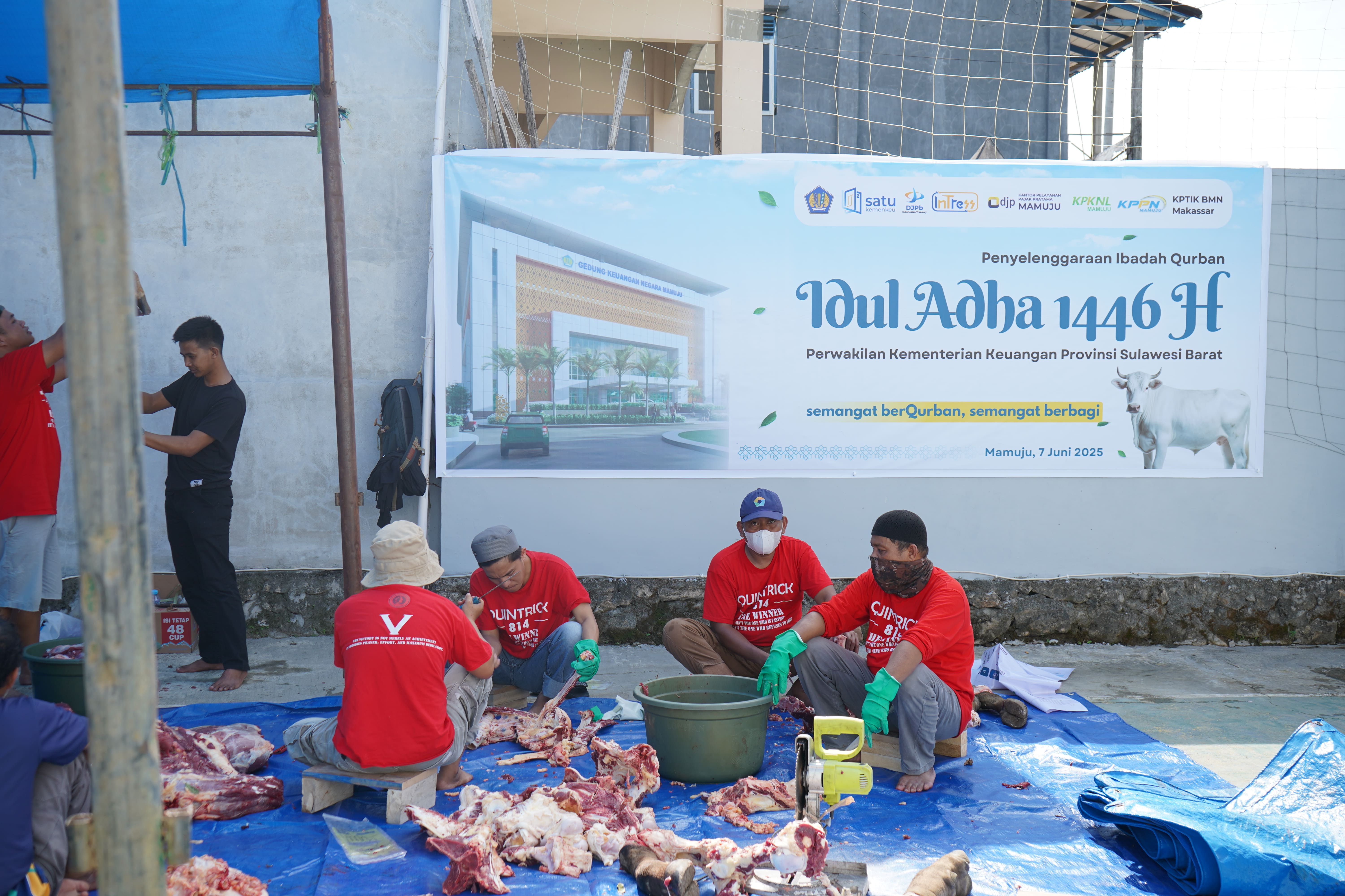 Selain sebagai bentuk kepedulian sosial dan semangat berbagi kepada sesama, penyelenggaraan ibadah kurban pada peringatan Hari Raya Idul Adha di lingkungan Kemenkeu Satu Sulawesi Barat juga menjadi cerminan dari sinergi dan kolaborasi seluruh pegawai Kemenkeu di Sulawesi Barat. Hal ini tercermin dari keterlibatan para pegawai dan PPNPN dari seluruh unit Kemenkeu Satu Sulawesi Barat dalam susunan kepanitiaan. Di bawah arahan Bapak Tjahjo Purnomo selaku Kepala Perwakilan Kemenkeu Sulawesi Barat dan sekaligus Kepala Kanwil DJPb Provinsi Sulawesi Barat, serta Bapak Helvita Dorojatun selaku Kepala Sekretariat Bersama Kemenkeu Sulbar sekaligus Kepala KPKNL Mamuju, kegiatan penyembelihan hewan kurban dikoordinasikan langsung oleh Kepala KPPN Mamuju, Bapak Ferry Taufik Saleh. Kegiatan ini melibatkan sekitar 90 orang pegawai dan PPNPN di lingkungan Kanwil DJPb Provinsi Sulawesi Barat, KPKNL Mamuju, KPPN Mamuju, KPP Pratama Mamuju, dan GKN Mamuju, serta mendapat dukungan penuh dari KPTIK Makassar.