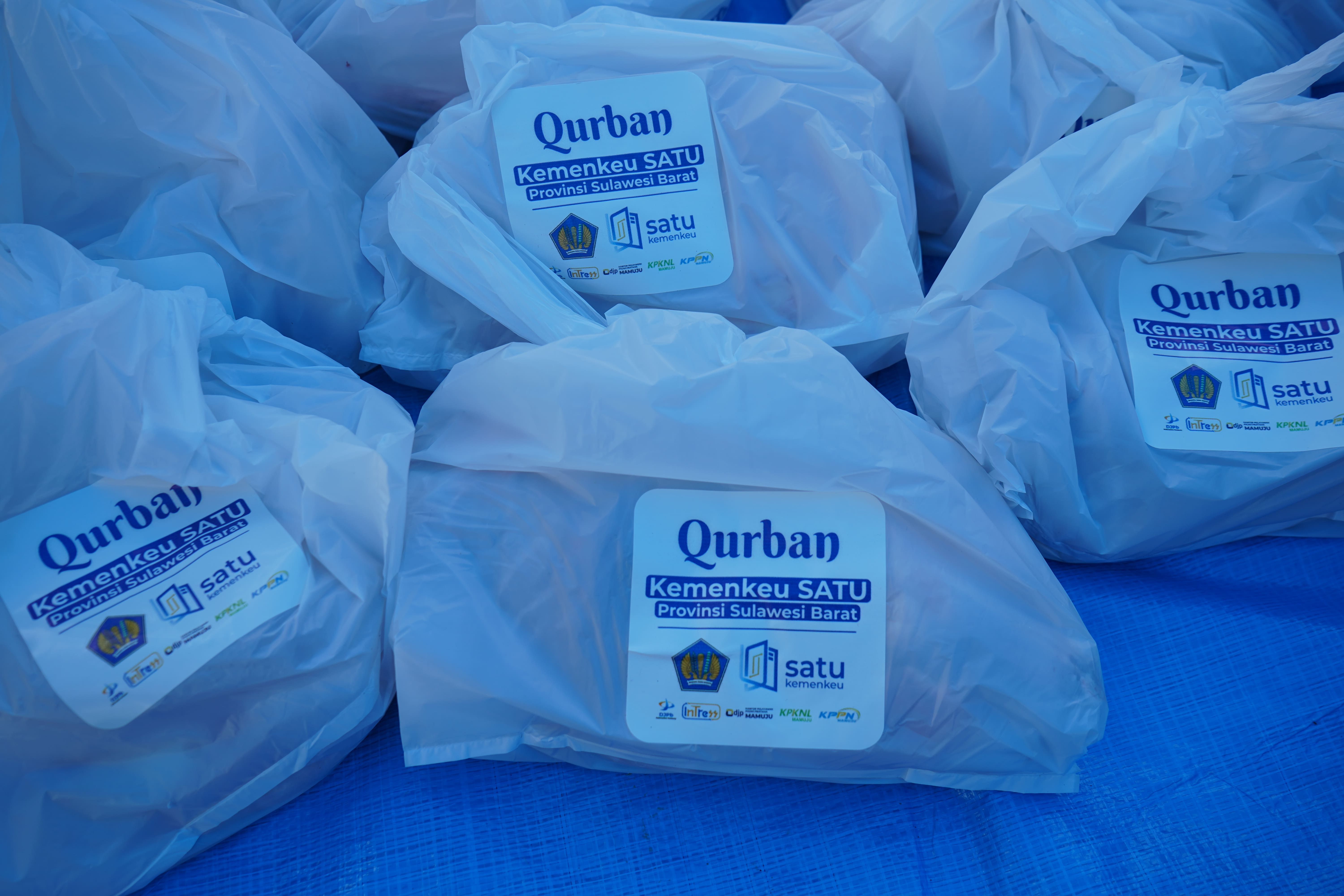 Dari hasil penyembelihan hewan kurban, Kemenkeu Satu Sulbar berhasil mendapatkan 377 paket yang masing-masing terdiri dari 1 Kg daging ditambah tulang dan bagian lainnya. Paket yang telah dikemas dalam plastik bertuliskan Kemenkeu Satu Sulawesi Barat tersebut selanjutnya didistribusikan kepada warga di sekitar Gedung Keuangan Negara Mamuju dan KPPN Mamuju, warga miskin dan rawan stunting di Pulau Karampuang dan Tapalang, serta Pegawai dan PPNPN Kemenkeu Satu Sulbar. Adanya penyelenggaraan kegiatan kurban ini diharapkan dapat mempererat hubungan/silaturahmi antara Kemenkeu Satu Sulawesi Barat dengan masyarakat sekitar, serta mampu memupuk semangat kebersamaan dan kepedulian sosial kepada sesama. Di luar pelaksanaan tugas sehari-hari, segenap jajaran Kementerian Keuangan berkomitmen untuk terus menjalankan kegiatan sosial kemasyarakatan yang dapat bermanfaat bagi masyarakat. (adt)
