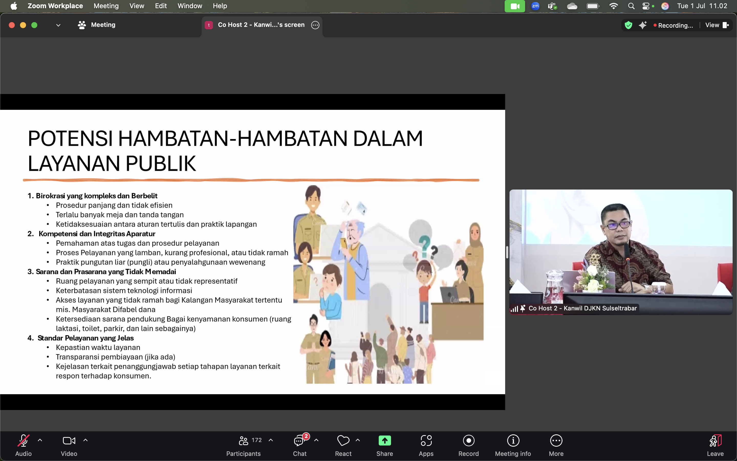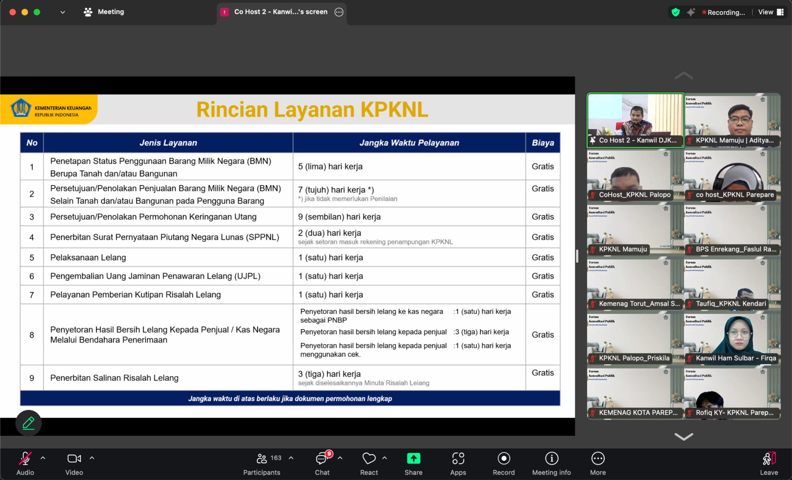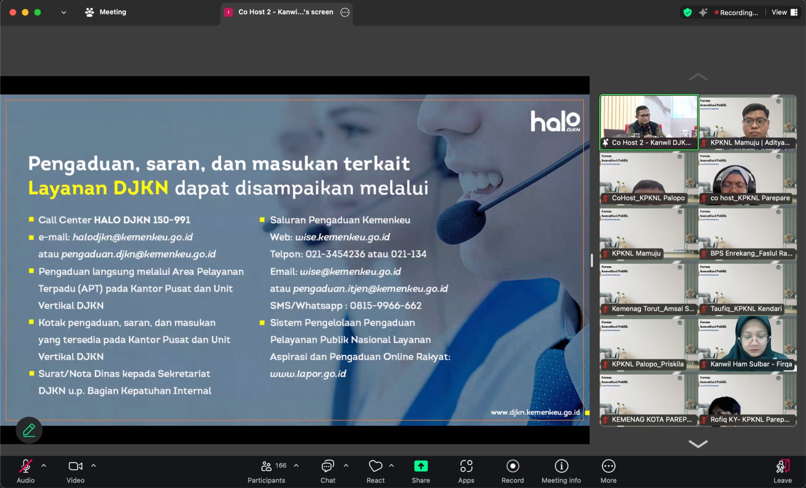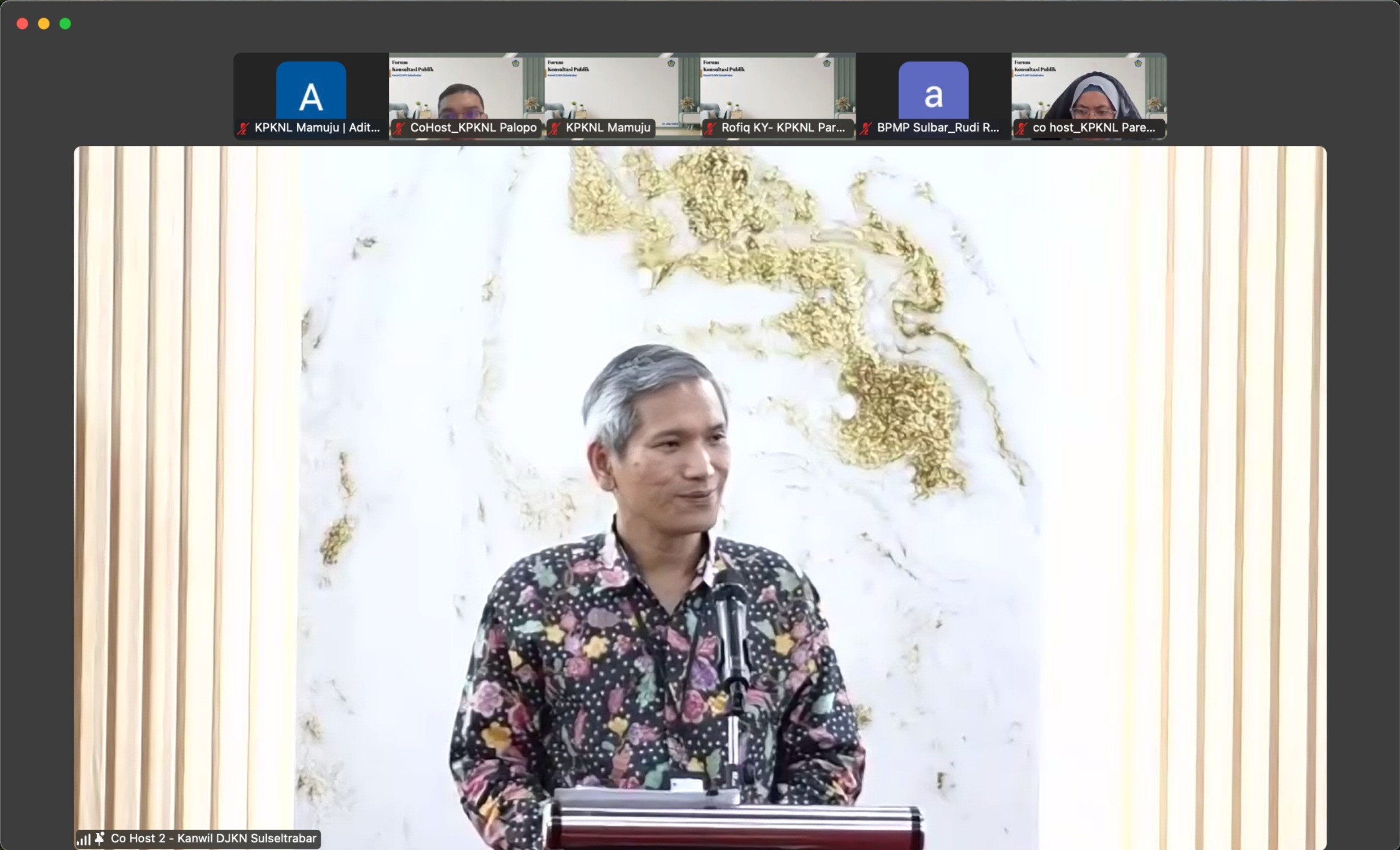 Mamuju – KPKNL Mamuju bersama dengan Kanwil DJKN Sulawesi Selatan, Tenggara, dan Barat, serta KPKNL lainnya di lingkup Kanwil DJKN Sulseltrabar mengadakan Forum Konsultasi Publik Kolaboratif pada Selasa (1/7). Kegiatan yang dilaksanakan secara hybrid ini dihadiri oleh para pejabat/pegawai lingkup Kanwil DJKN Sulseltrabar selaku Penyelenggara Layanan, para Pengguna Layanan dari seluruh unit DJKN di lingkup Kanwil DJKN Sulseltrabar, para stakeholder lainnya seperti Ombudsman dan Kemenkeu Satu, akademisi dari Fisipol Universitas Hasanuddin, MAPPI Sulamapua, serta media massa seperti Ujung Pandang Express, Harian Fajar, dan TVRI Sulawesi Selatan.