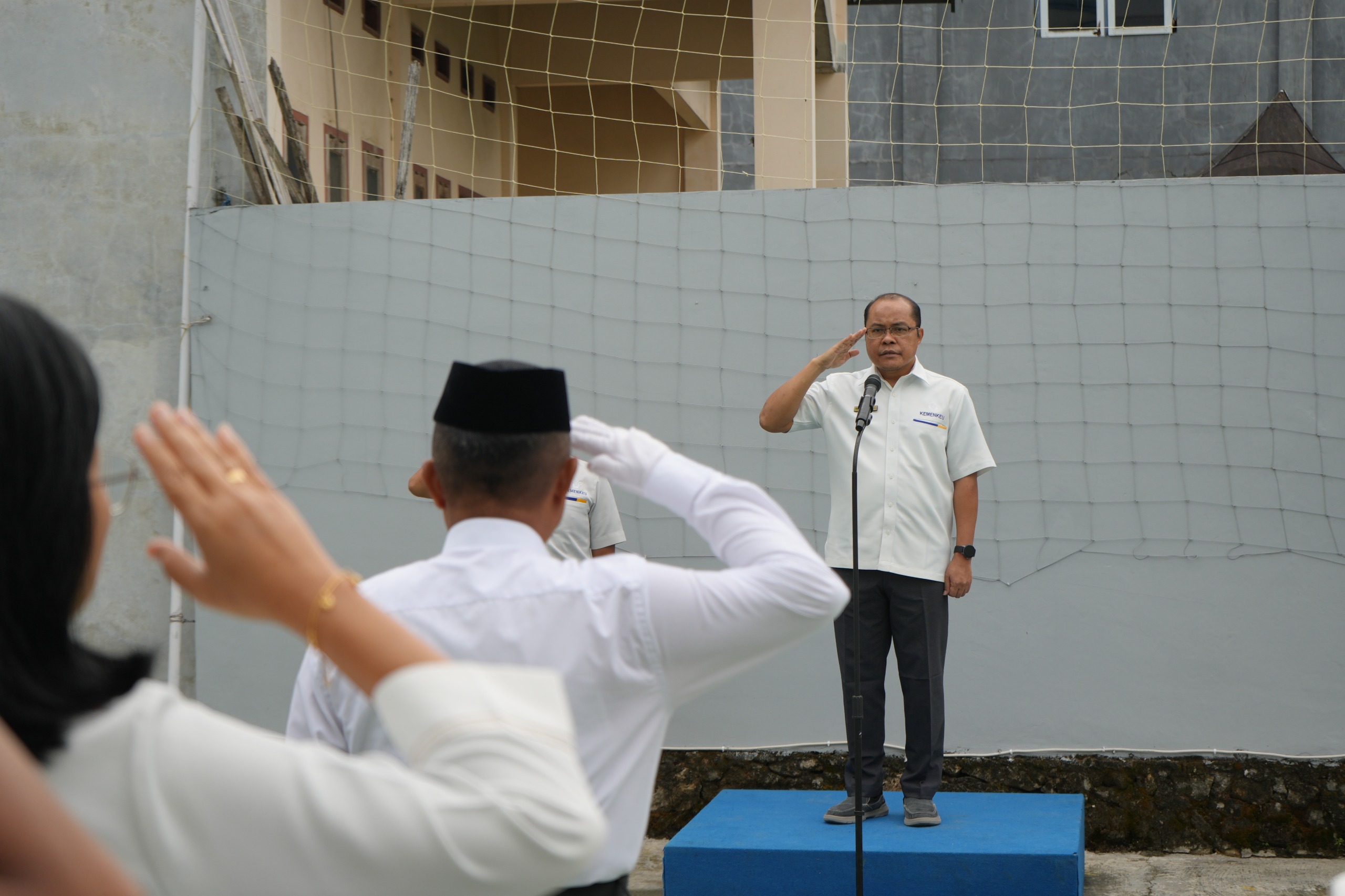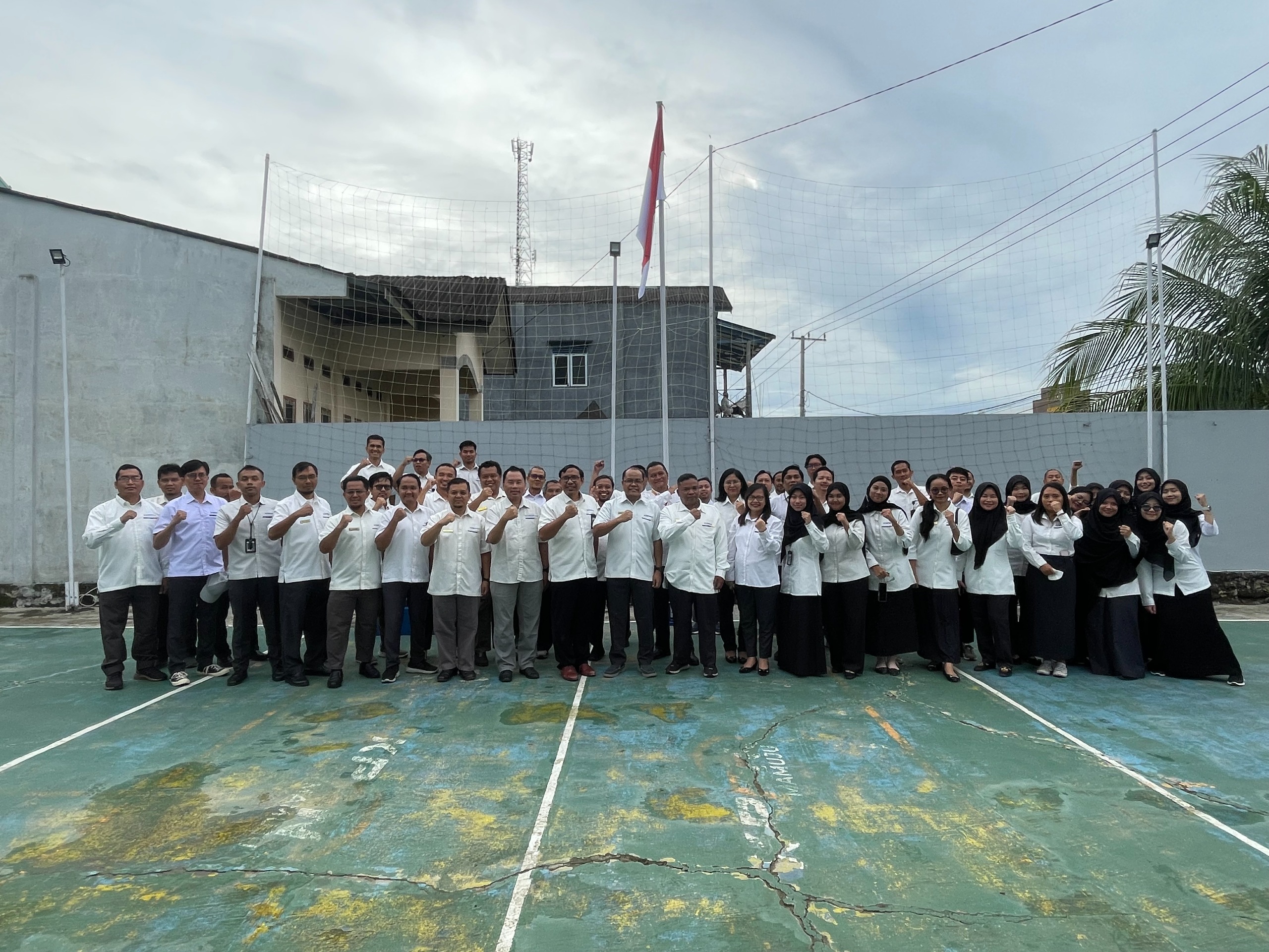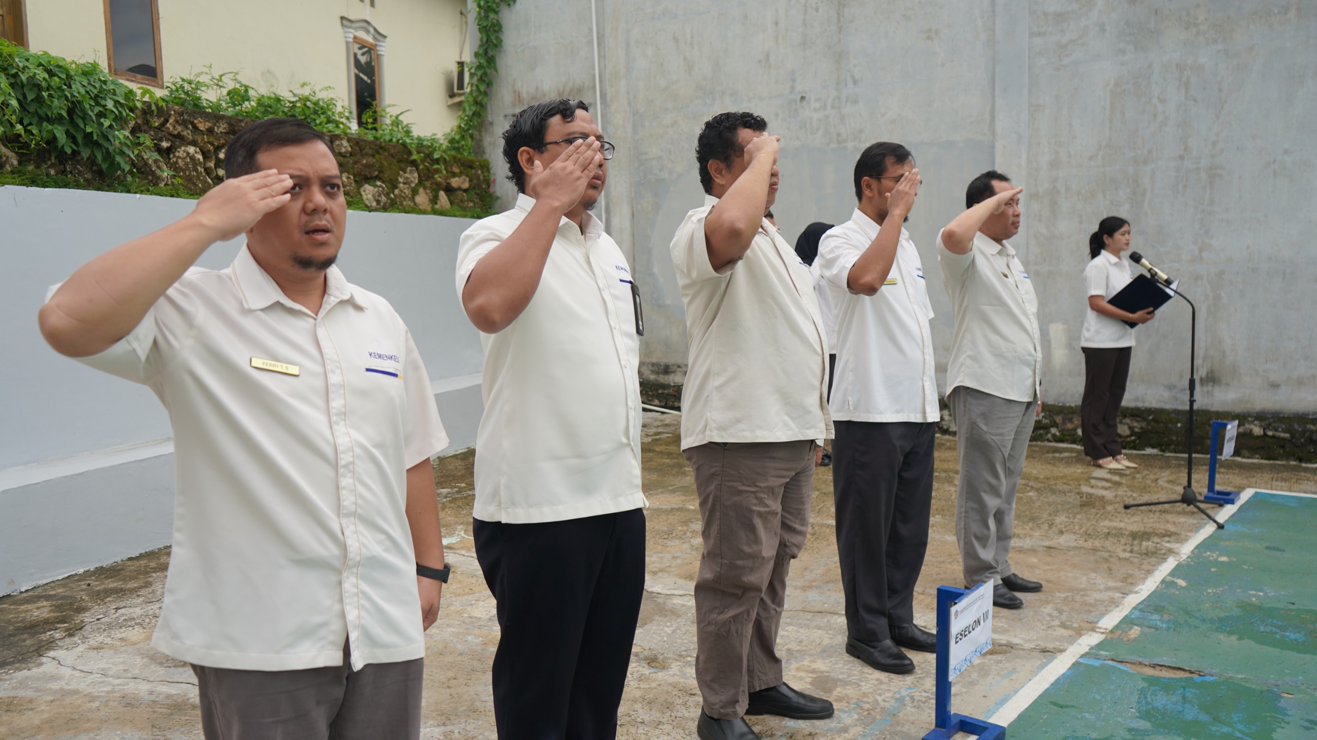 Mamuju – Meski kondisi gerimis pada Senin (2/6) pagi, KPKNL Mamuju bersama seluruh unit kerja di lingkup Kementerian Keuangan Sulawesi Barat tampak tetap bersemangat memadati Lapangan KPPN Mamuju untuk mengikuti Upacara Peringatan Hari Lahir Pancasila Tahun 2025. Mengenakan seragam putih Kemenkeu, para pegawai KPKNL Mamuju bersama para pegawai dari Kanwil DJPb Provinsi Sulawesi Barat, KPP Pratama Mamuju, KPPN Mamuju, dan GKN Mamuju mulai berdatangan di lokasi upacara sejak pukul 06.45 WITA.