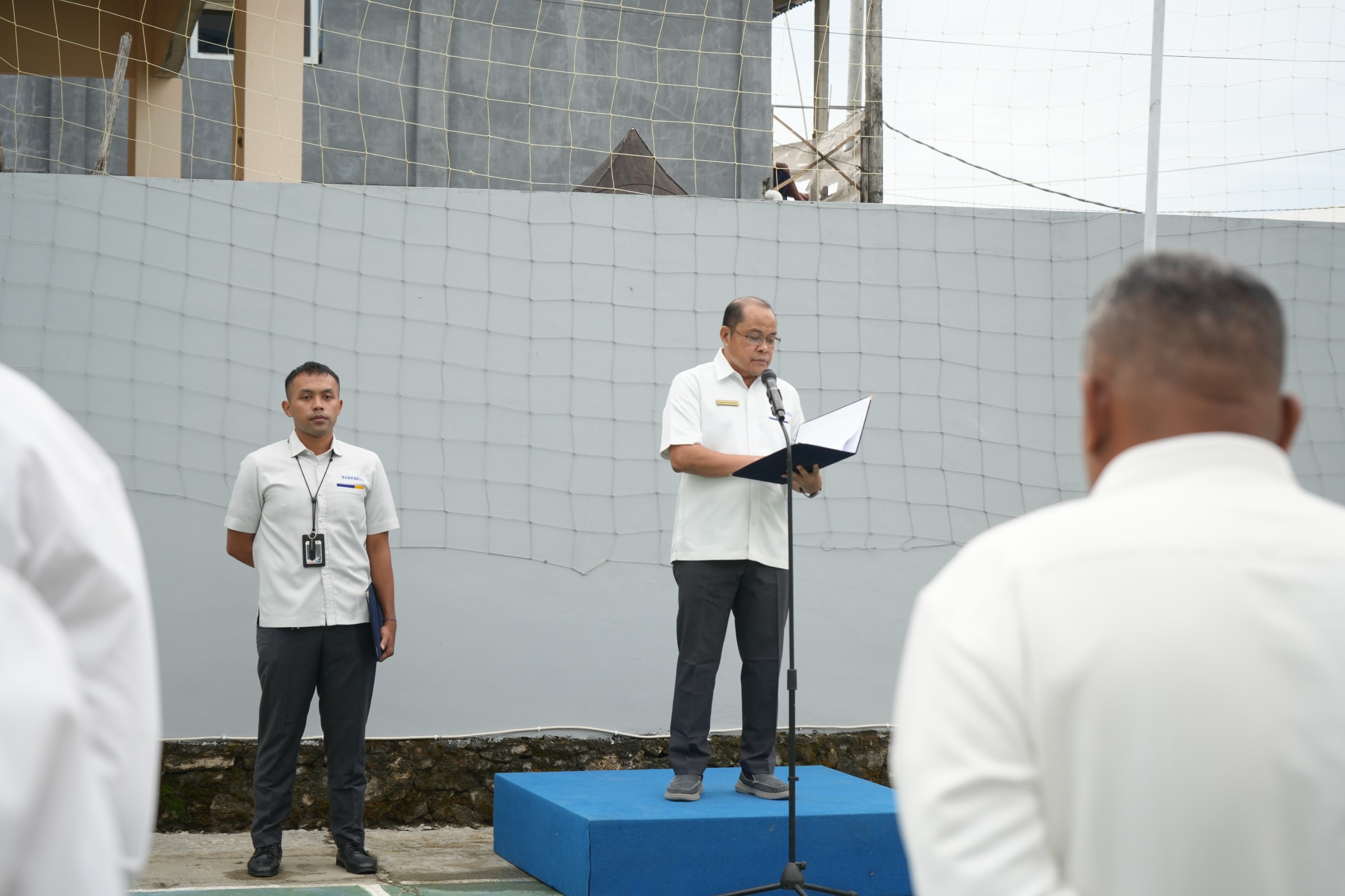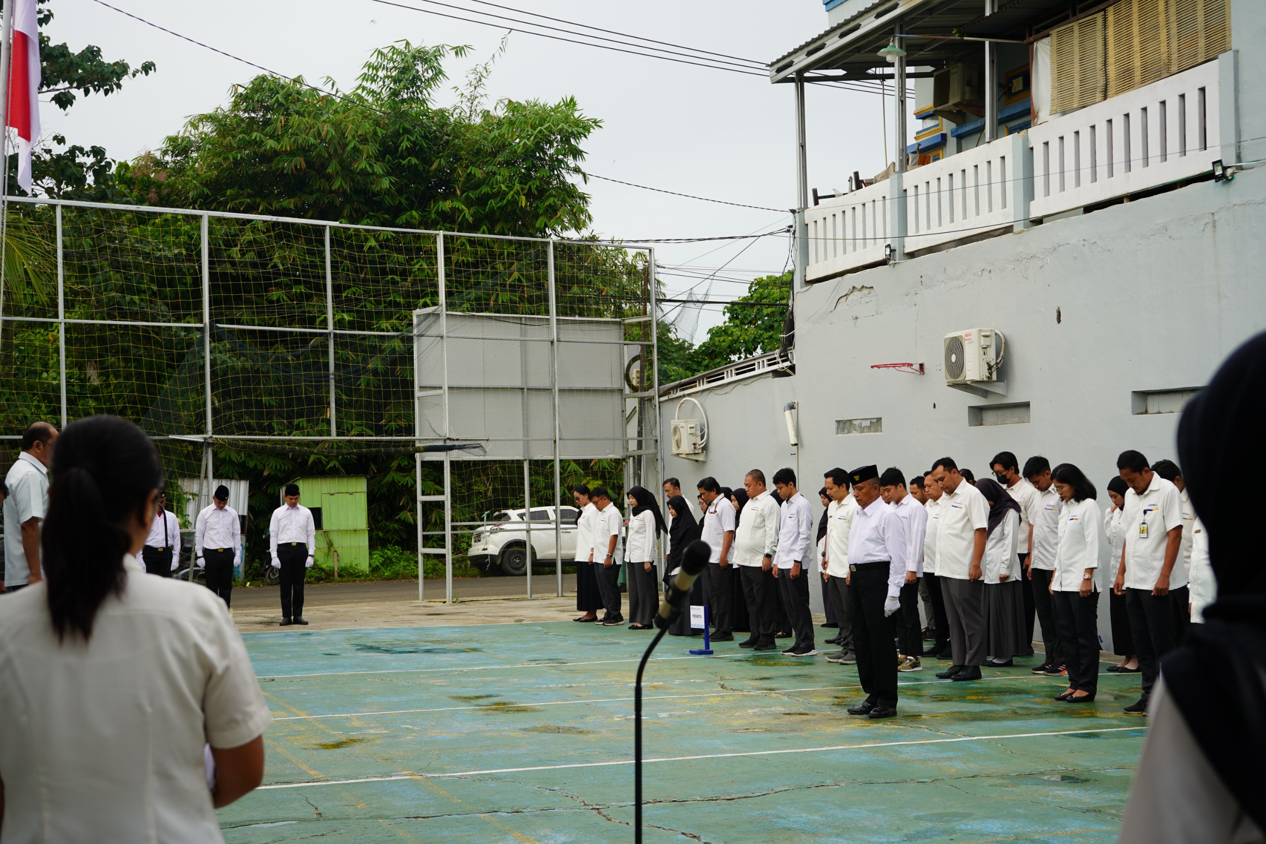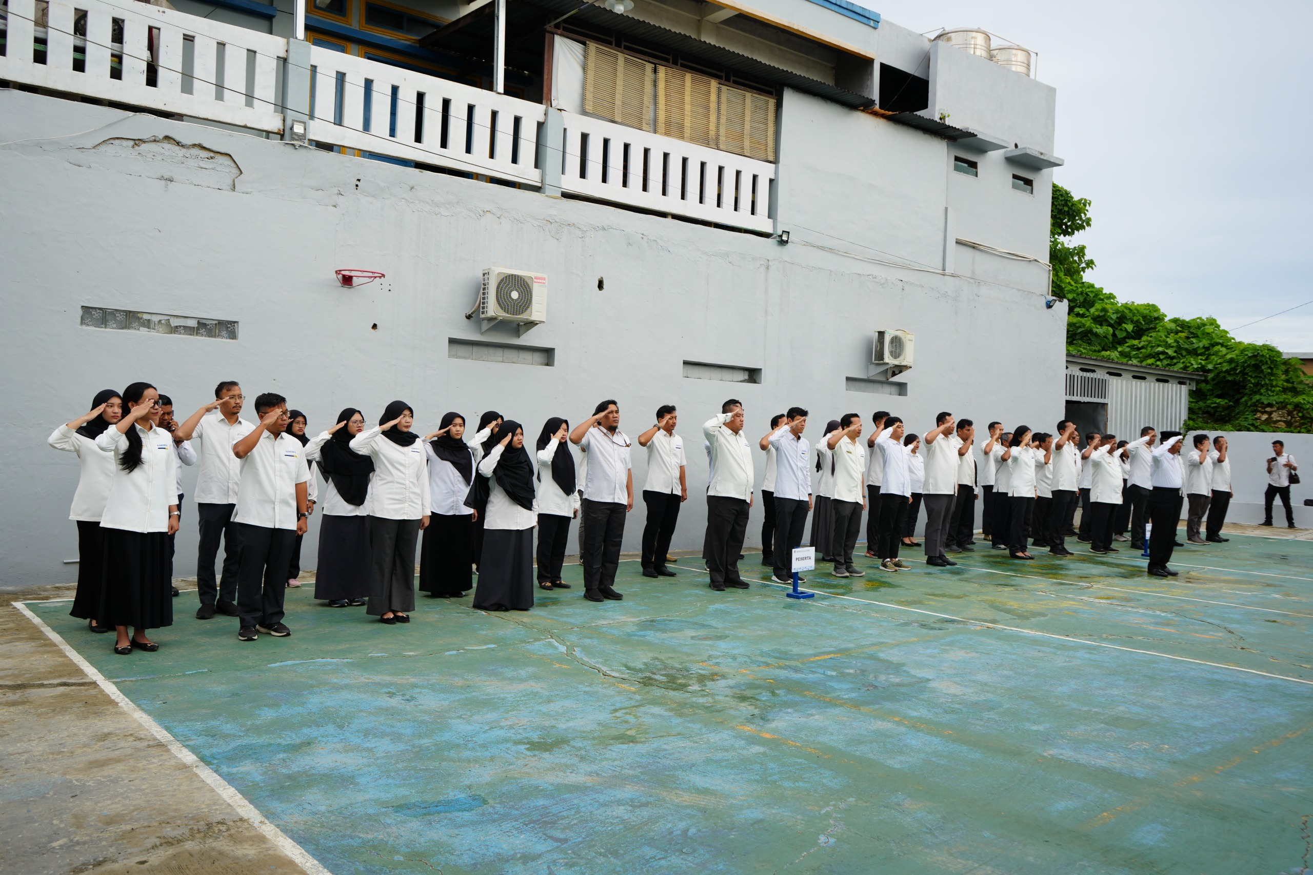 Mamuju – Meski kondisi gerimis pada Senin (2/6) pagi, KPKNL Mamuju bersama seluruh unit kerja di lingkup Kementerian Keuangan Sulawesi Barat tampak tetap bersemangat memadati Lapangan KPPN Mamuju untuk mengikuti Upacara Peringatan Hari Lahir Pancasila Tahun 2025. Mengenakan seragam putih Kemenkeu, para pegawai KPKNL Mamuju bersama para pegawai dari Kanwil DJPb Provinsi Sulawesi Barat, KPP Pratama Mamuju, KPPN Mamuju, dan GKN Mamuju mulai berdatangan di lokasi upacara sejak pukul 06.45 WITA.