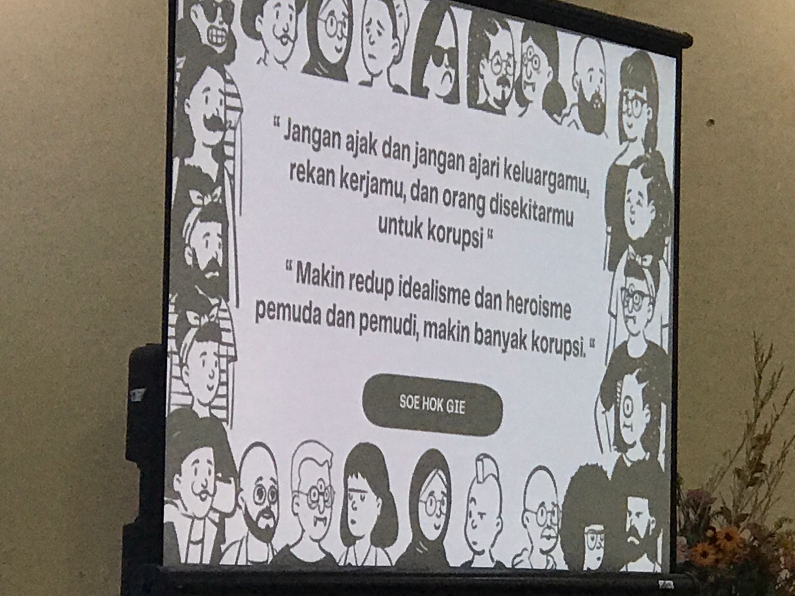 Danu Umbara, memaparkan materi yang diadaptasi dari ACLC KPK antara lain definisi yuridis korupsi, 7 delik korupsi, dan teori penyebab korupsi didasarkan pada pendapat Jack Bologne yang lebih dikenal dengan GONE Theory.