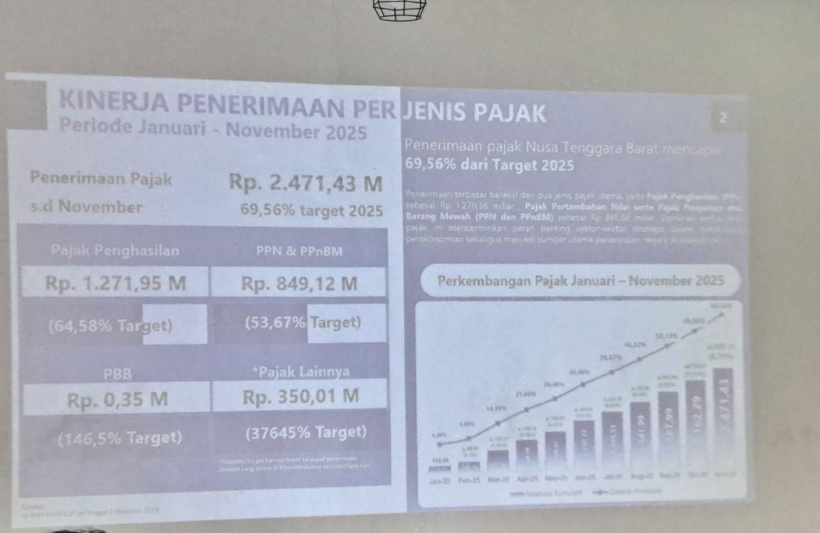 Mataram - Kepala Kantor Pelayanan Kekayaan Negara dan Lelang (KPKNL) Mataram Doni Prabudi menghadiri kegiatan Media Gathering yang diadakan oleh Kantor Wilayah Direktorat Jenderal Pajak Nusa Tenggara tahun 2025 yang dilaksanakan pada Selasa (2/12) di Kantor Wilayah Direktorat Jenderal Pajak Nusa Tenggara. Kegiatan ini dibuka oleh Kepala Kantor Wilayah Direktorat Jenderal Pajak Nusa Tenggara Simon Jaya dan dihadiri oleh Kepala Bagian Umum Kantor Wilayah Direktorat Jenderal Perbendaharaan Provinsi Nusa Tenggara Barat, Kepala Kantor Pelayanan Perbendaharaan Negara Mataram, Kepala Kantor Pengawasan dan Pelayanan Bea dan Cukai Tipe Madya Pabean C Mataram, Kepala Kantor Pelayanan Pajak Pratama Mataram Barat, Kepala Kantor Pelayanan Pajak Pratama Mataram Timur, para Kepala Bidang di lingkungan Kantor Wilayah Direktorat Jenderal Pajak Nusa Tenggara serta perwakilan 25 (dua puluh lima) media massa, baik media cetak, elektronik, maupun daring di Nusa Tenggara Barat. Kegiatan ini dilakukan dalam rangka menjalin komunikasi, menyampaikan informasi perpajakan terkini serta informasi kegiatan Perwakilan Kemenkeu Satu di Nusa Tenggara Barat. Agenda Media Gathering ini berupa update kinerja penerimaan pajak, aktivasi akun dan kode otorisasi pada coretax DJP, penonaktifan (sementara) akses pembuatan faktur pajak terhadap pengusaha kena pajak yang tidak melaksanakan kewajiban perpajakan, perluasan insentif pajak penghasilan pasal 21 ditanggung pemerintah serta penyampaian kegiatan pada Perwakilan Kemenkeu Satu di Nusa Tenggara Barat. (FG)