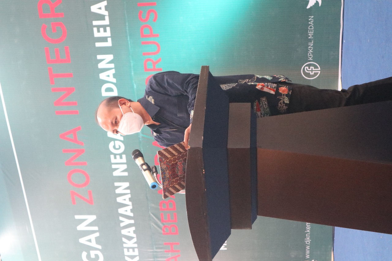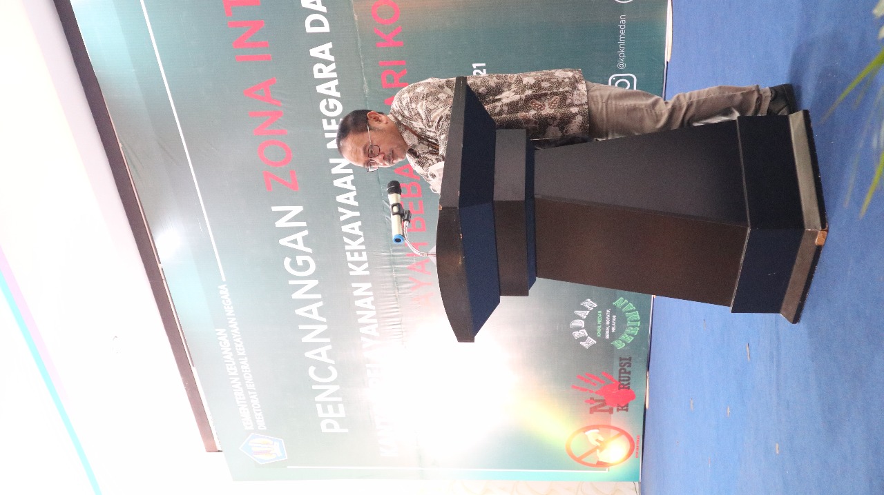 Pada acara pencanangan ZI, Kepala Kanwil DJKN Sumatera Utara, Tedy Syandriadi berkesempatan untuk menyampaikan sambutannya. Tedy menyampaikan kita sedang memasuki masa disrupsi dimana terjadi inovasi dan perubahan besar-besaran yang secara fundamental mengubah semua sistem, tatanan, dan landscape yang ada, ke cara-cara baru. Hal ini terutama disebabkan pandemi covid 19, perkembangan teknologi, serta tuntutan masyarakat yang semakin tinggi atas kualitas pelayanan pengelolaan negara piutang negara dan lelang. Sehingga kita dituntut juga untuk terus melakukan inovasi dan perbaikan proses bisnis demi meningkatkan pelayanan, dengan tetap menjunjung tinggi nilai-nilai Kementerian Keuangan. Pencanangan pembangunan ZI pada KPKNL Medan akan menjadi tantangan besar bagi KPKNL Medan mengingat selama ini KPKNL Medan merupakan KPKNL yang memiliki target paling besar dan KPKNL dengan potensi terbesar juga di lingkungan Kanwil DJKN Sumatera Utara. Dengan beban kerja yang demikian tinggi, harapannya pencanangan ZI WBK ini semakin menjadi penyemangat bagi seluruh jajaran KPKNL Medan untuk tetap memberikan pelayanan terbaik dan yang lebih baik lagi.