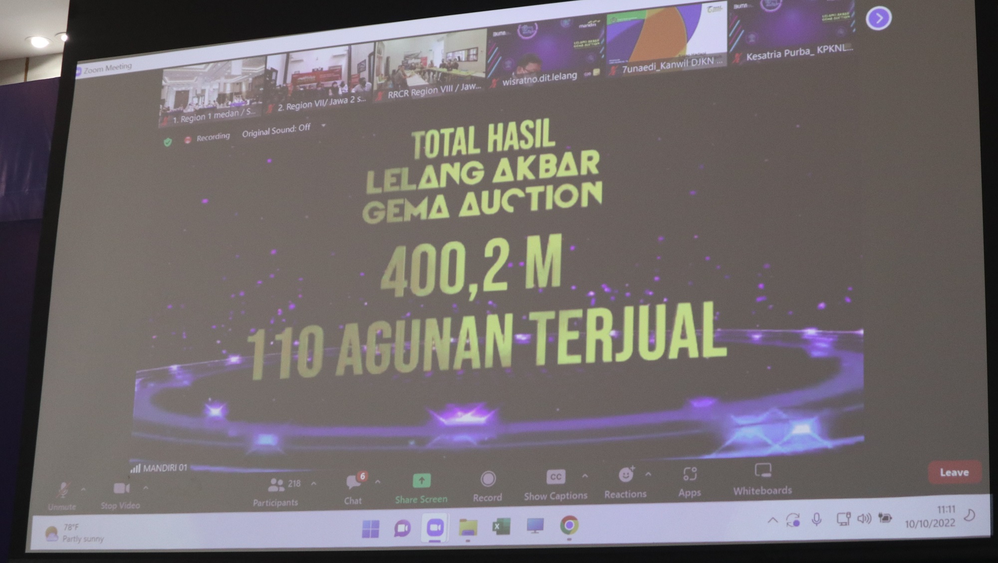 menghasilkan senilai 400,2 Milyar dengan 110 agunan yang terjual. “Dalam lelang
