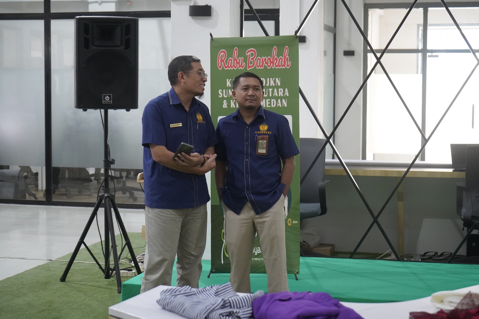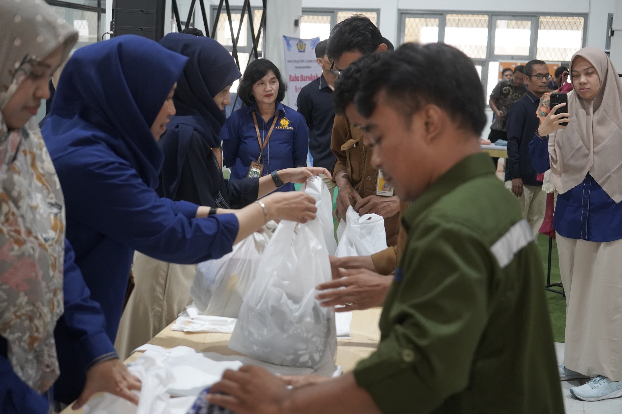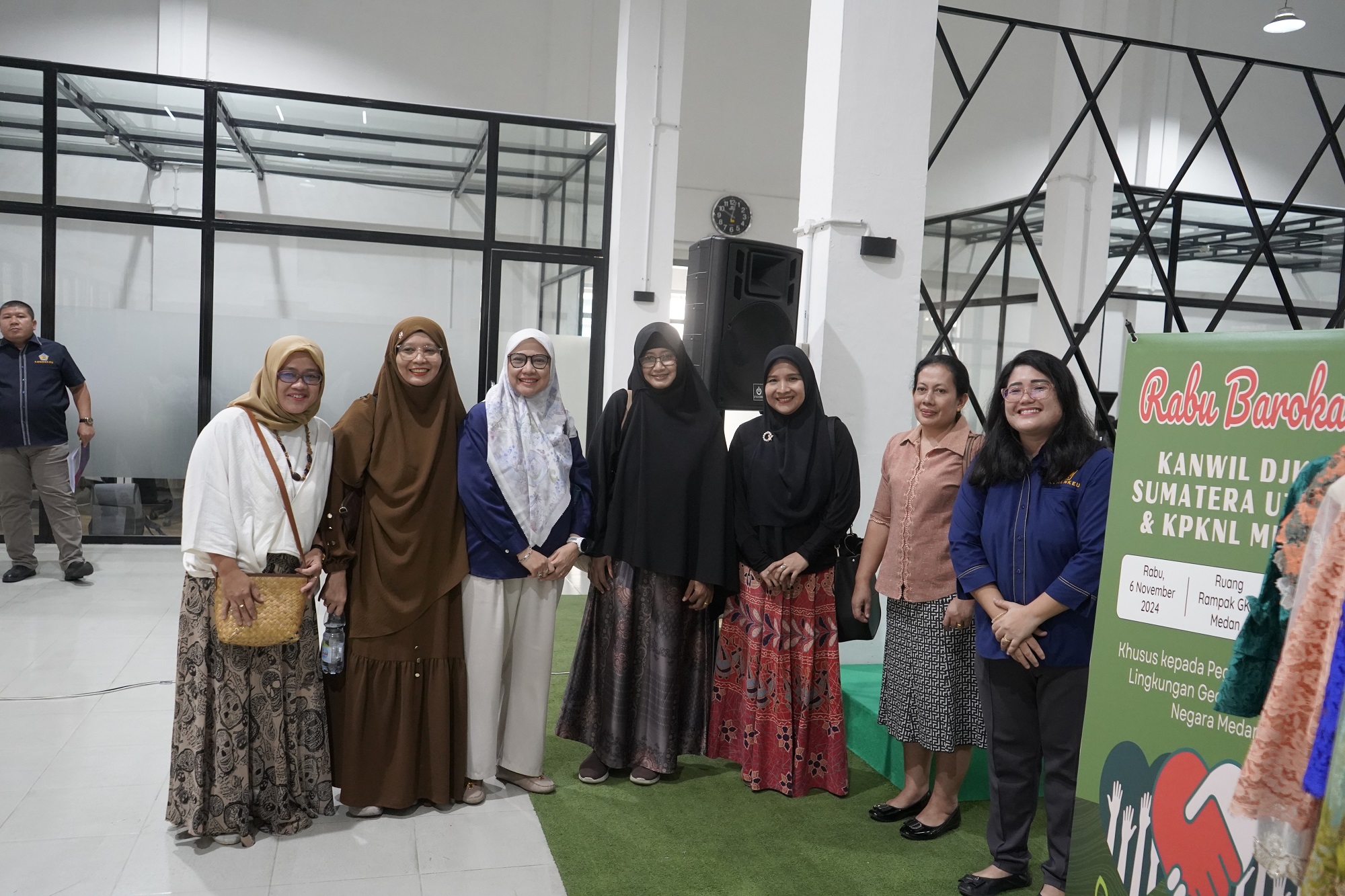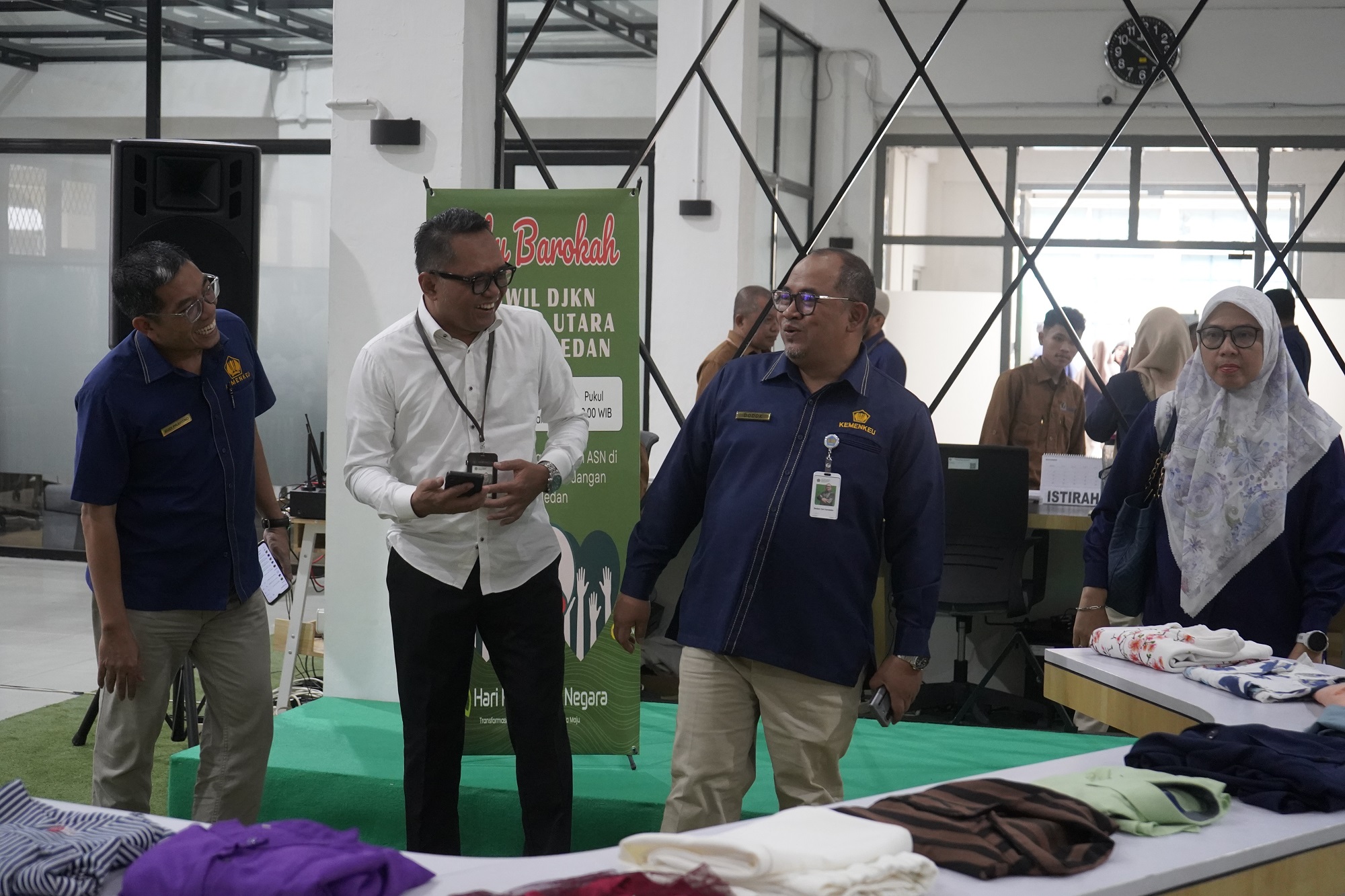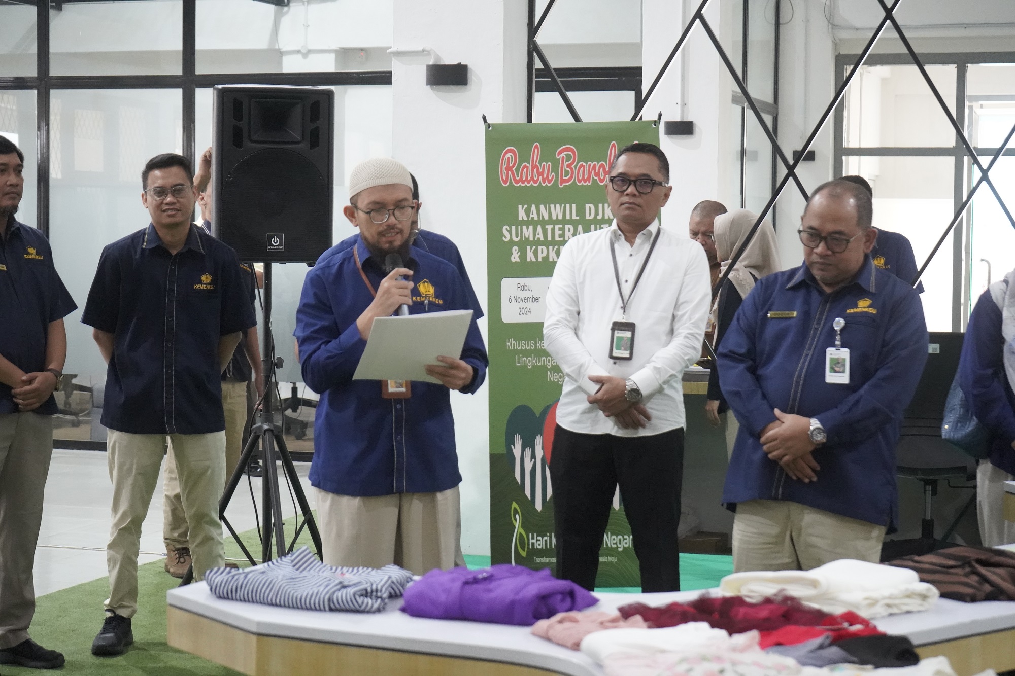 Medan – Kantor Wilayah Direktorat Jenderal Kekayaan Negara (Kanwil DJKN) Sumatera Utara berkolaborasi dengan Kantor Pelayanan Kekayaan Negara dan Lelang (KPKNL) Medan) selenggarakan kegiatan bakti sosial bertajuk Rabu Barokah, pada Rabu (06/11), bertempat di Ruang Rampak Gedung Keuangan Negara, Medan. Dengan semangat “Transformasi Pelayanan Menuju Indonesia Maju”, tim yang tergabung dalam kepanitiaan sukses mengumpulkan barang-barang pribadi milik para pegawai/pejabat di lingkungan Gedung Keuangan Negara, berikut sembako (sembilan bahan pokok).