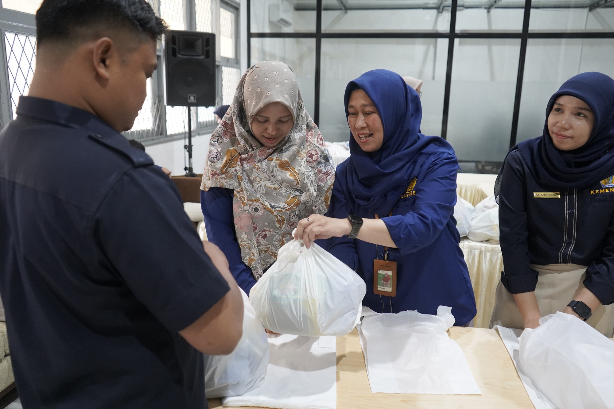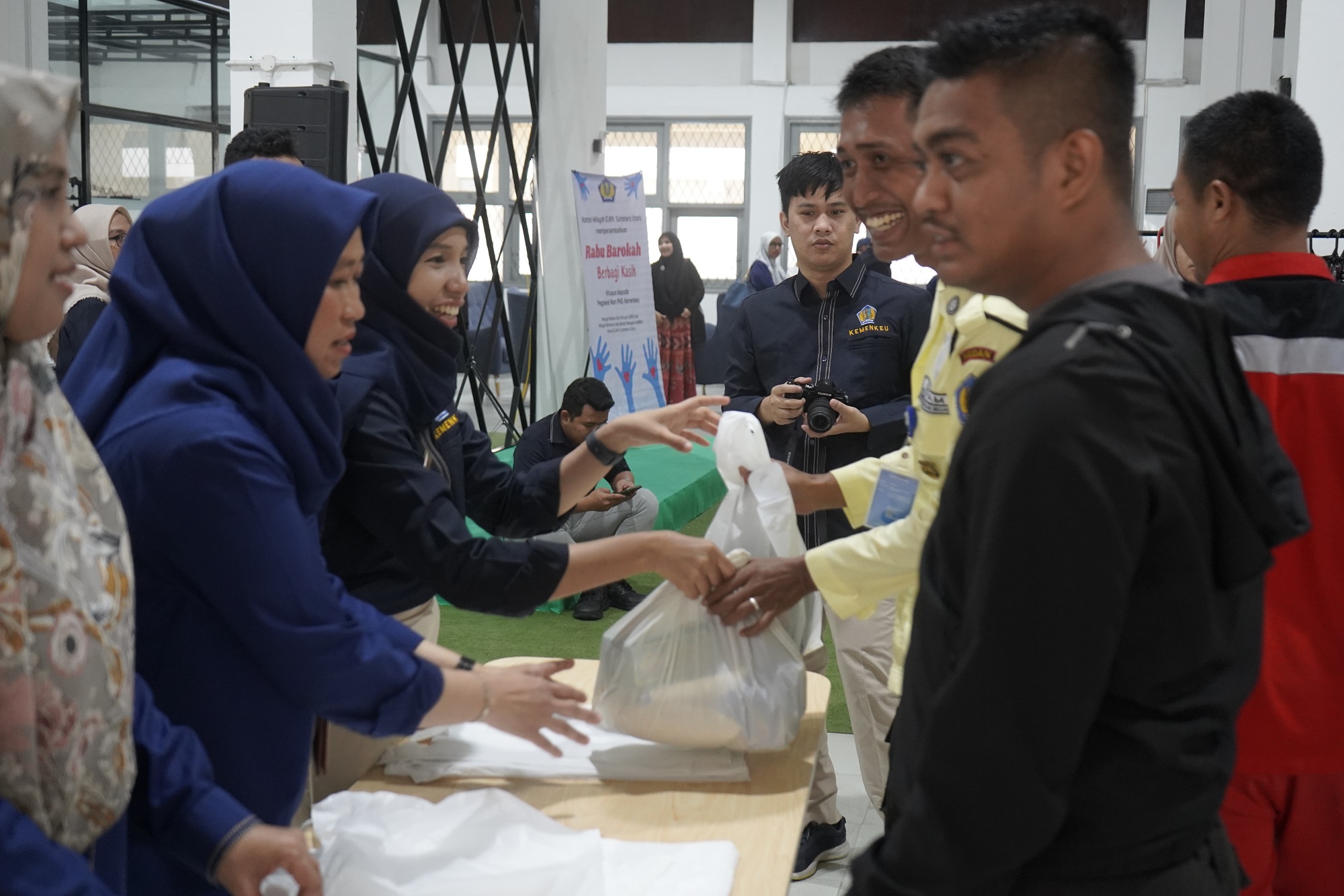 Seluruh barang tersebut dikumpulkan untuk dibagikan kepada para Pegawai Pemerintah Non Pegawai Negeri (PPNPN) di lingkungan Gedung Keuangan Negara di Medan. Adapun lingkup tugas para PPNPN tersebut meliputi petugas keamanan, petugas kebersihan dan pertamanan, petugas pemeliharaan gedung, dan sebagainya yang khusus bekerja pada Unit Kerja Kementerian Keuangan di GKN Medan. Dalam kegiatan sosial itu, Dodok Dwi Handoko selaku Kepala Kanwil DJKN Sumatera Utara bersama perwakilan jajaran pejabat eselon III, eselon IV, dan Pejabat Fungsional pada Kanwil DJKN Sumatera Utara dan KPKN Medan.