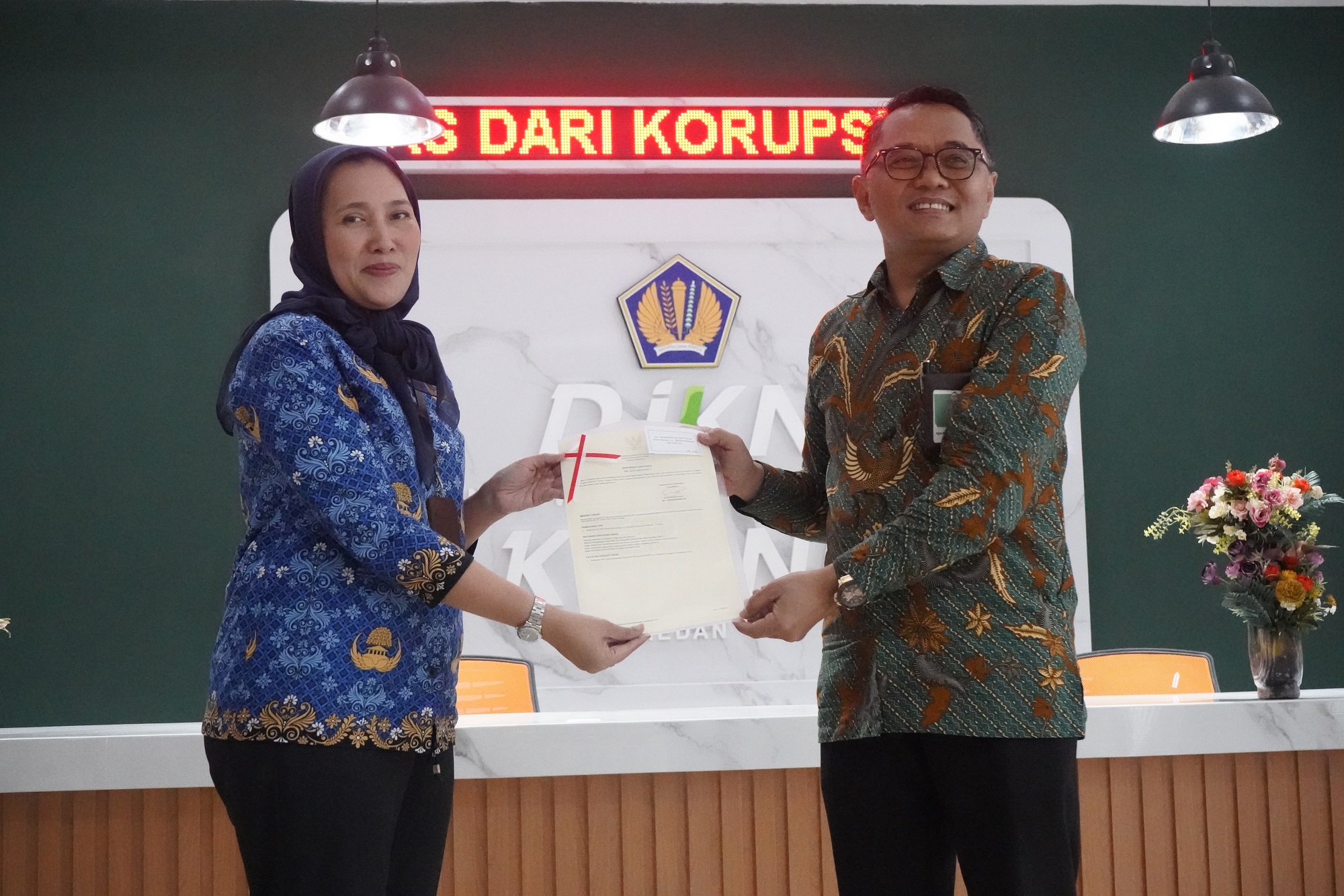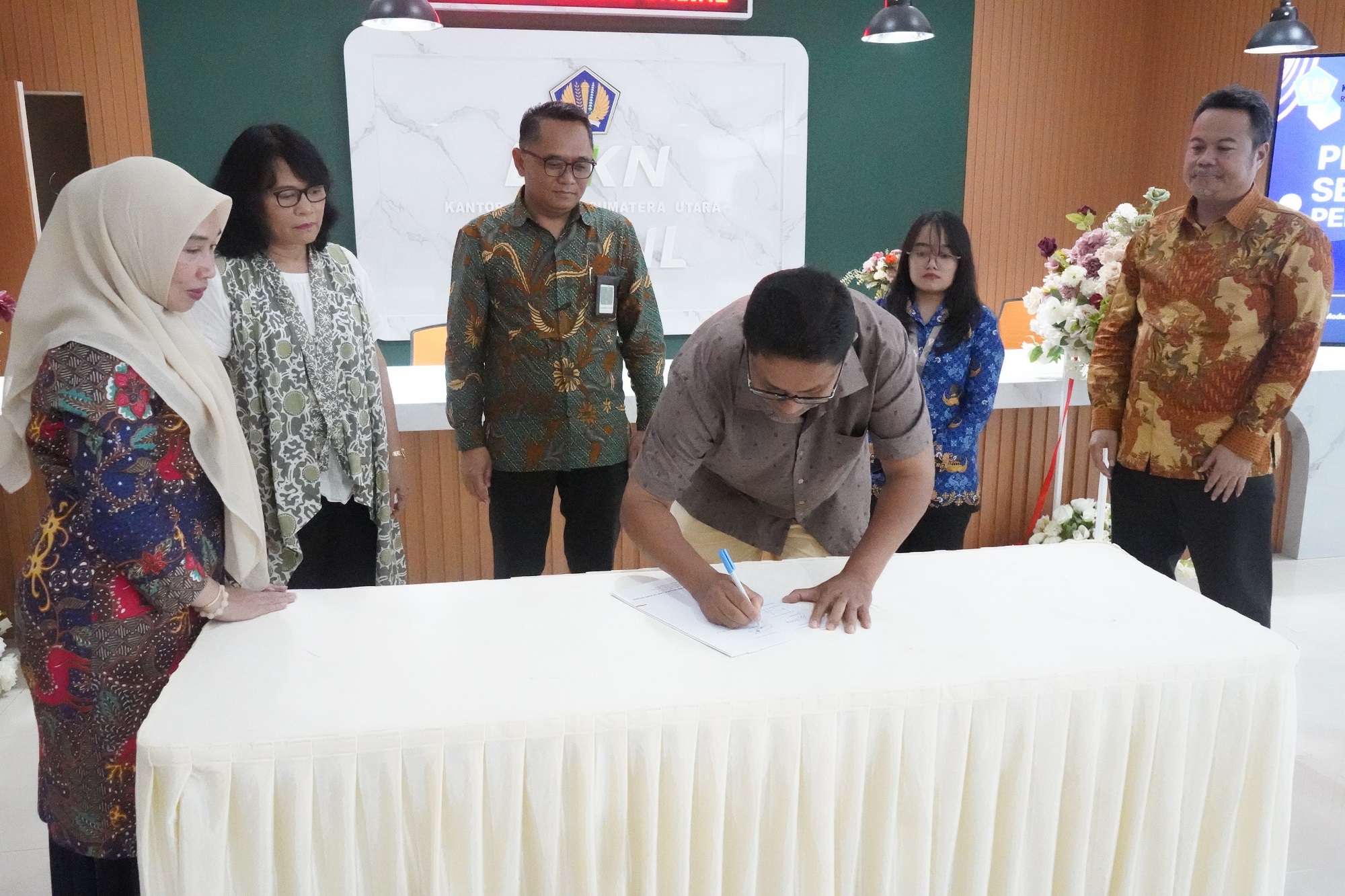 penandatanganan Berita Acara Penyusunan Standar Pelayanan KPKNL Medan oleh Agus