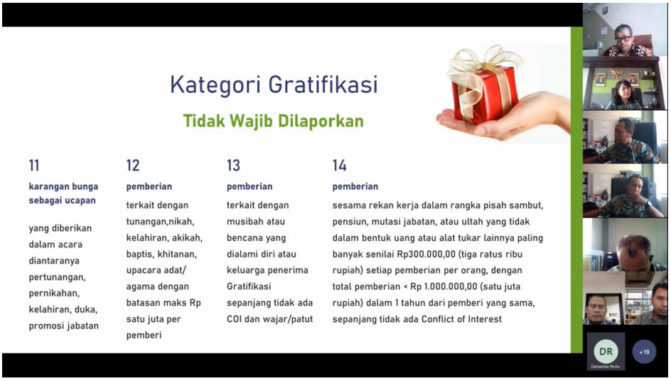 Jumat (14/04) melalui media virtual MS Teams, KPKNL Metro melaksanakan Internalisasi terkait pengendalian gratifikasi di lingkungan Kementerian Keuangan dan Pengendalian