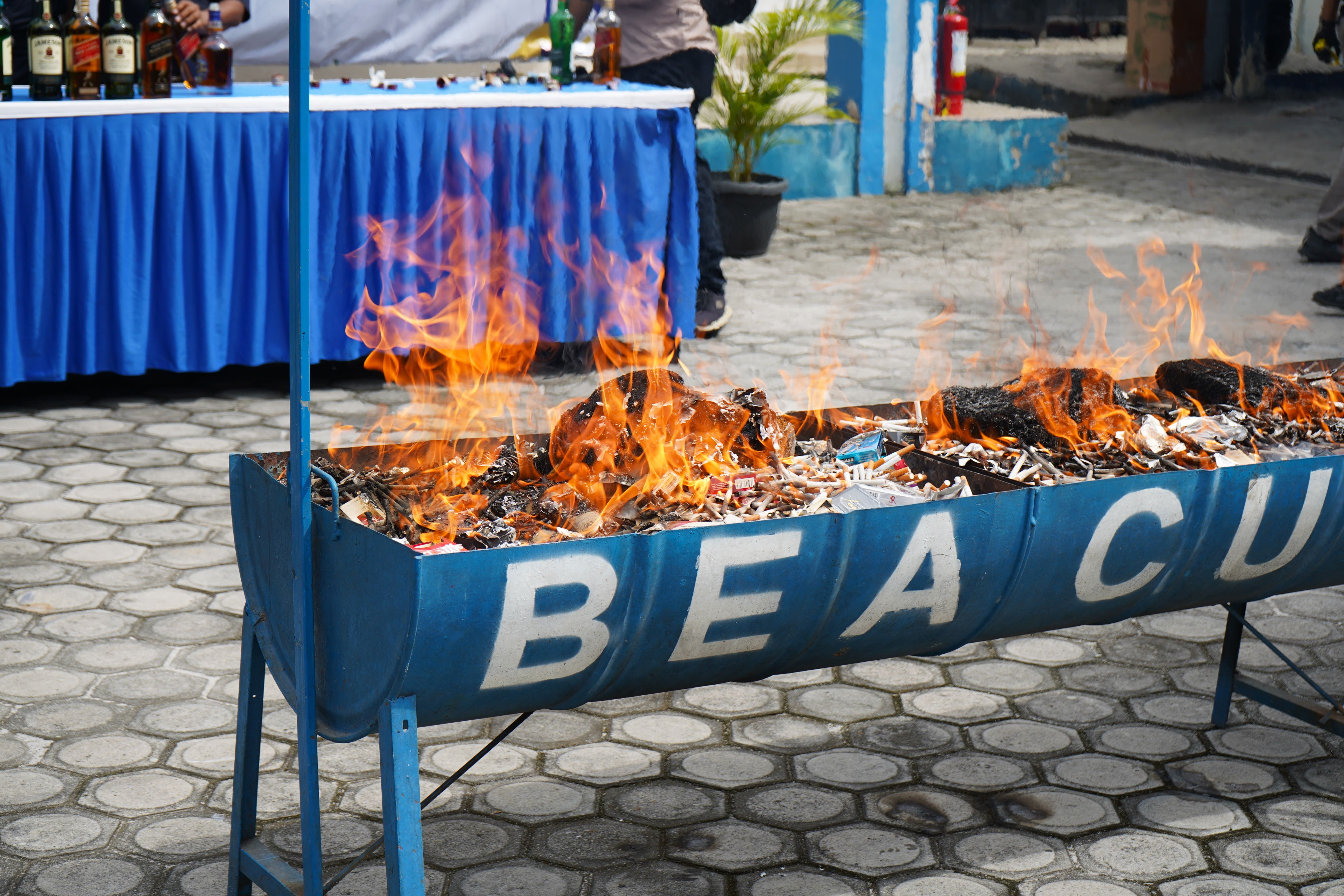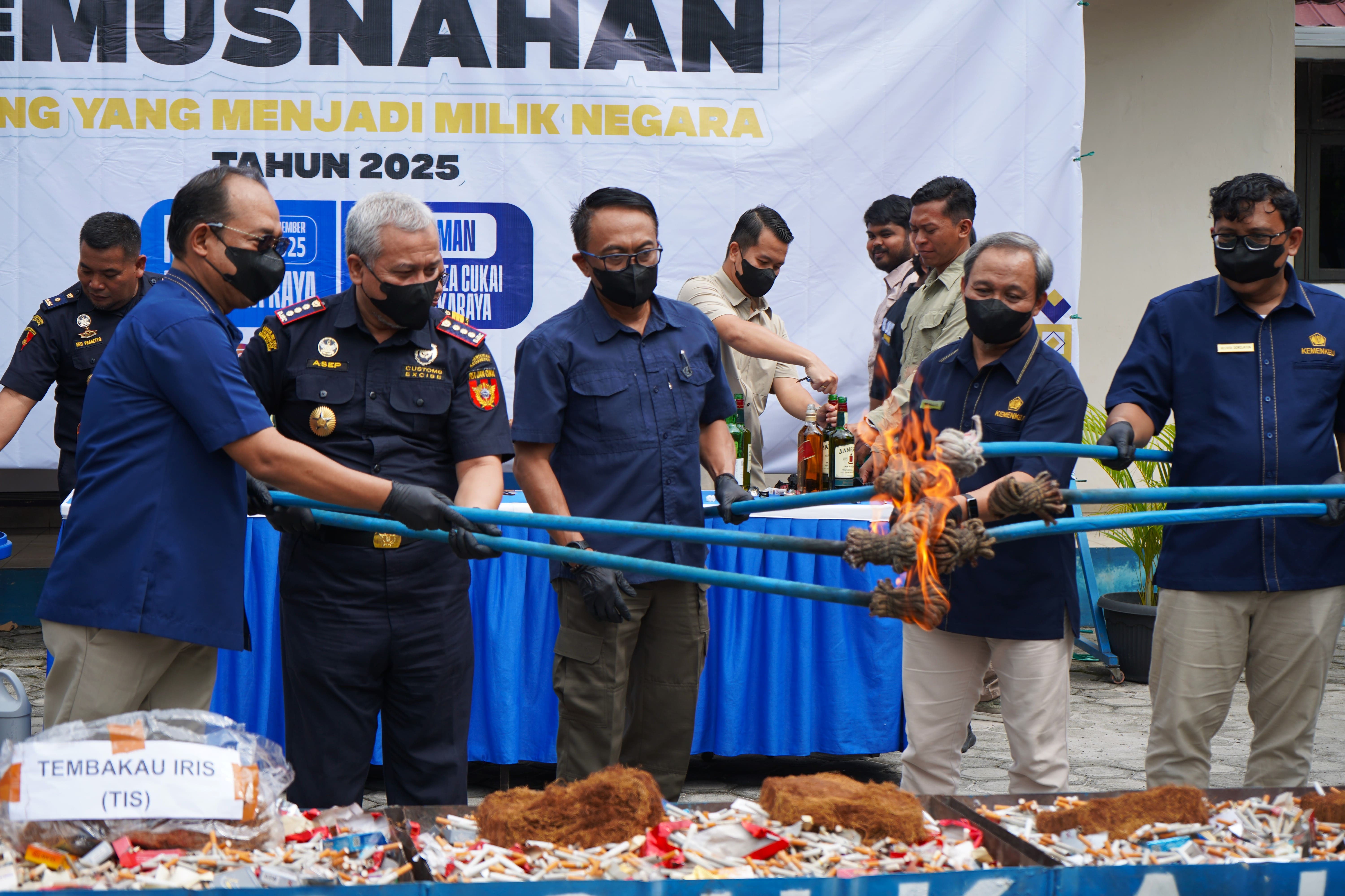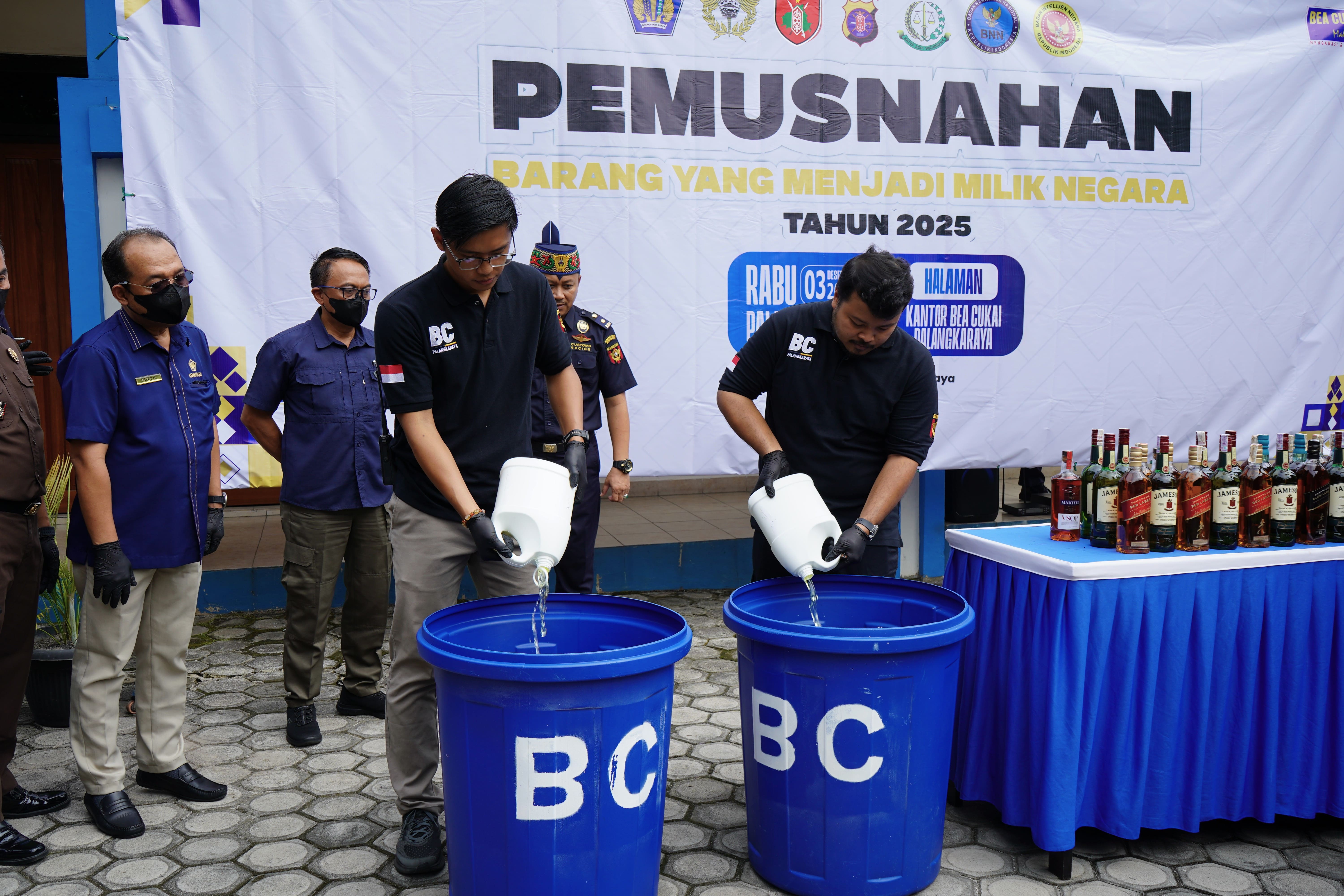 Kolaborasi KPPBC dan KPKNL Palangkaraya, Musnahkan Rokok dan Alkohol Ilegal